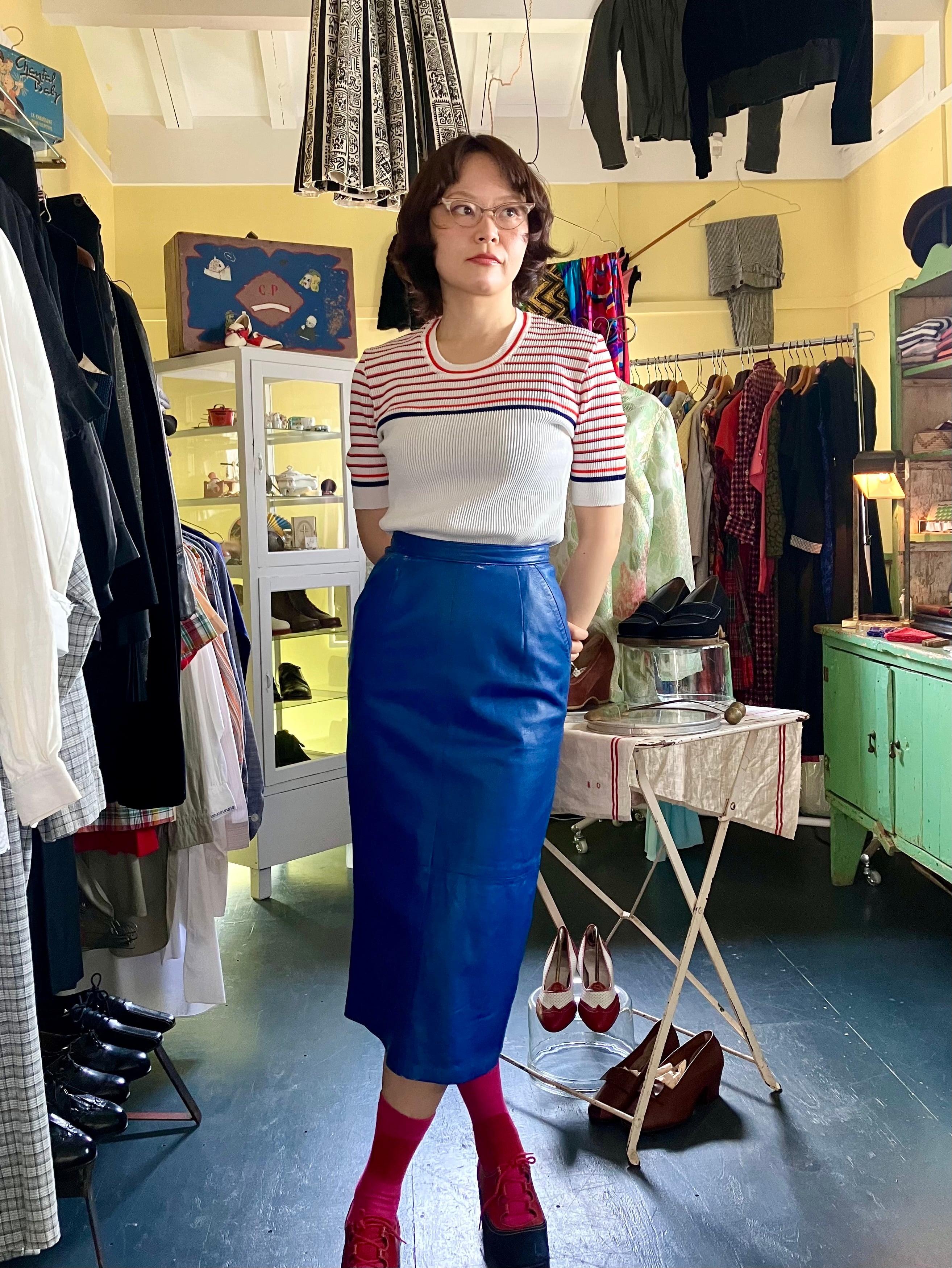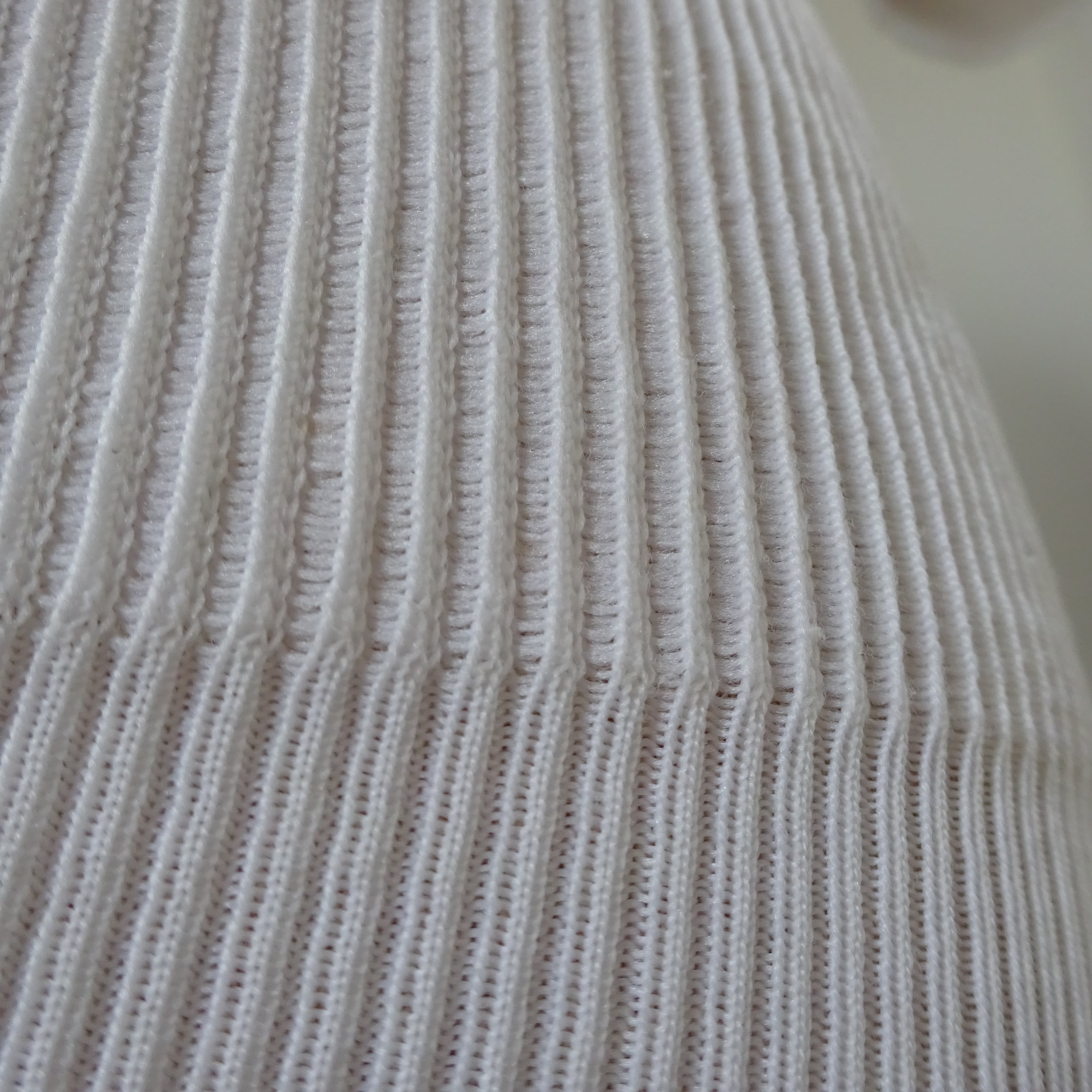 日本では湿度があり毛糸だと真夏に着れない難点がありますが、こちらは涼しい架線でとても立体的なリブ構造になっているのでベタッとならずに着やすい一枚です。