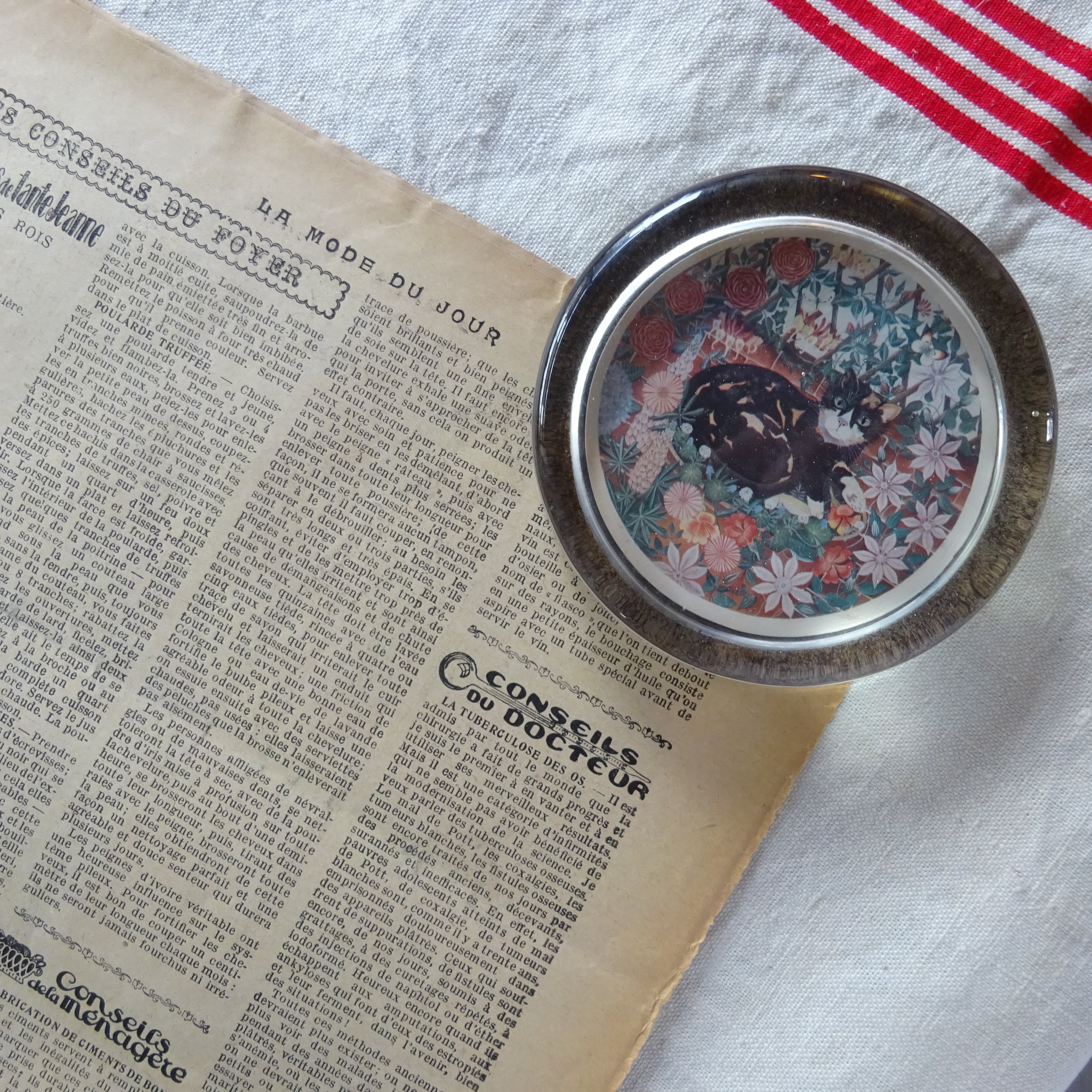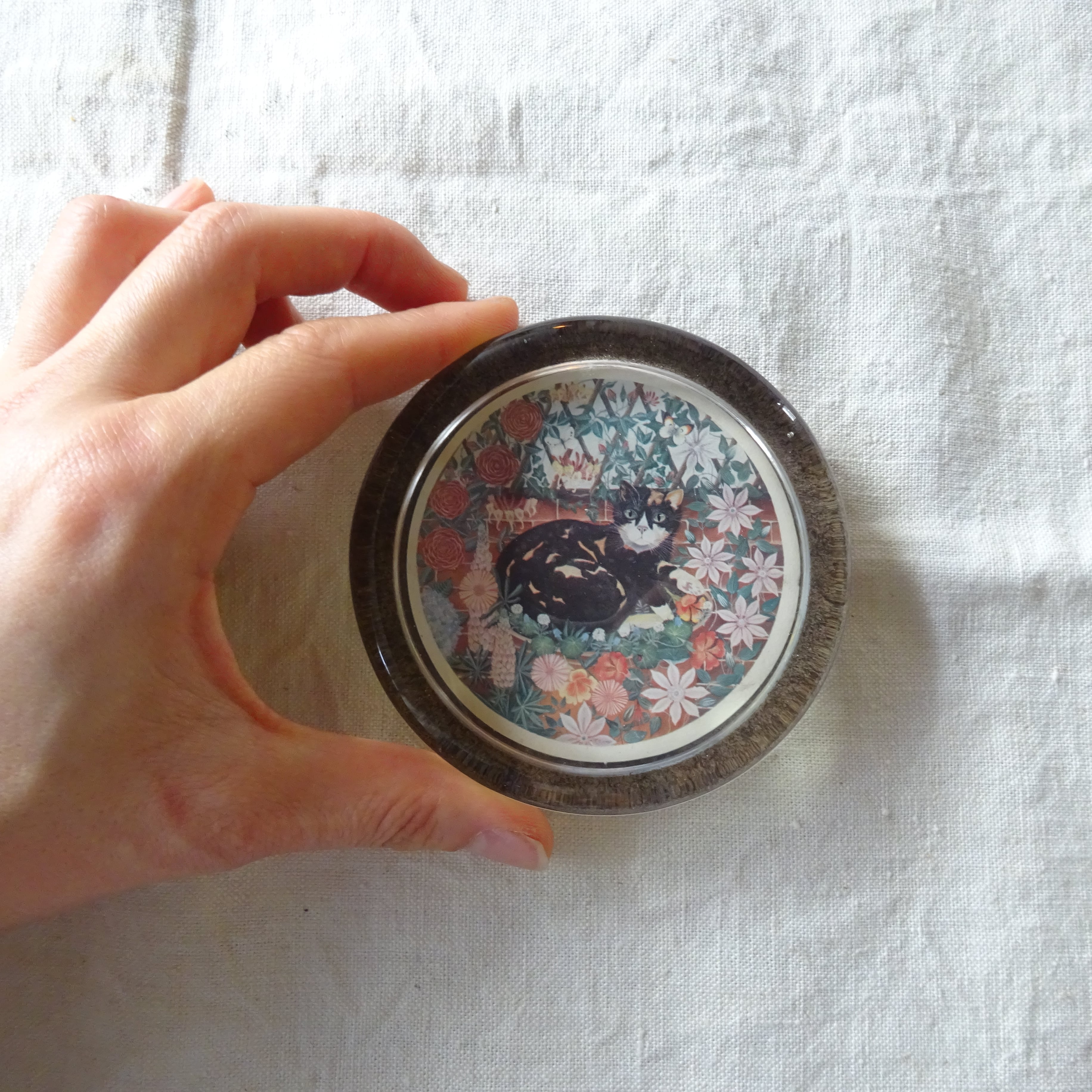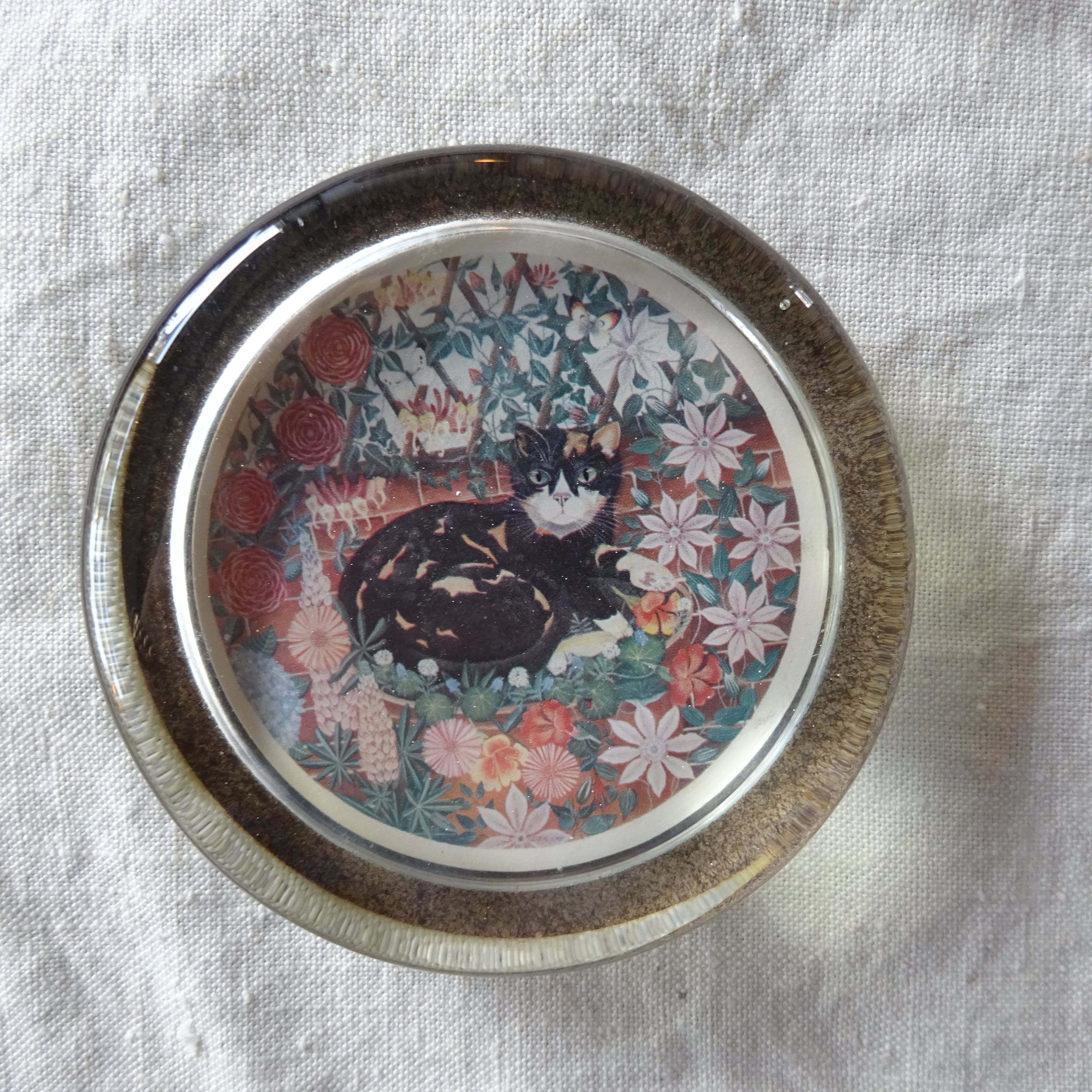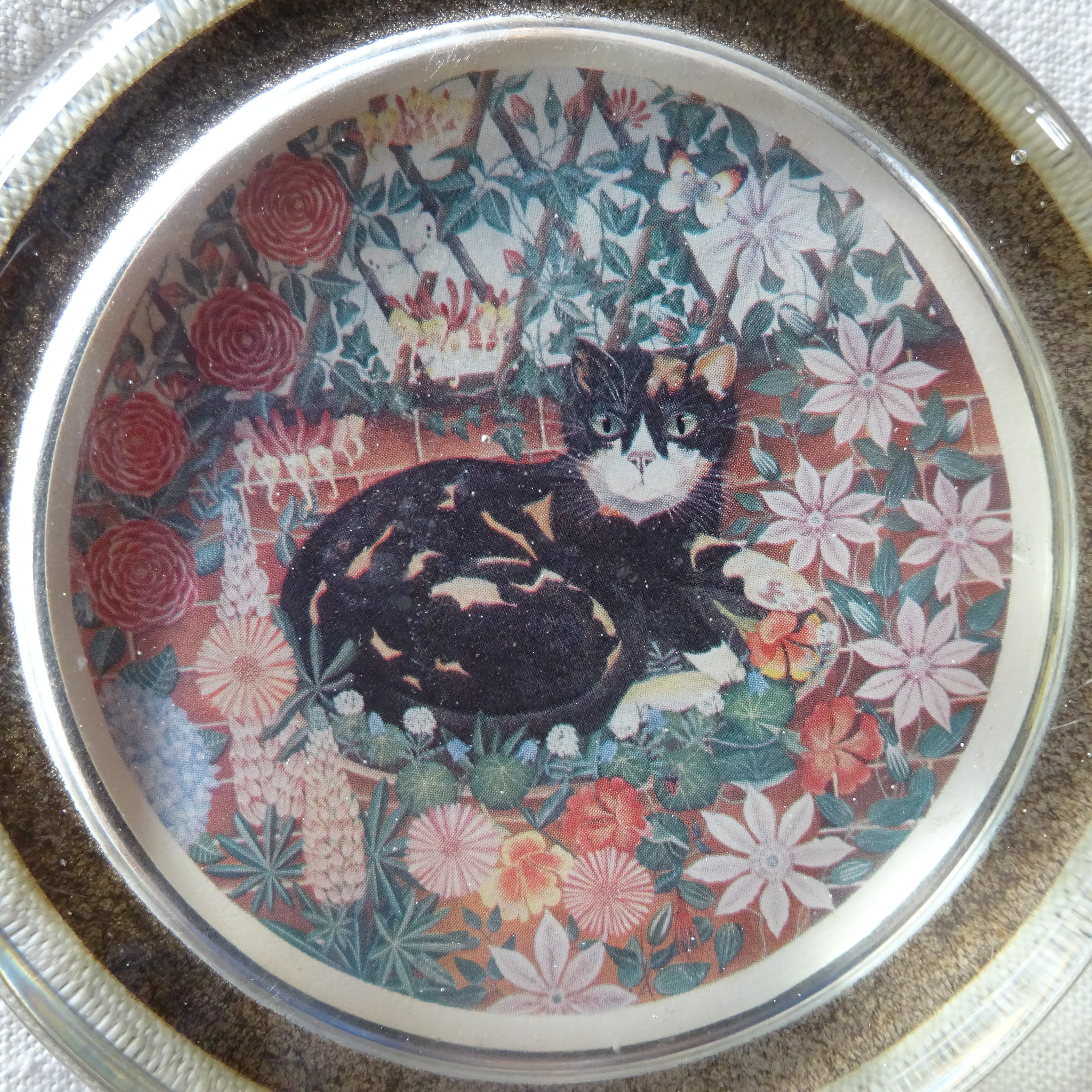 三毛猫の絵が埋め込まれた可愛らしいデザインです。