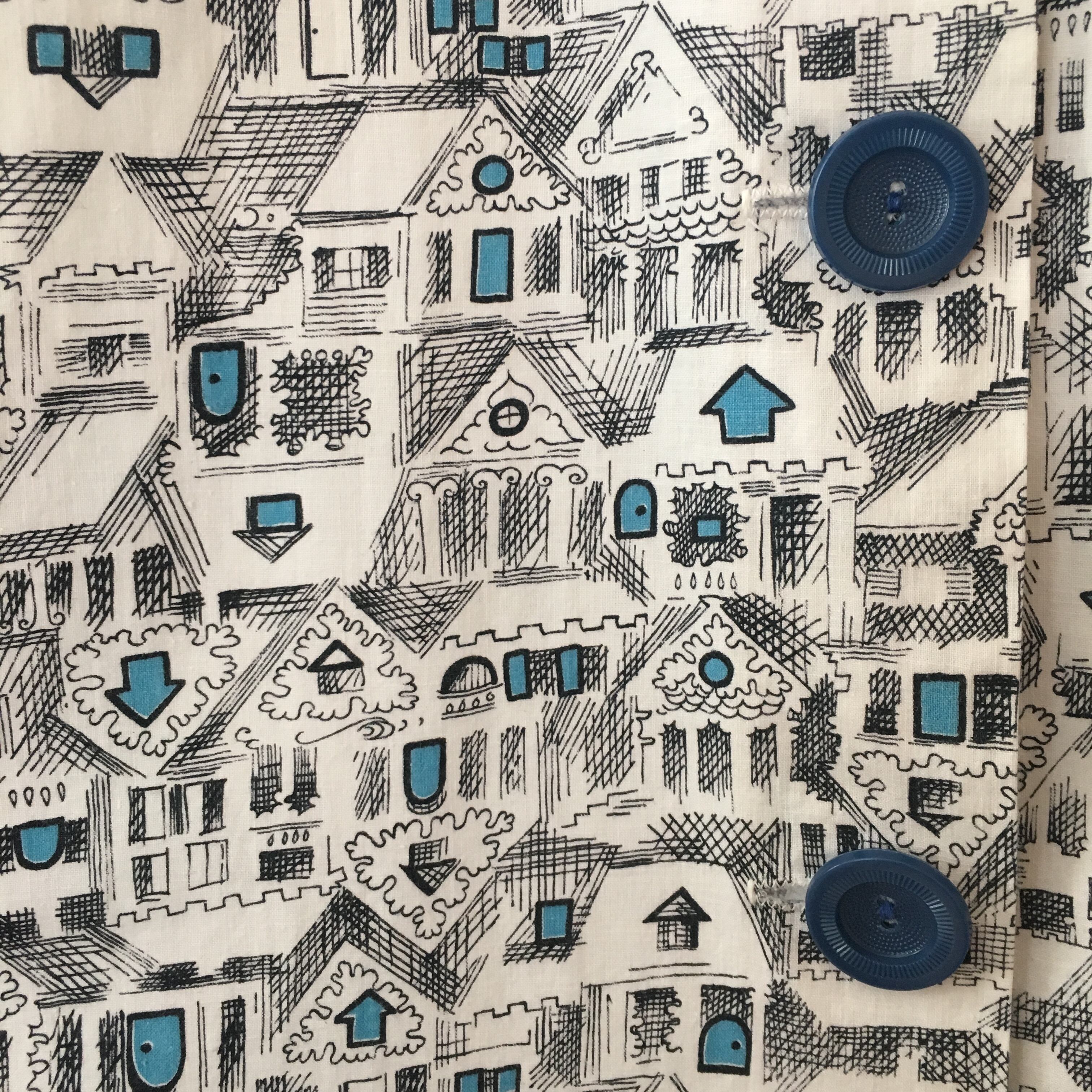 家の柄が可愛らしく、ビンテージ感溢れるボタンや、襟 袖口 ポケットなどのディティールも40'sらしさが詰まっていてとてもオススメです。