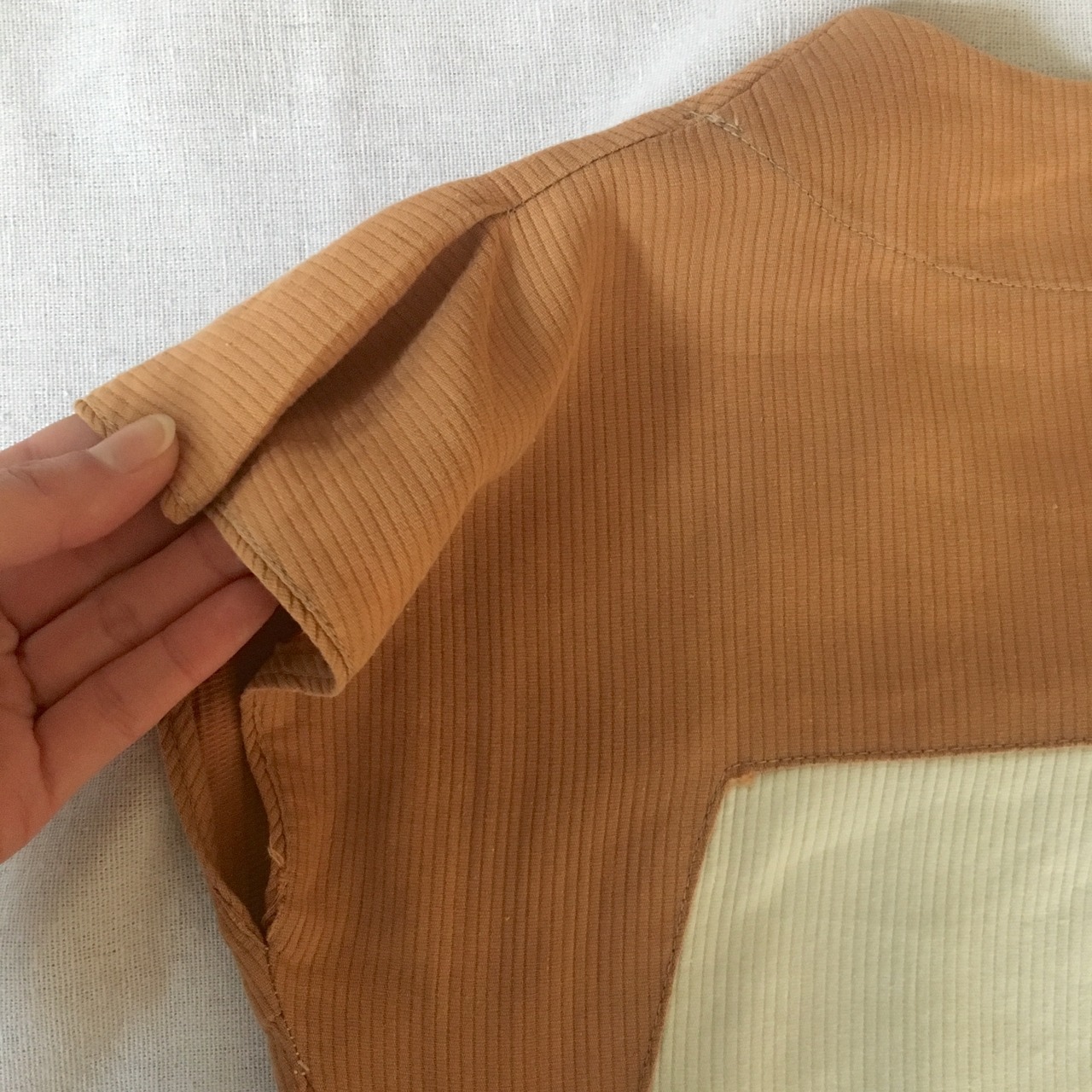ツートーンカラーにポケットのさりげないアクセント、後ろ身頃のボックスプリーツや袖のプリーツなど 見れば見るほど可愛い発見がたくさんです♪