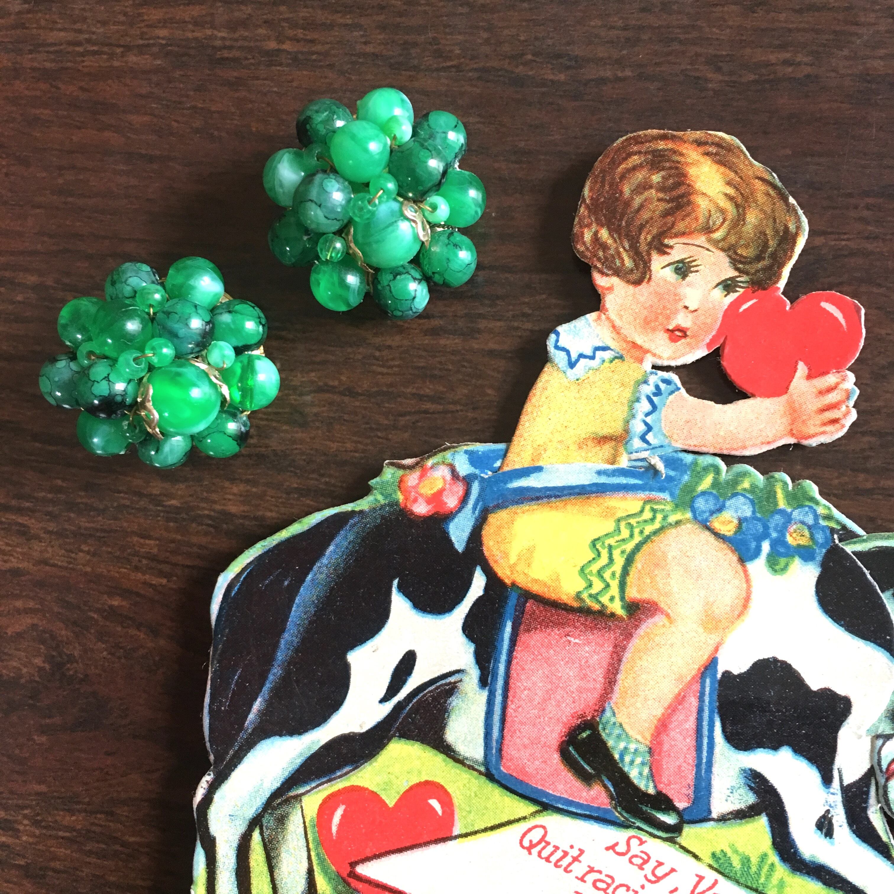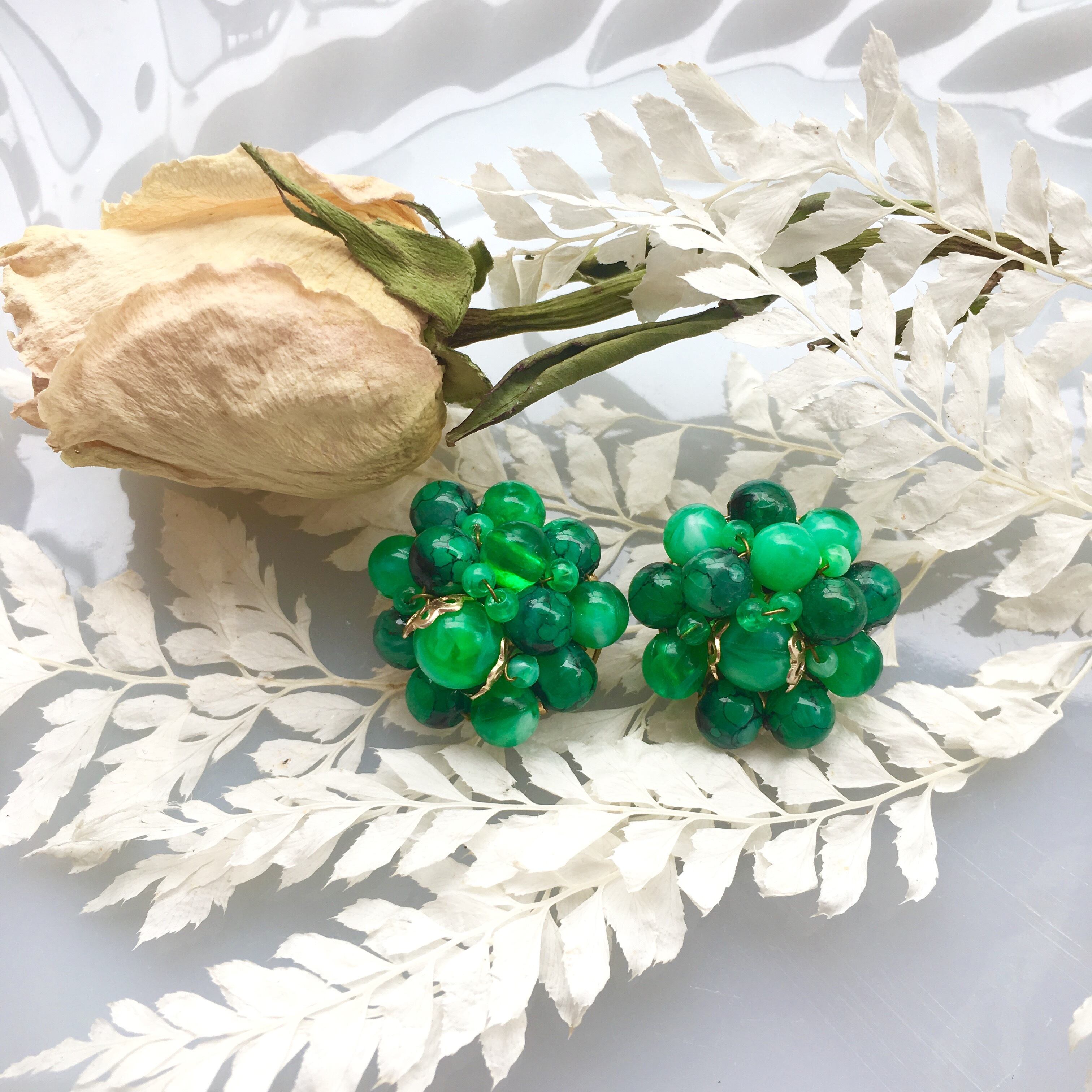 単色のイヤリングではありますが、よく見ると4種類のビーズを使用し、クリアカラーだったりマーブル模様だったりと、大変デザイン性のある一品です。