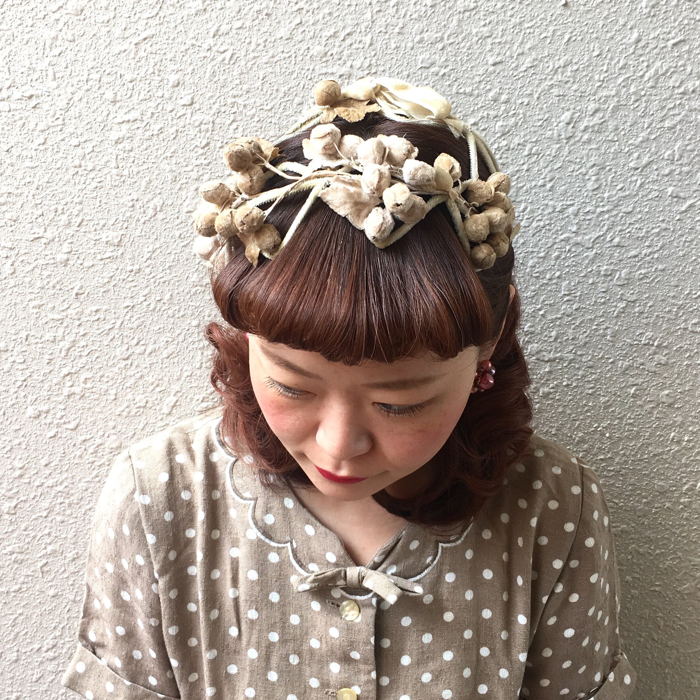 写真のように頭のトップに着けるのもよし、アップスタイルなら下の方に着けても可愛いく、使い方次第でコーディネートも色々です。