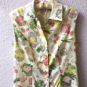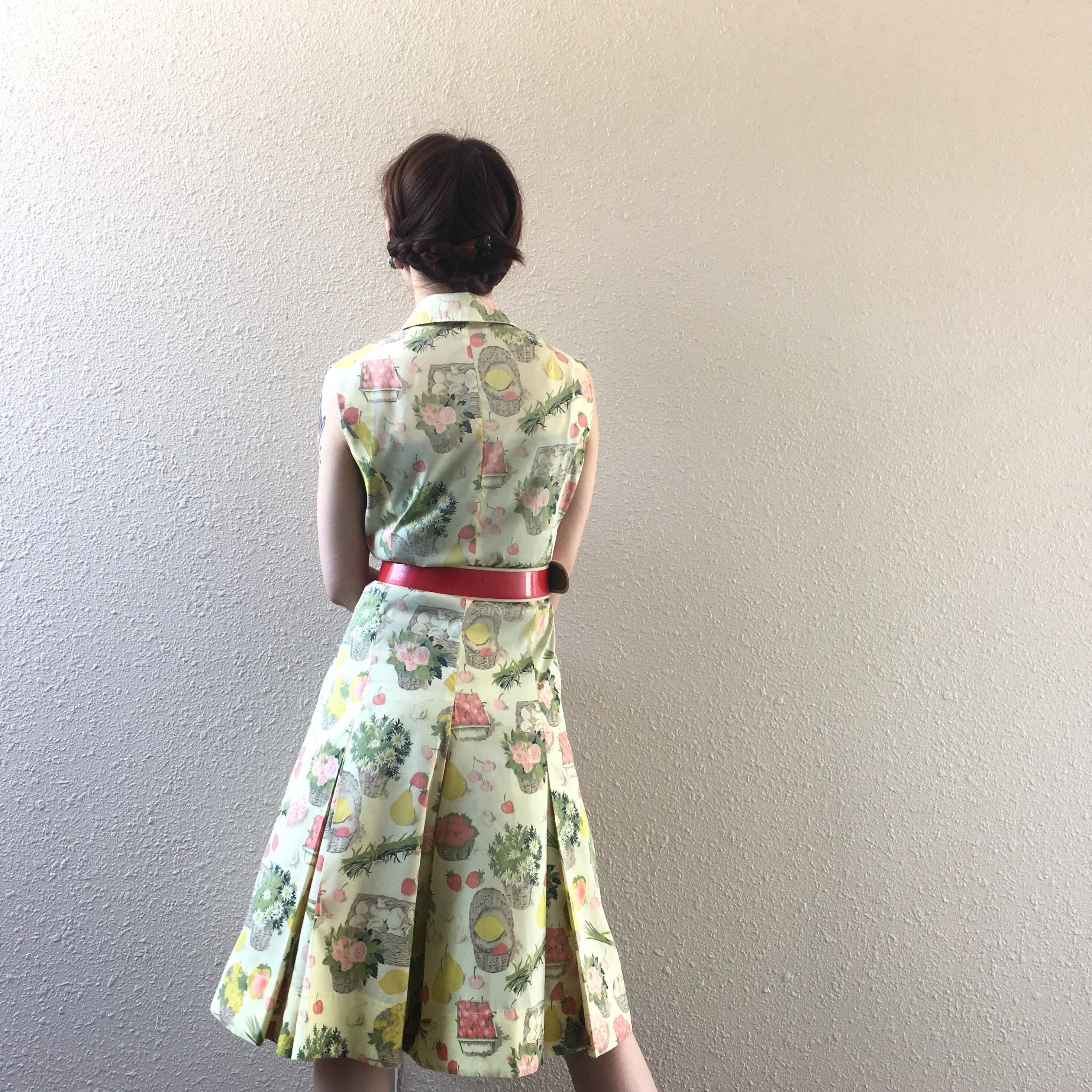 フルーツ柄がなんとも可愛いワンピース、、かと思いきや、パンツルックのオールインワン!