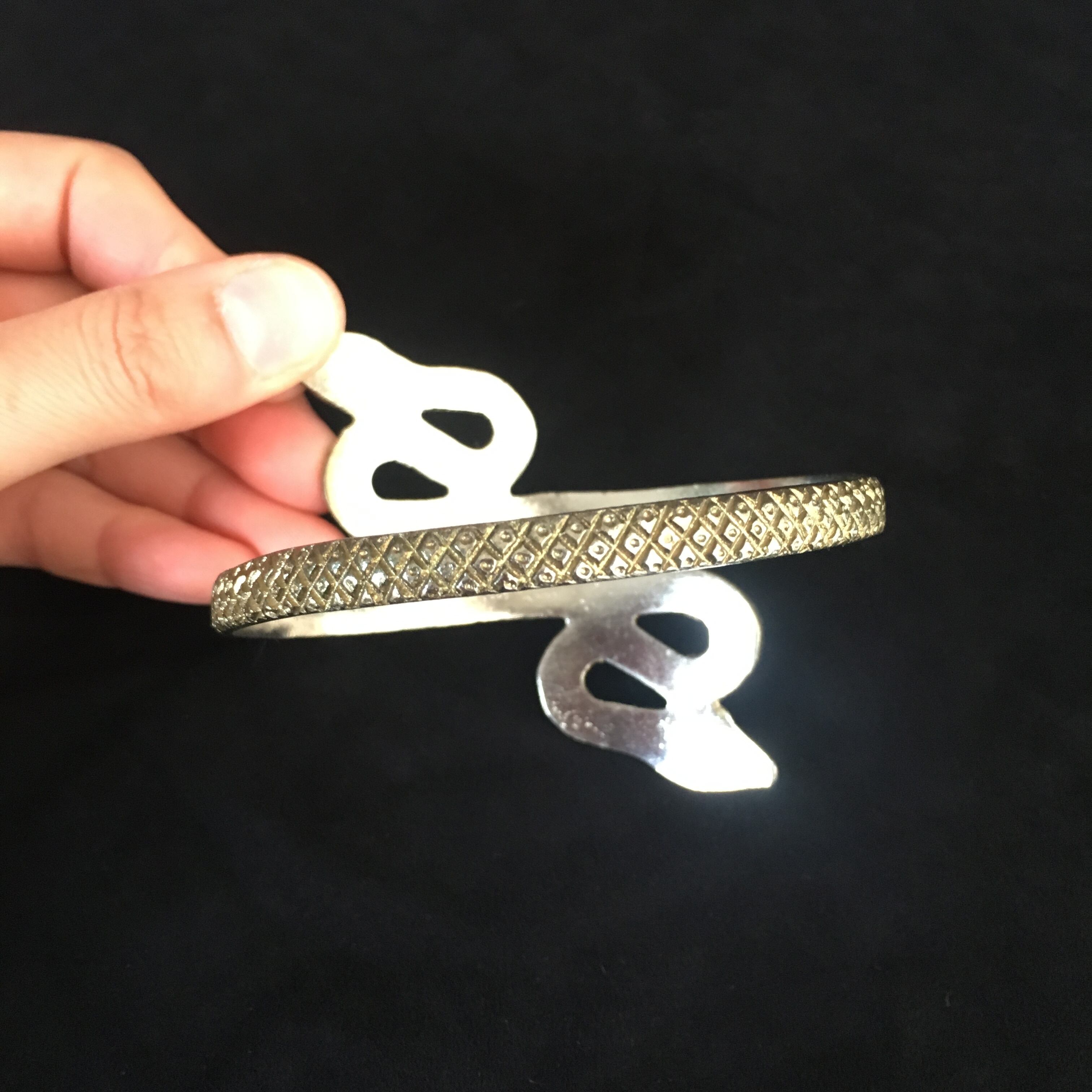 力強い、芯のある美しさといった印象で、大袈裟でない存在感がかなり雰囲気のある素敵なバングルです。