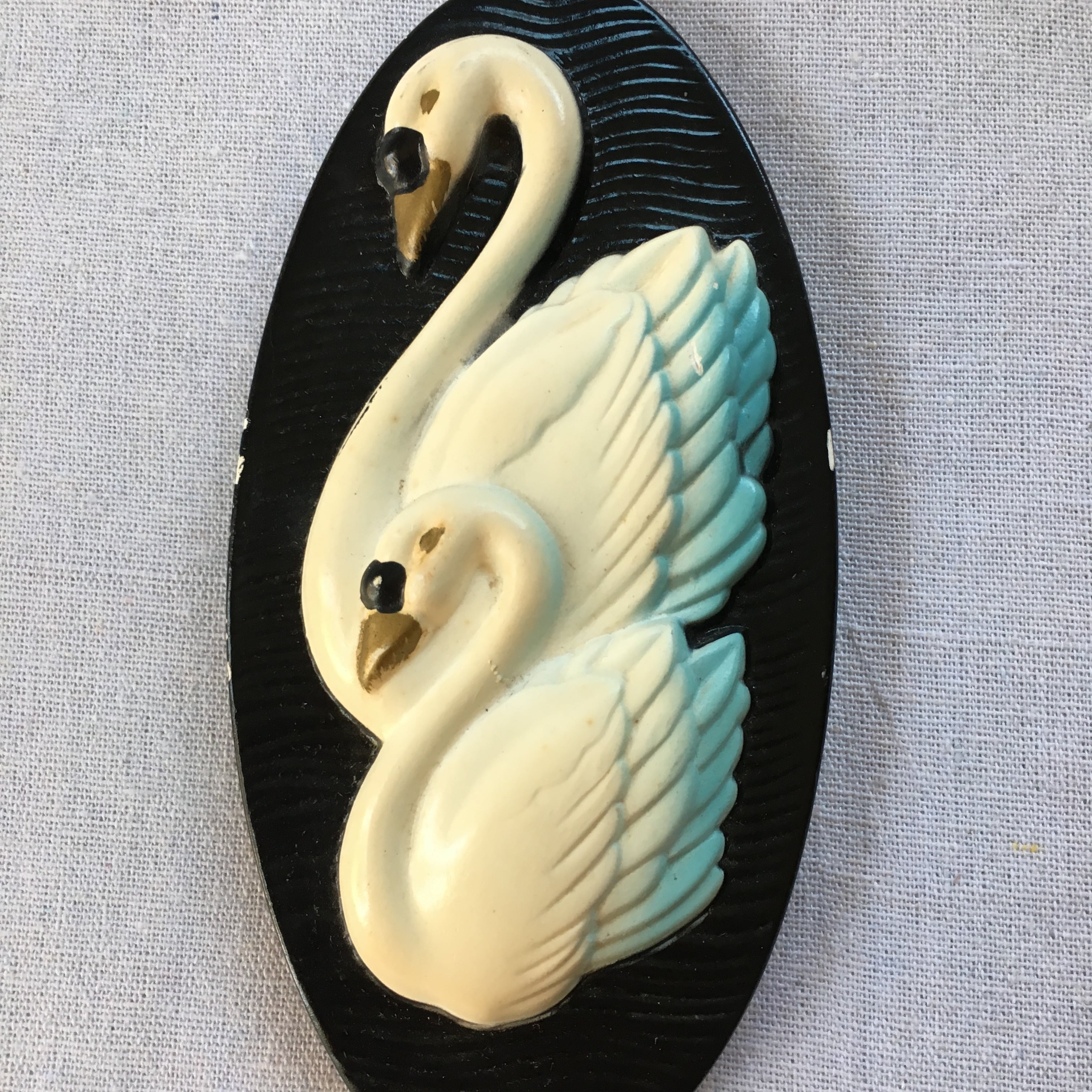 二羽の白鳥が可愛らしいチョークウェア(石膏)の壁掛けです。