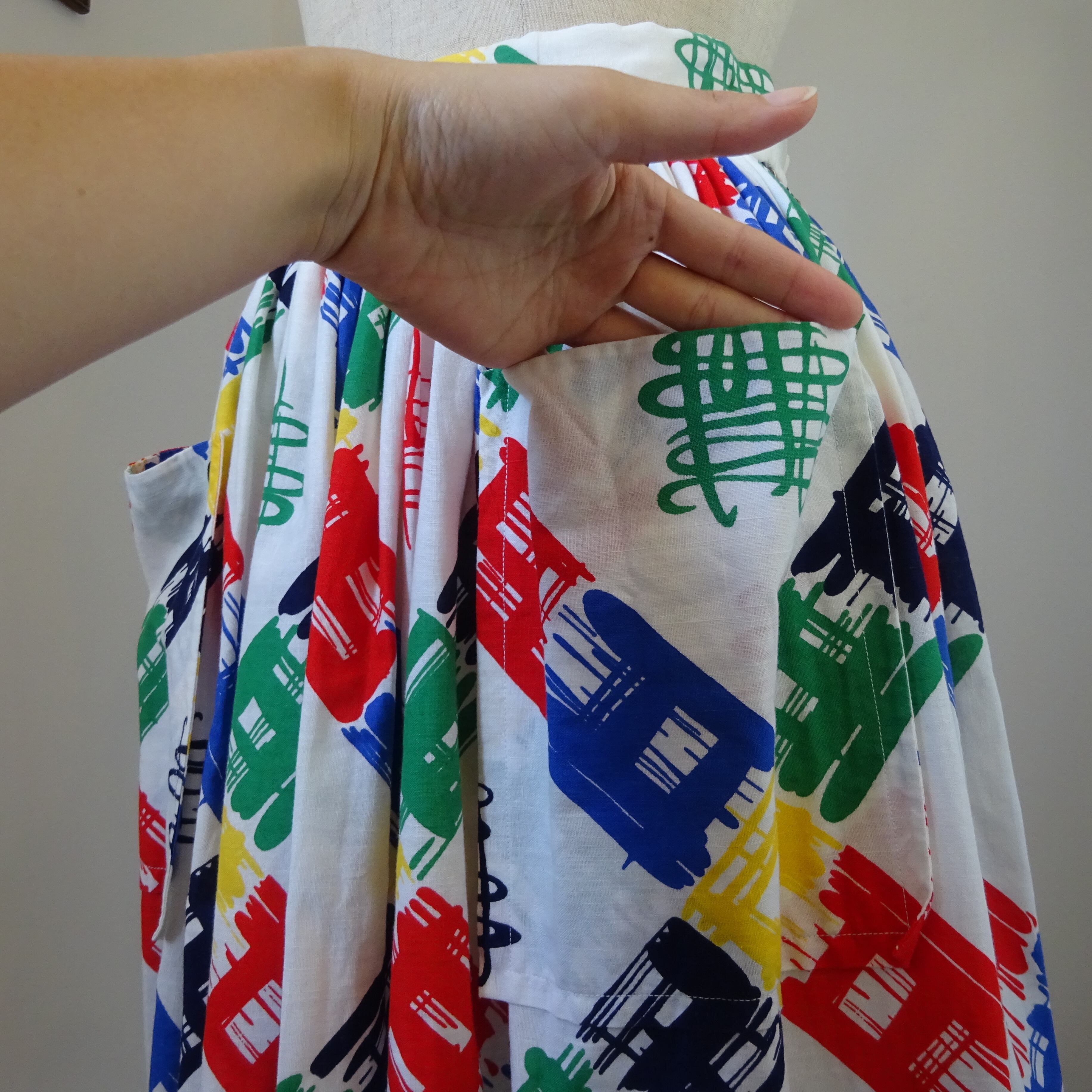 二つの大きなポケットは丁寧に柄合わせしてあり、幅広に取られたウエスト部分のフィット感、丈感、シルエットも相まって上品な印象に仕上げられています。