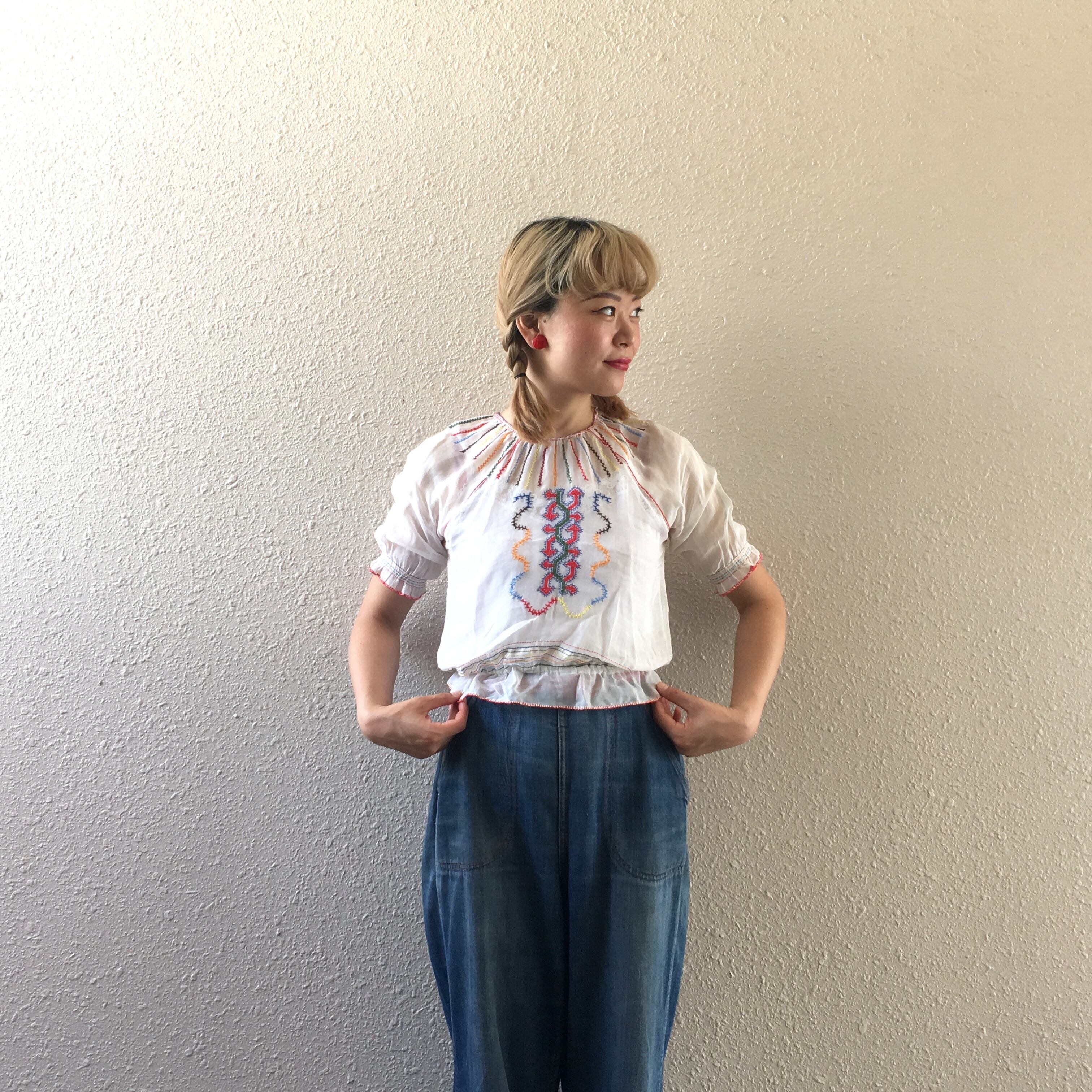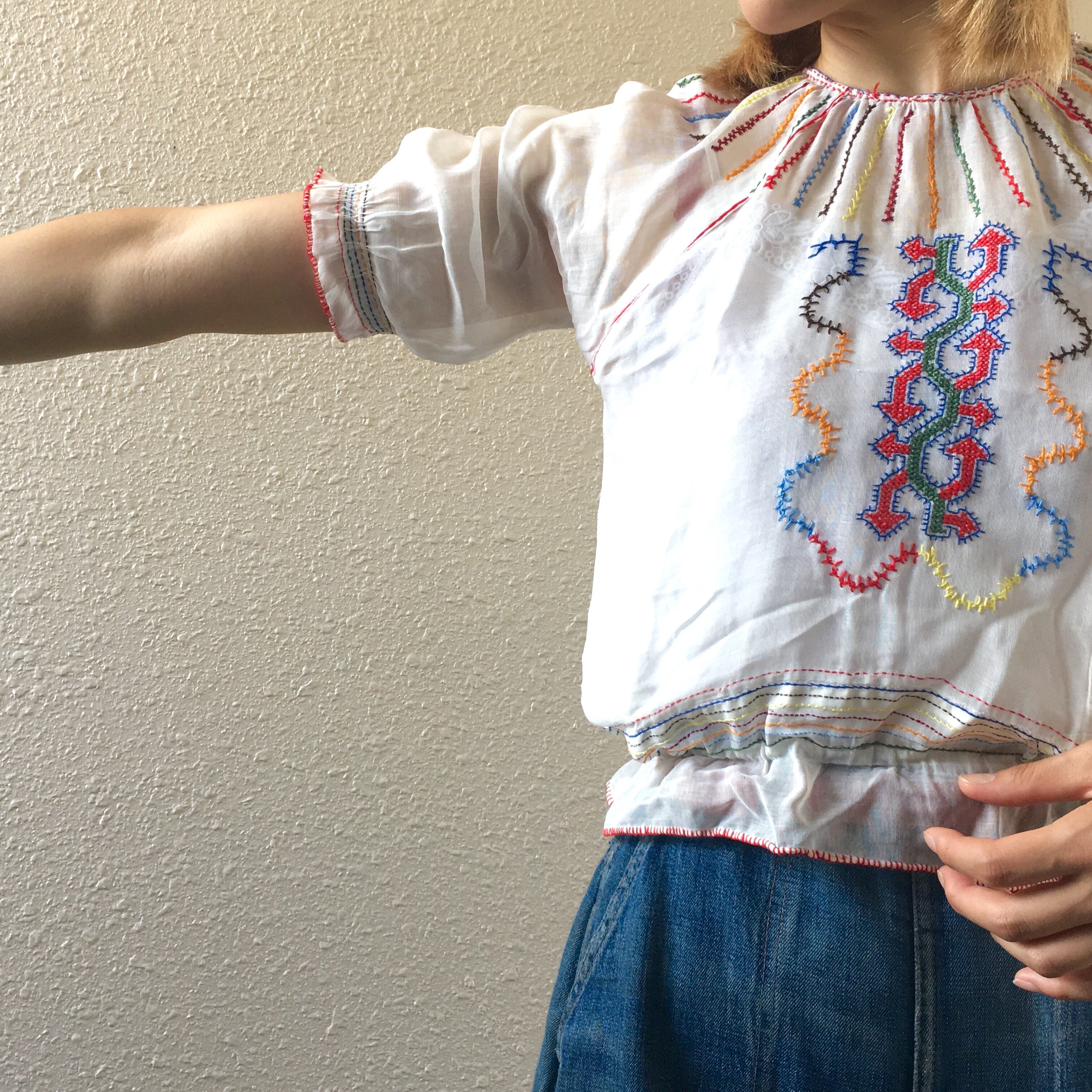 ガーゼのような薄い柔らかなコットンに、全て手刺繍で施された模様。