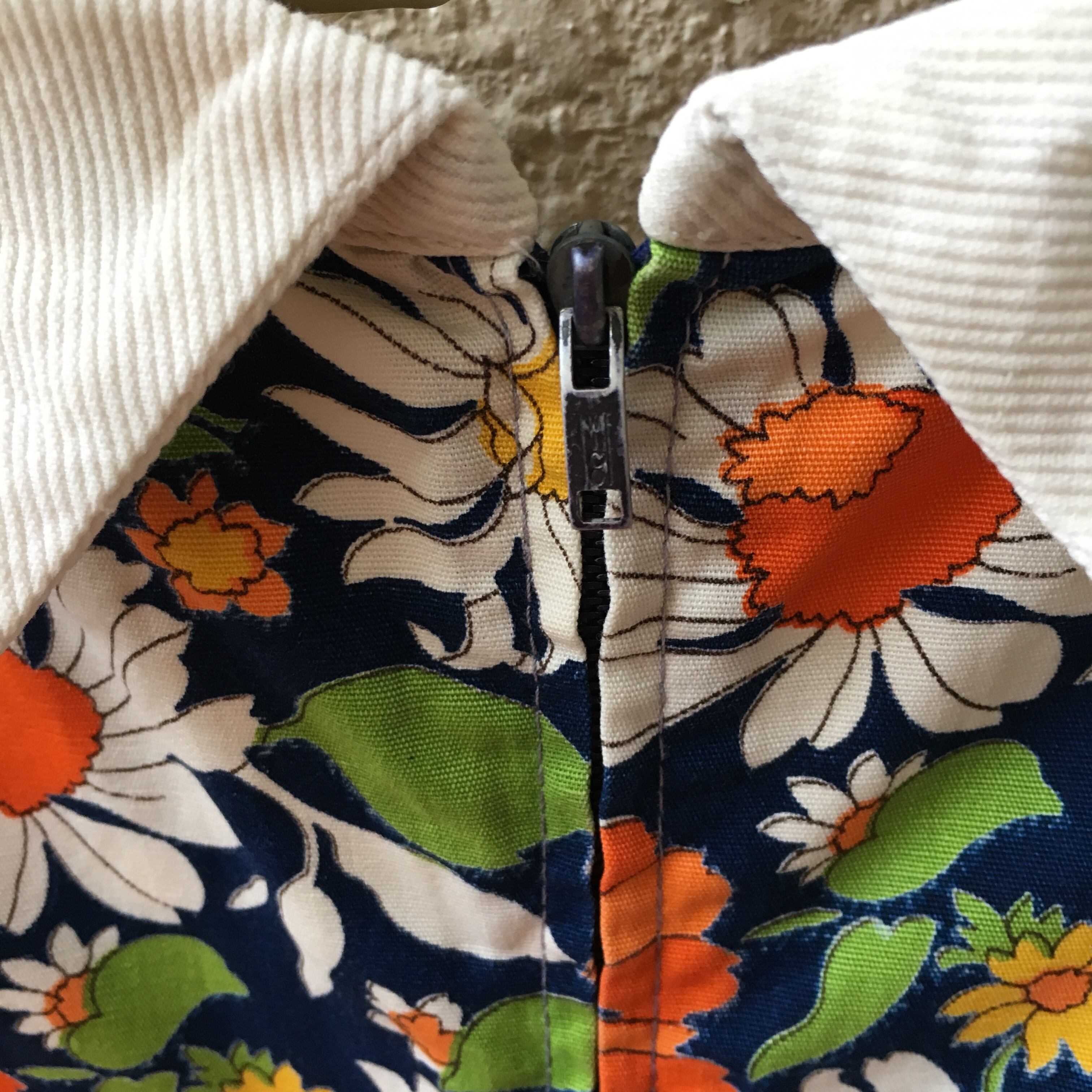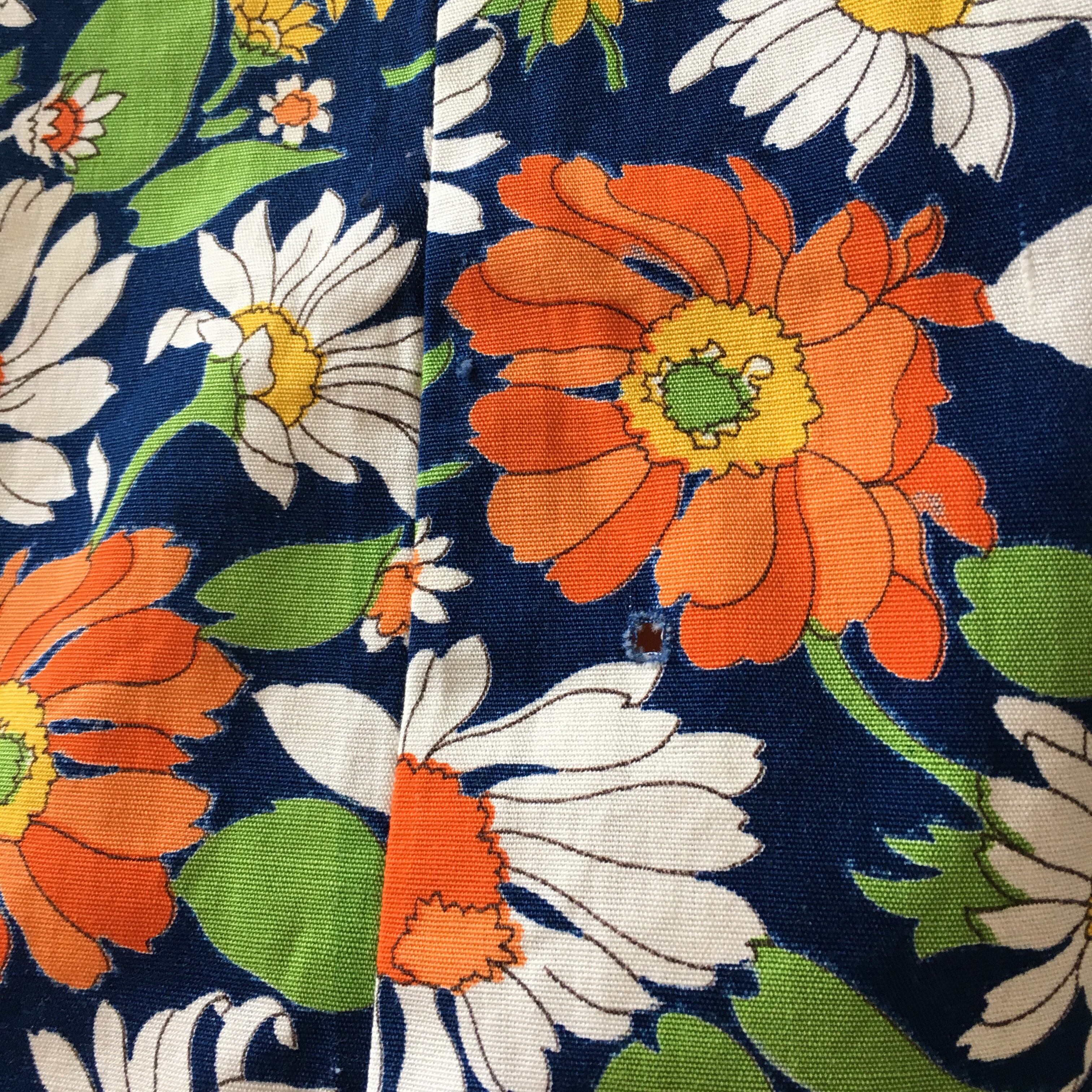 大胆な花柄にすっきり開いた首回り、裾のライン