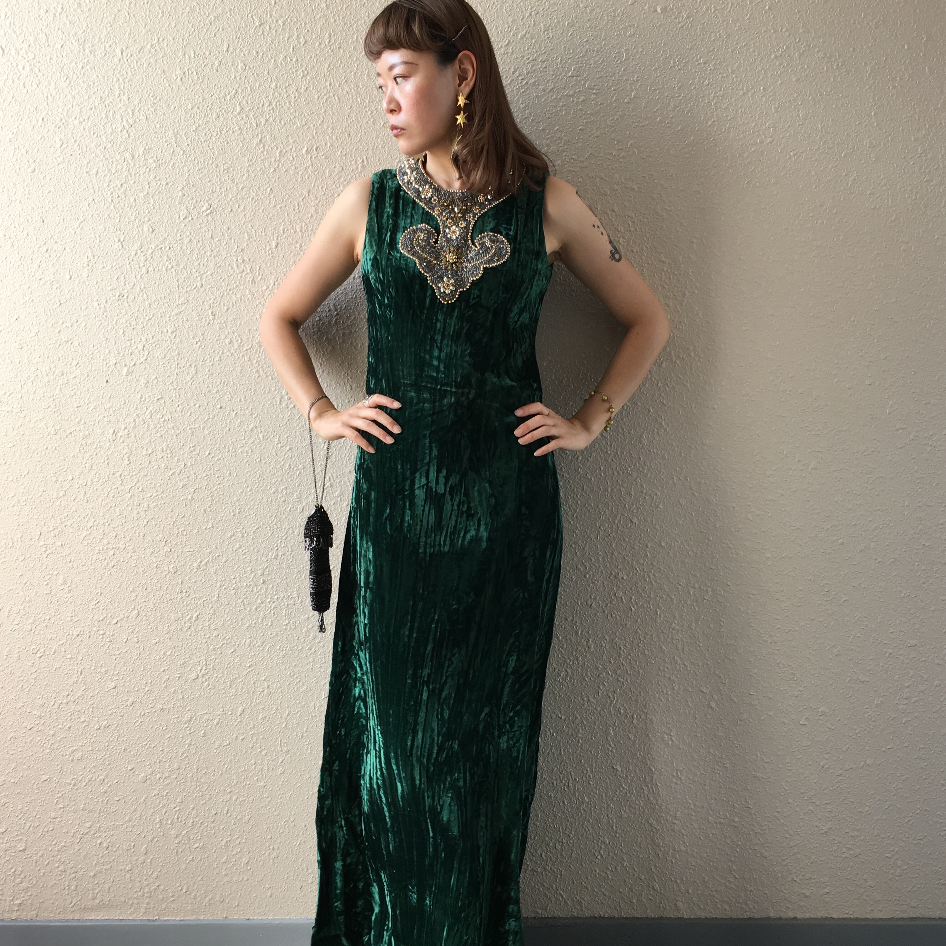贅沢に施されたビーズ刺繍に、つま先まで隠れるロング丈
