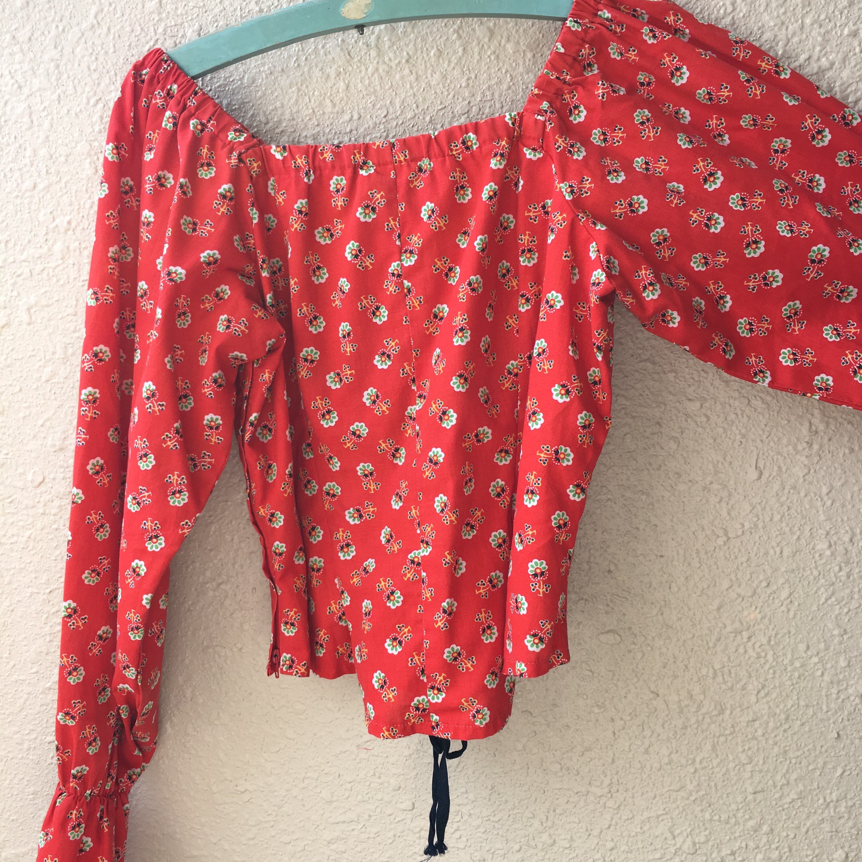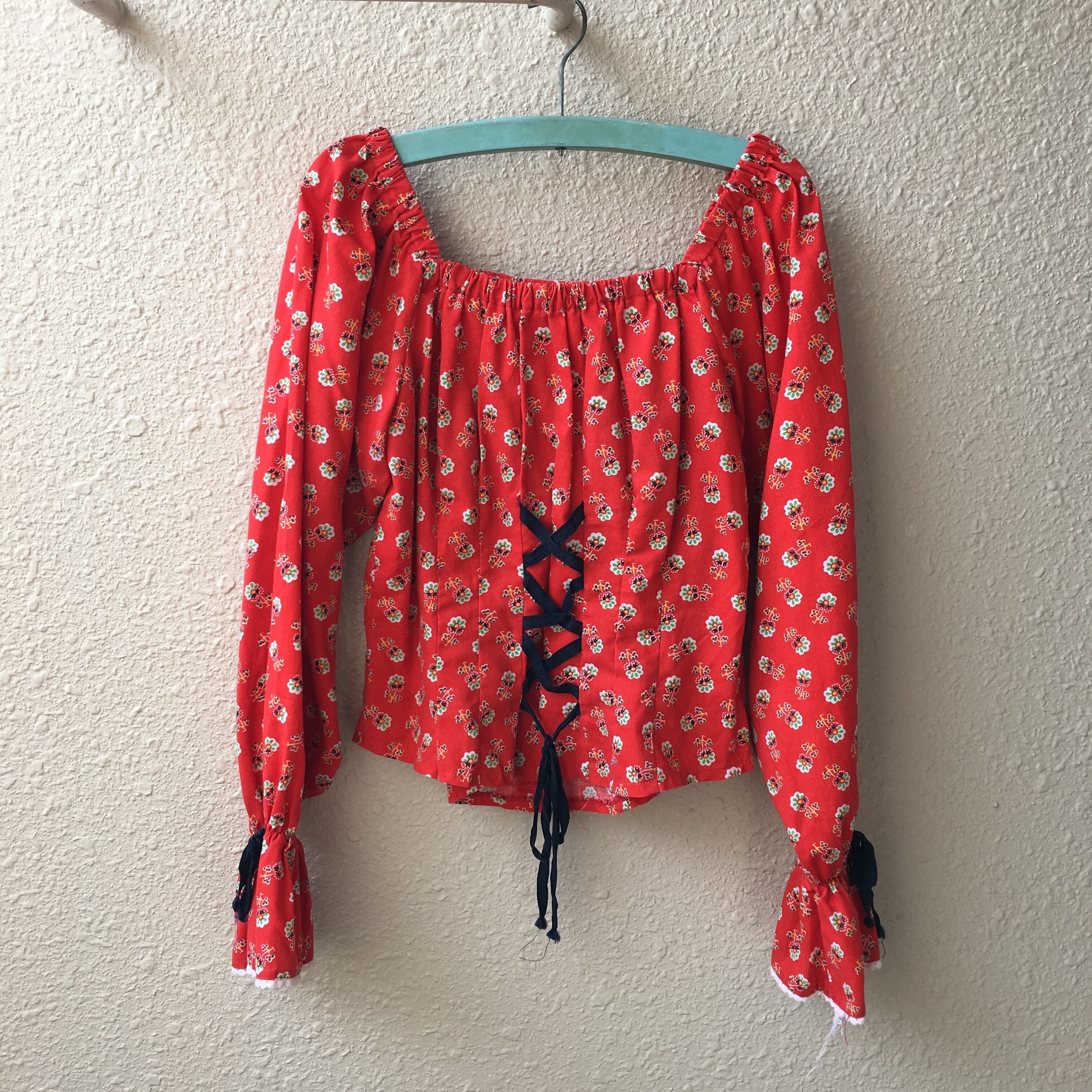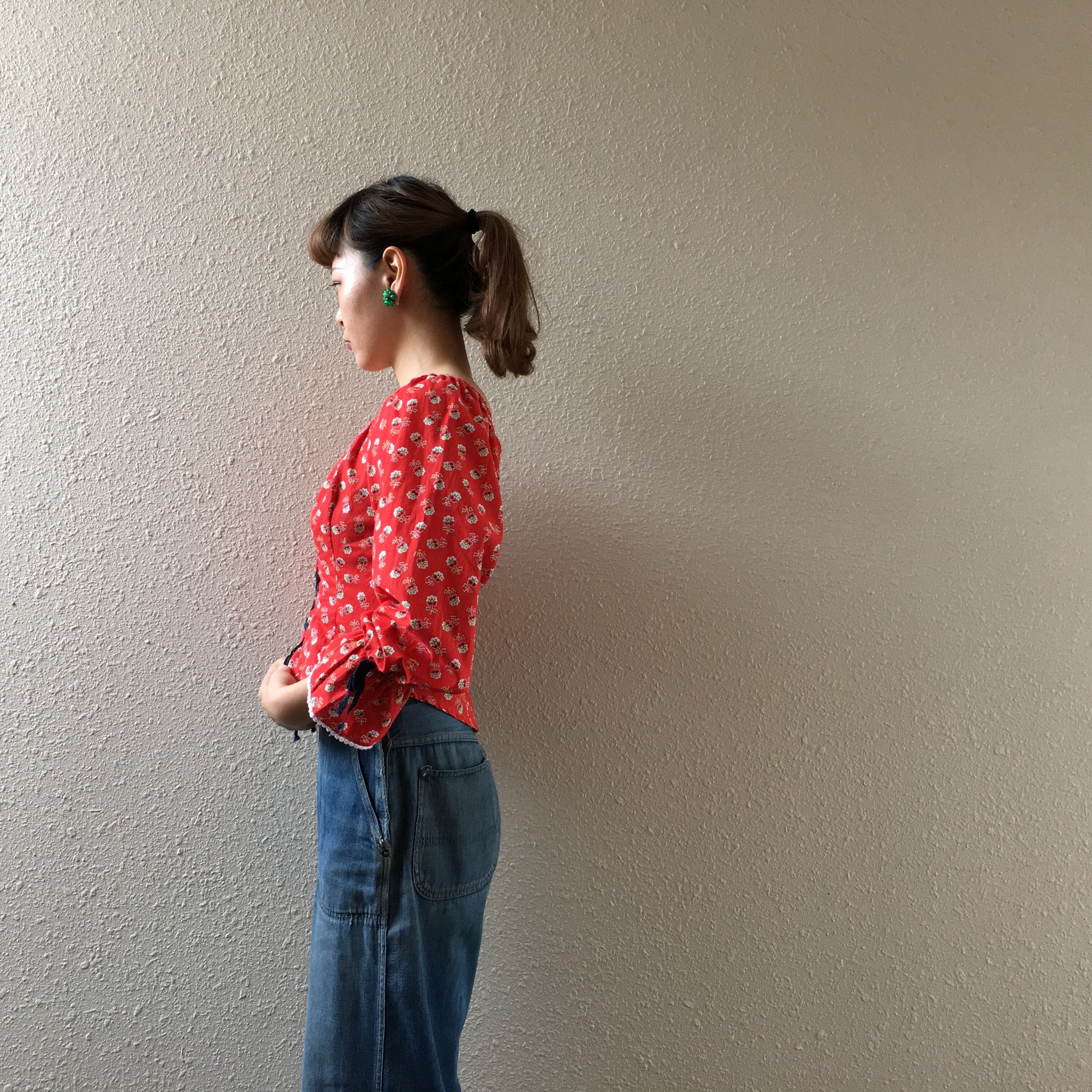 スクエアネックにボリュームのある袖、ショート丈のデザインはチロル民族のような雰囲気