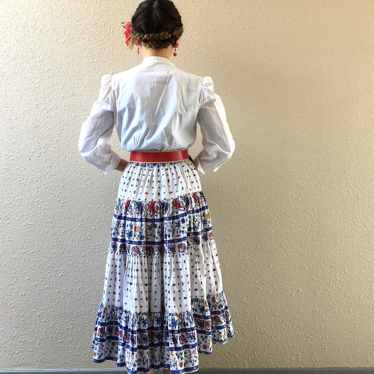 南東のフランスのように強い日差しと綺麗な海が似合う清々しいスカートで、ナチュラルに、健康的なヴィンテージスタイルをお楽しみください。