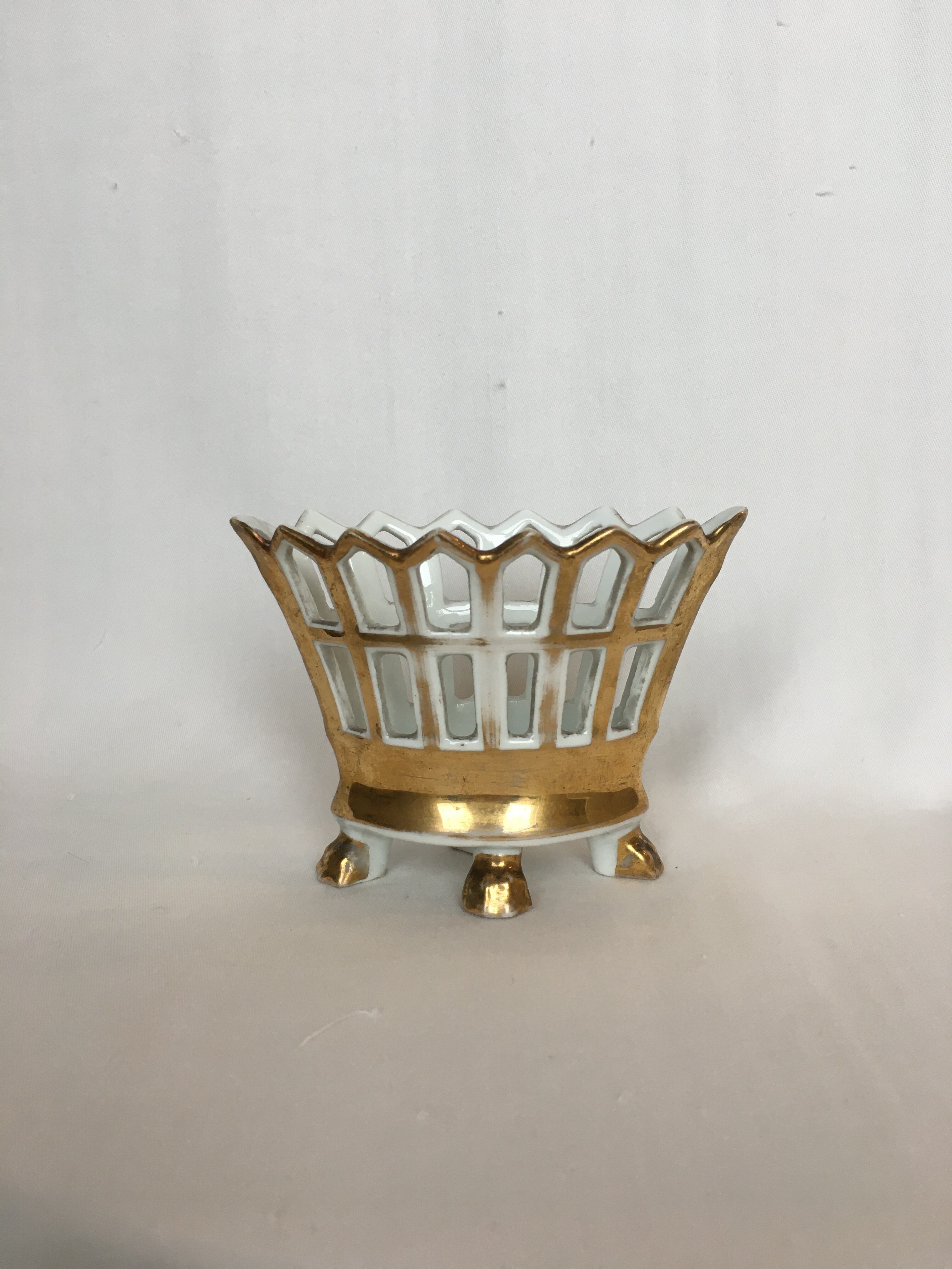 広がった口にギザギザなデザイン、ちょこんと付いた足が良いアクセントになっている雰囲気の良い入れ物