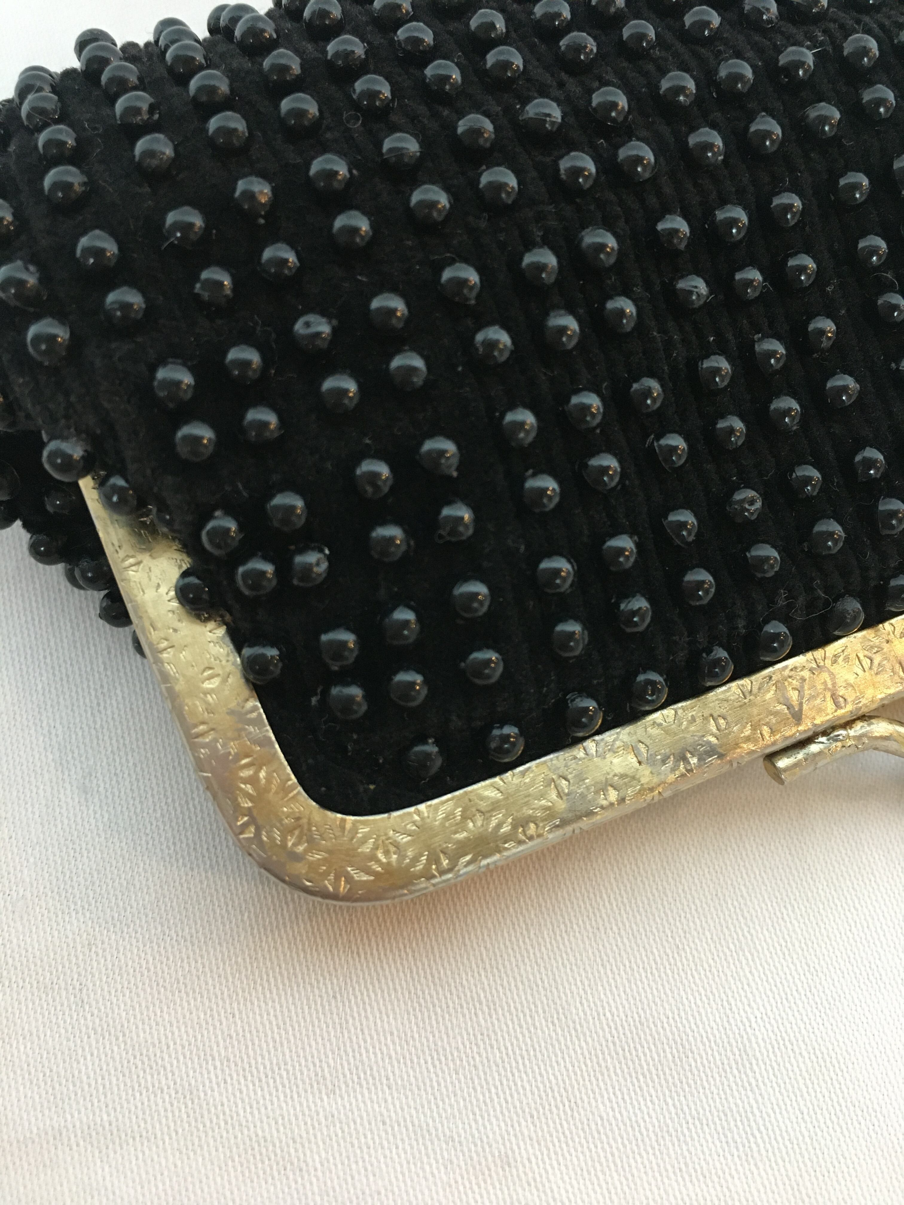 コーデュロイ素材につぶつぶのビーズが付いたパース