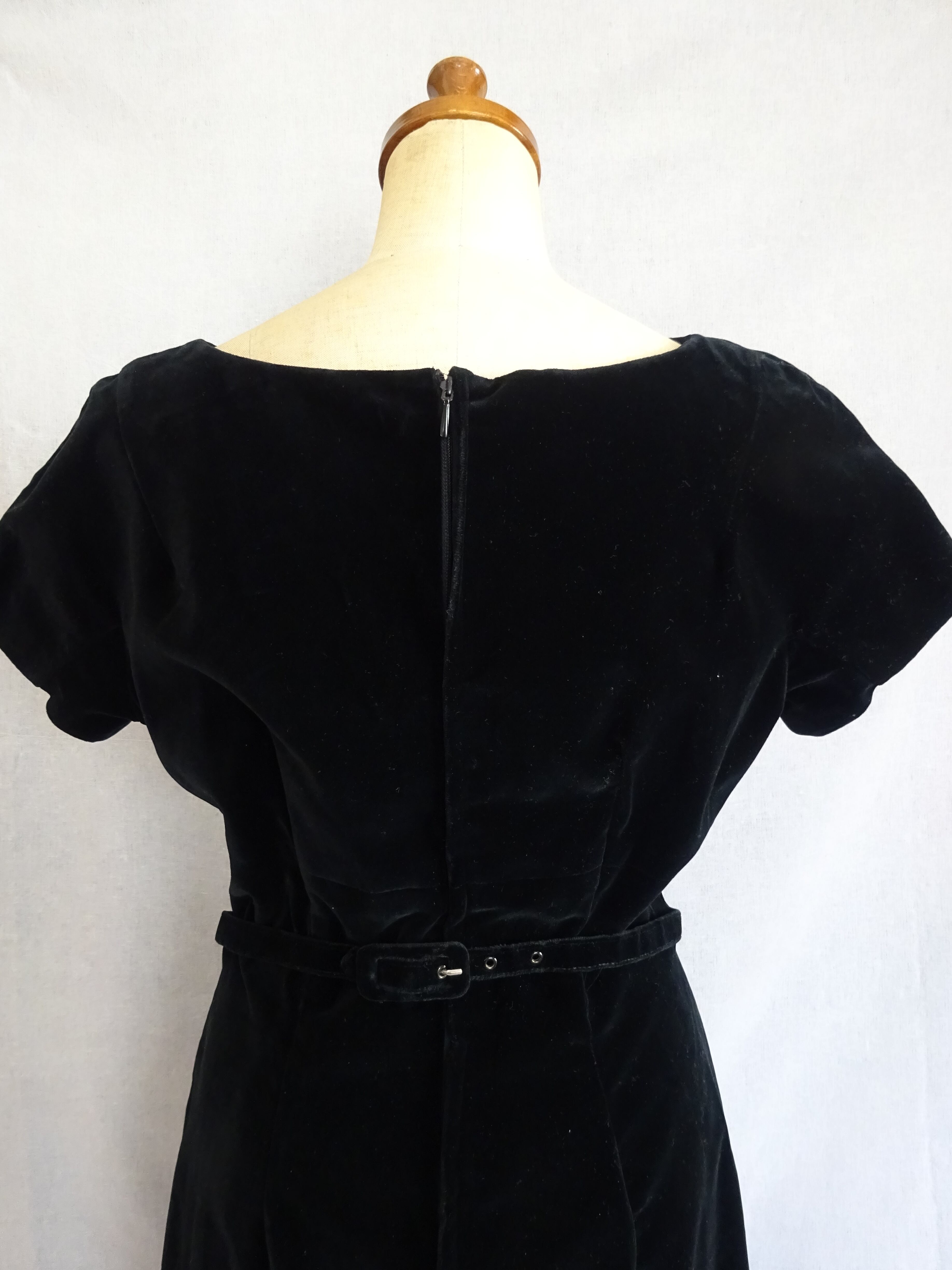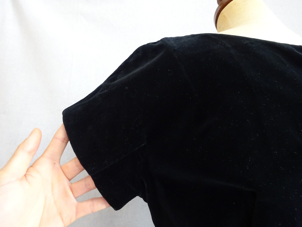 肩に縫い目がなく、スッキリ開いたデコルテラインから袖に掛けてとても綺麗なシルエットになっています、恐らくかなり肉厚なベルベットを使っている為、縫い目のゴワつきを軽減する工夫かと思われますが、とても良い仕事をされています。
