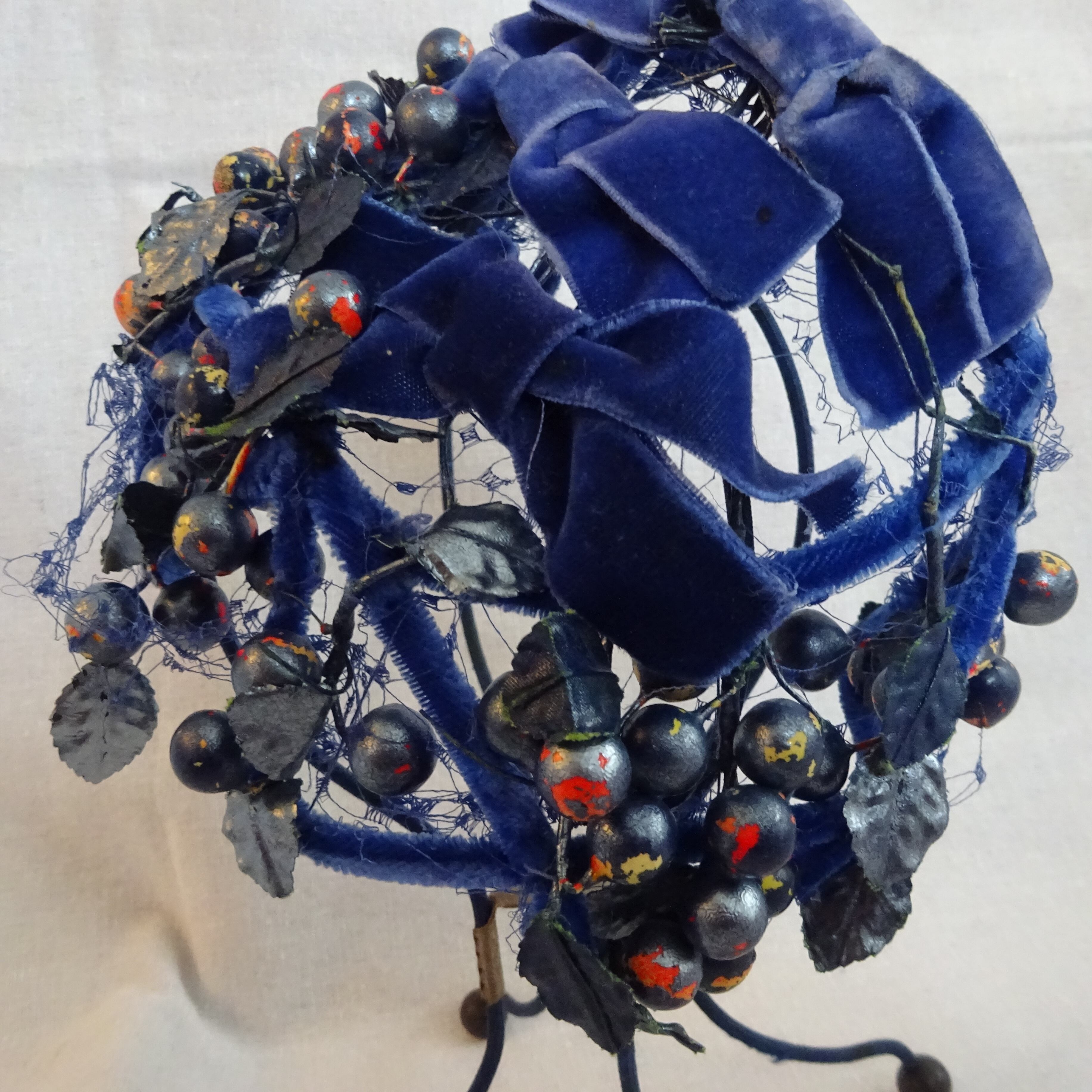 ブルー・ネイビーの可愛らしいベリーがあしらわれたヘッドドレス