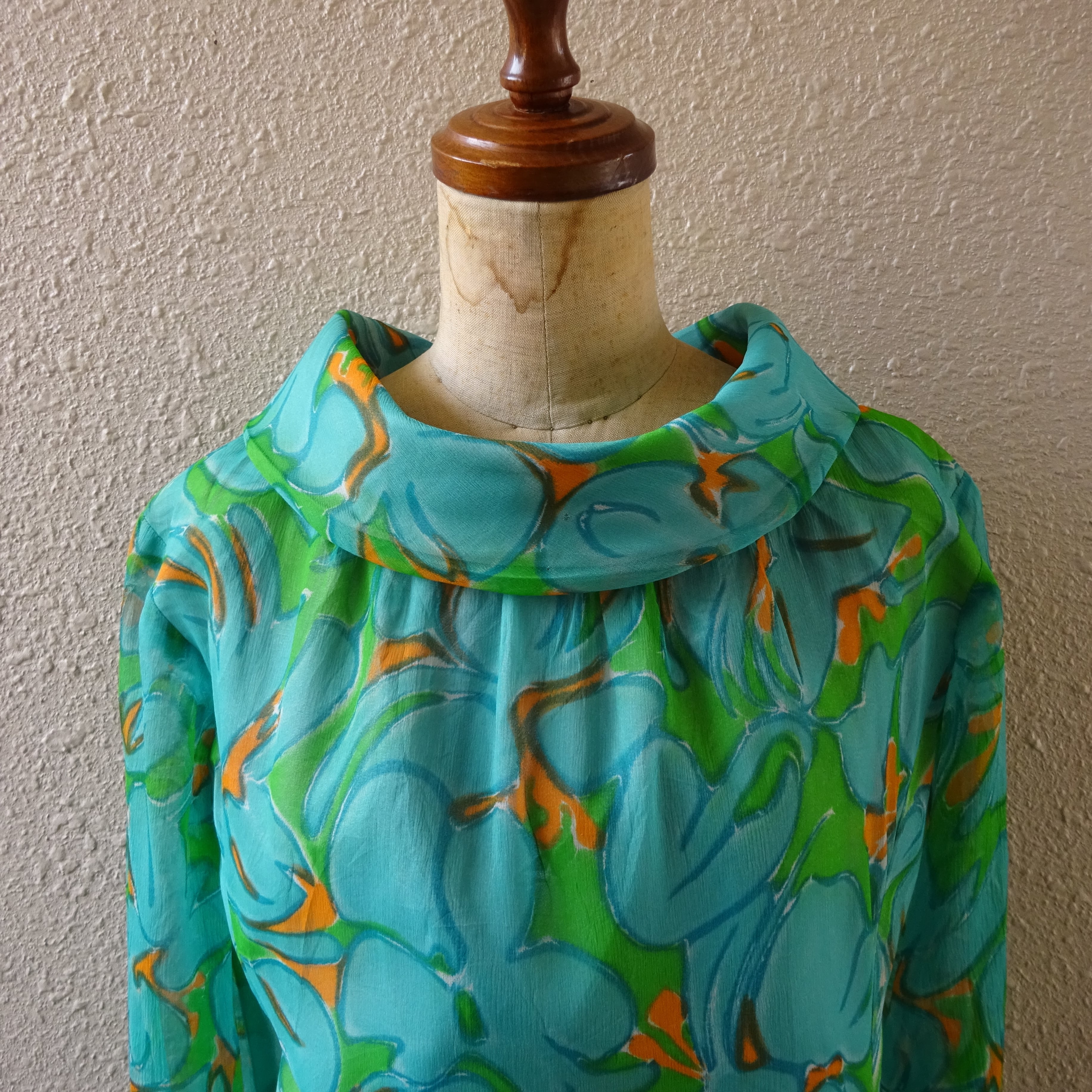 胸元のギャザーや大きな襟、滑らかな曲線を描くシルエットが、鮮やかな色合いと反してとても大人っぽくデザインされていて、幅広い年齢層・様々なシーンにご活用して頂けます