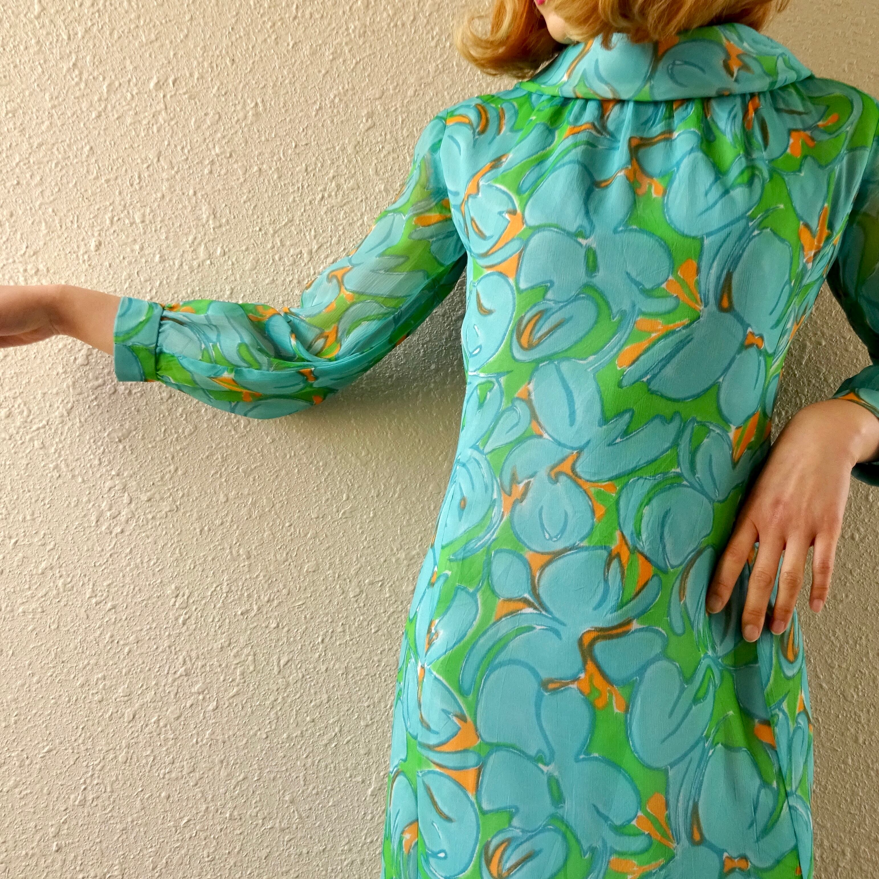 シフォン素材がとても軽やかで、ふわっと風になびくシースルーの袖がとても上品です