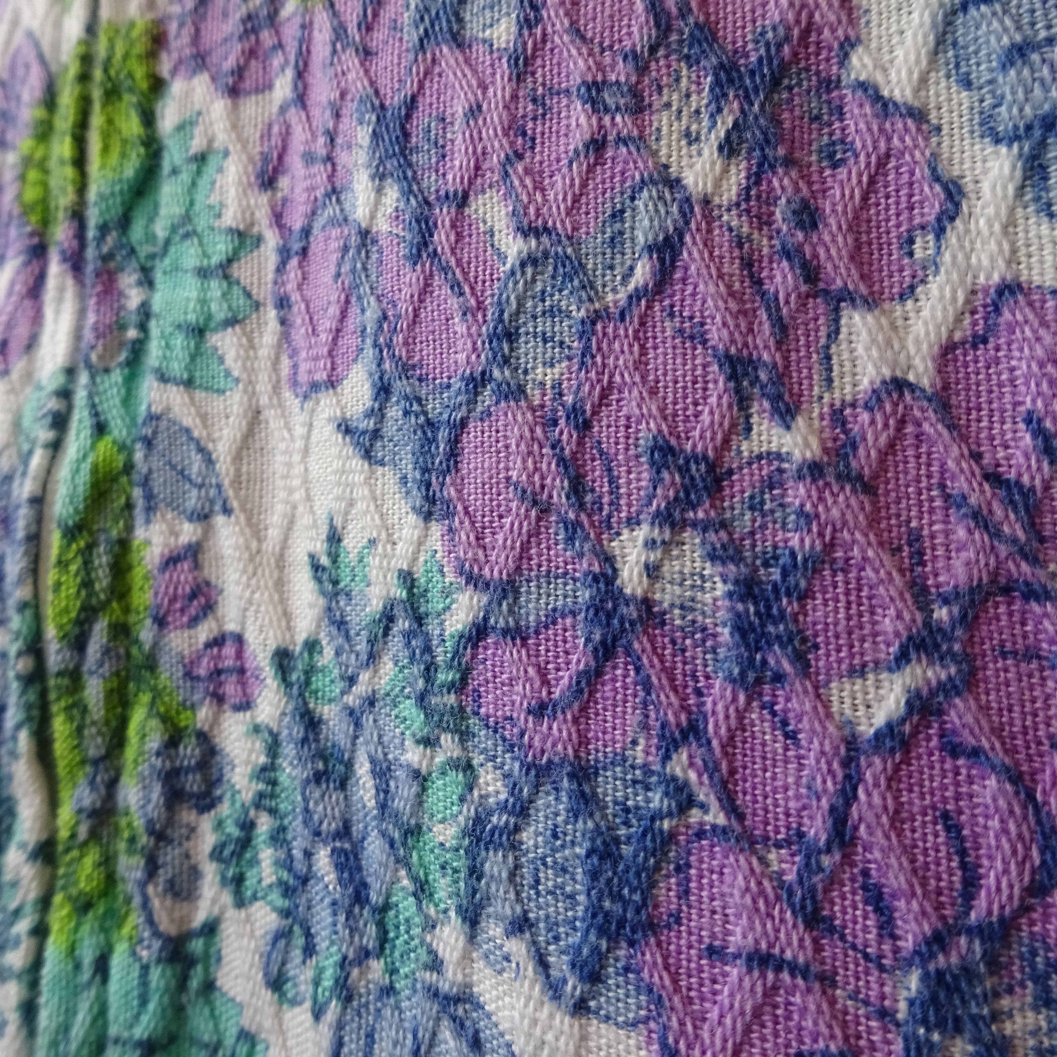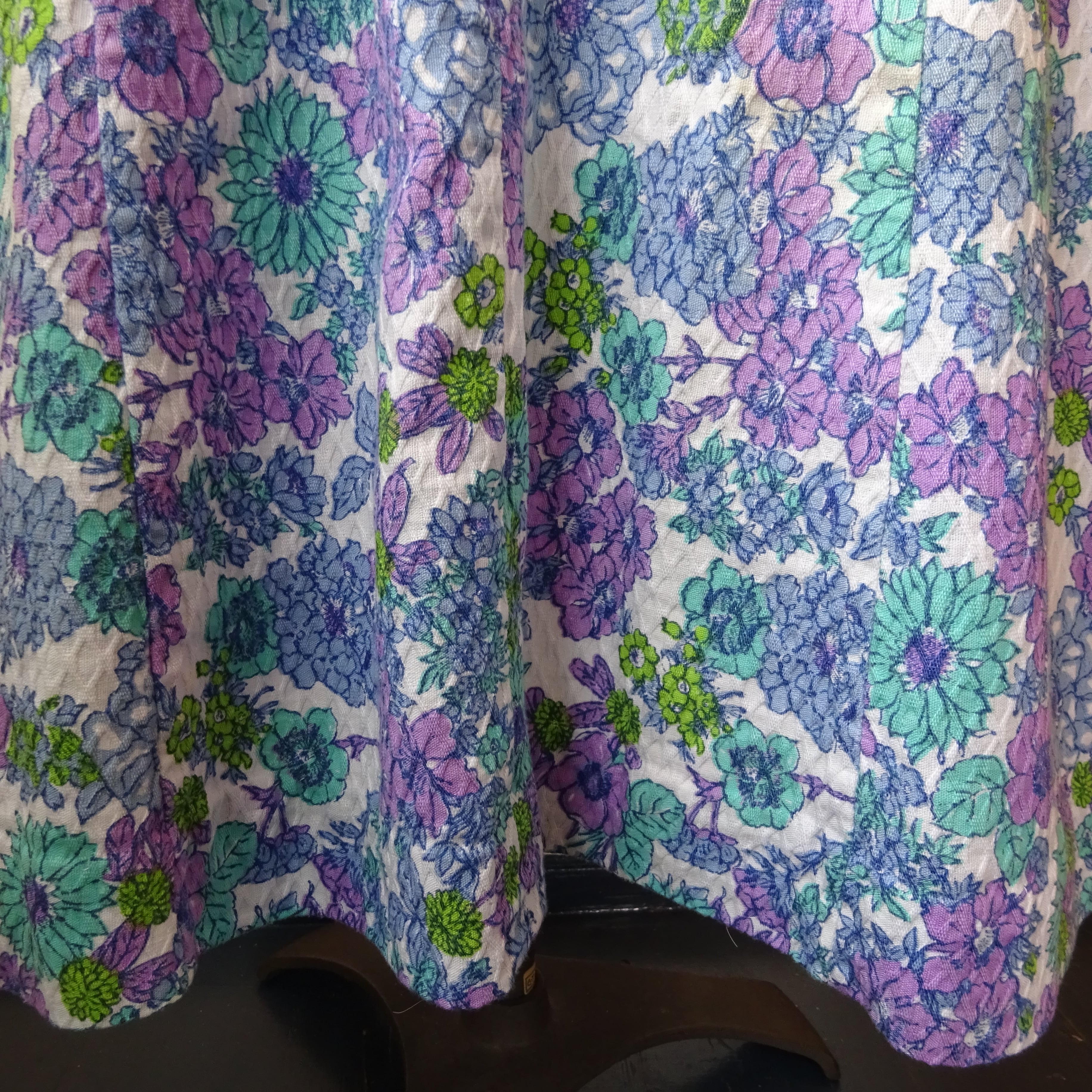 ブルーやパープルを基調とした花柄に、凹凸のあるワッフル生地