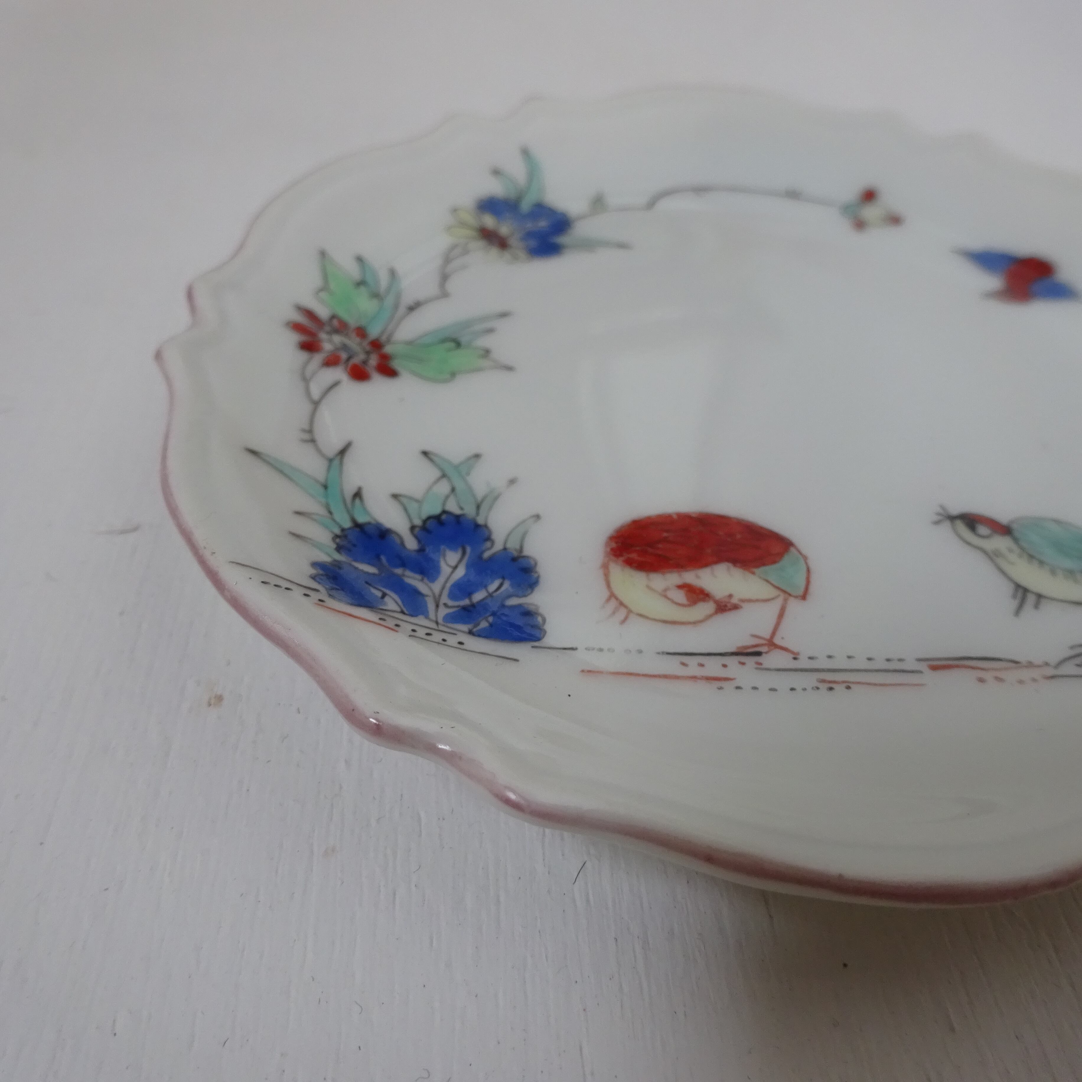 少しアジアテイストも感じられる絵柄で、所謂豆皿のようなサイズですが縁のデザインやカラーリングがヨーロッパらしさを醸し出しています。