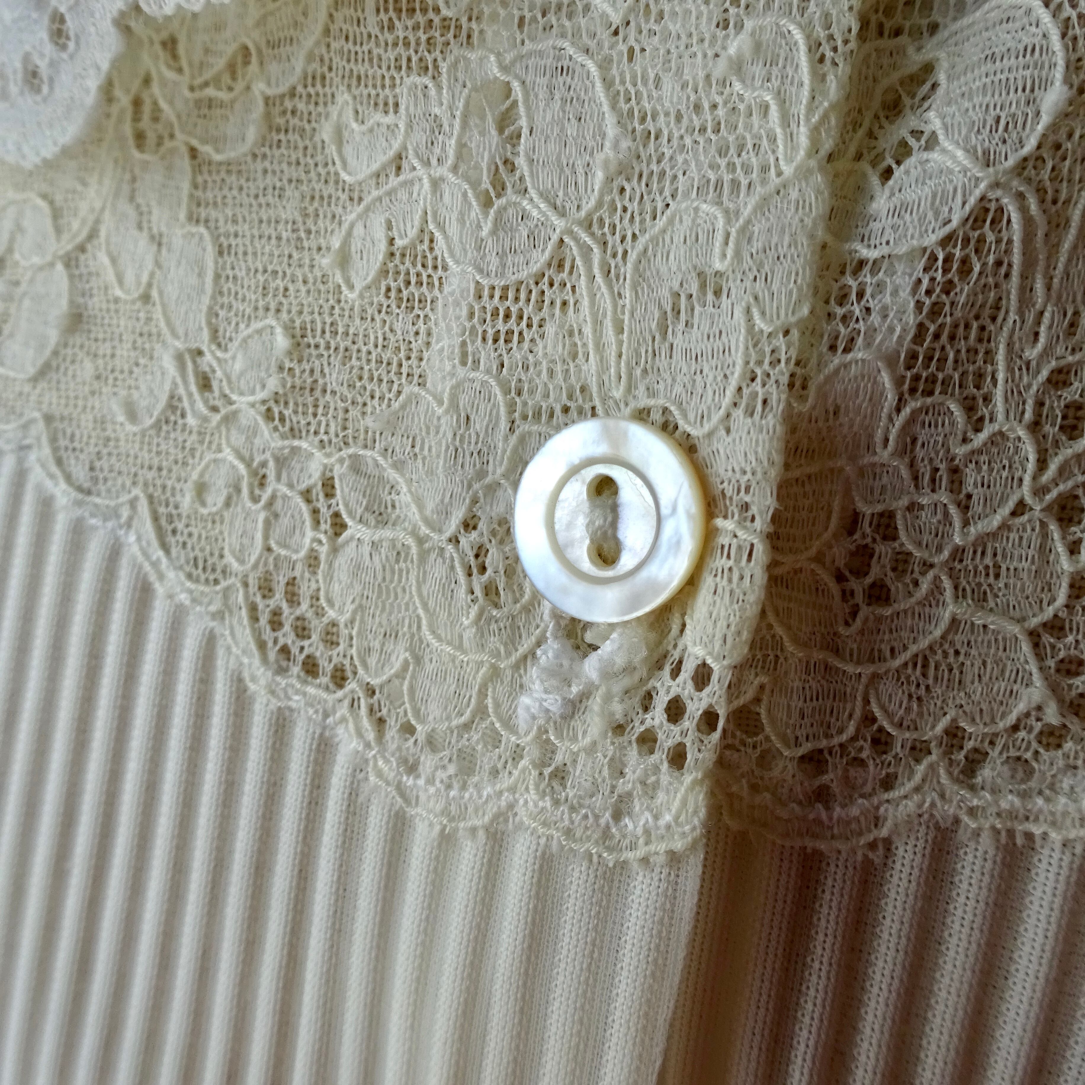 ギザギザに施された刺繍や恐らく後付けされた襟のスカラップ刺繍、手縫いの跡がとっても可愛らしいです。