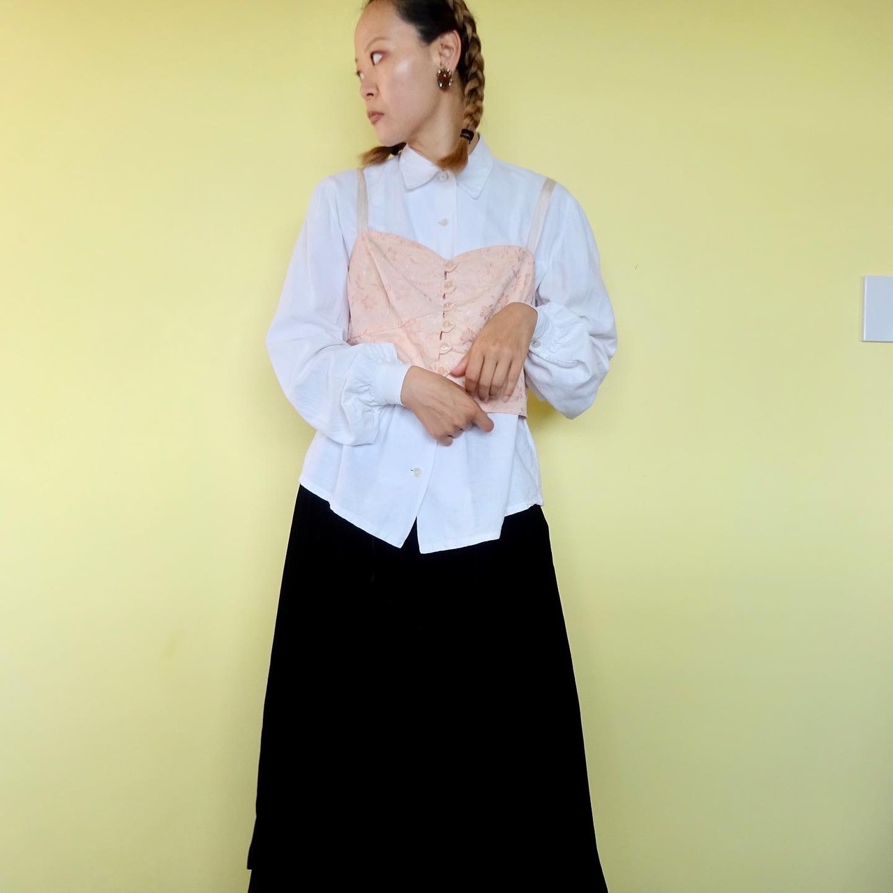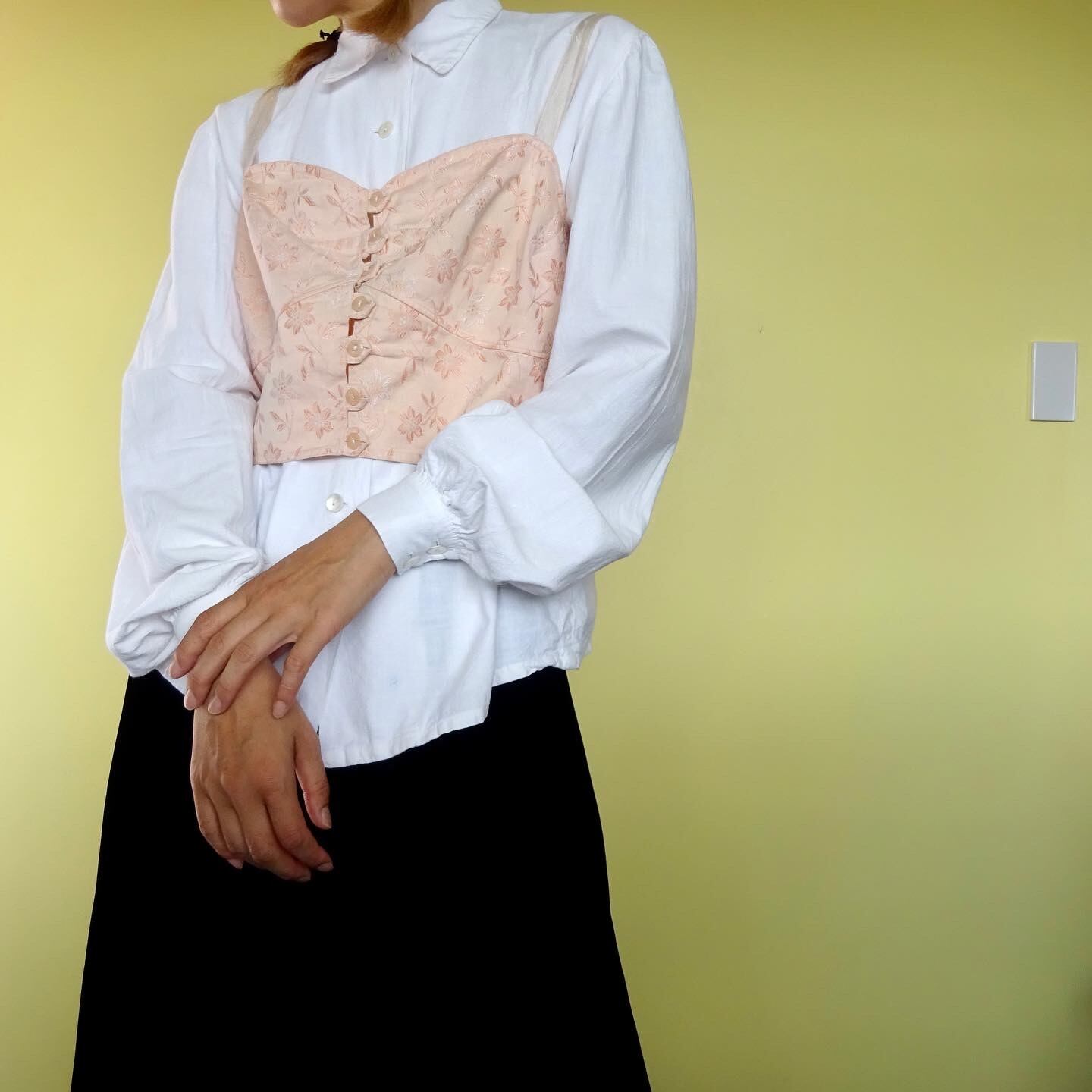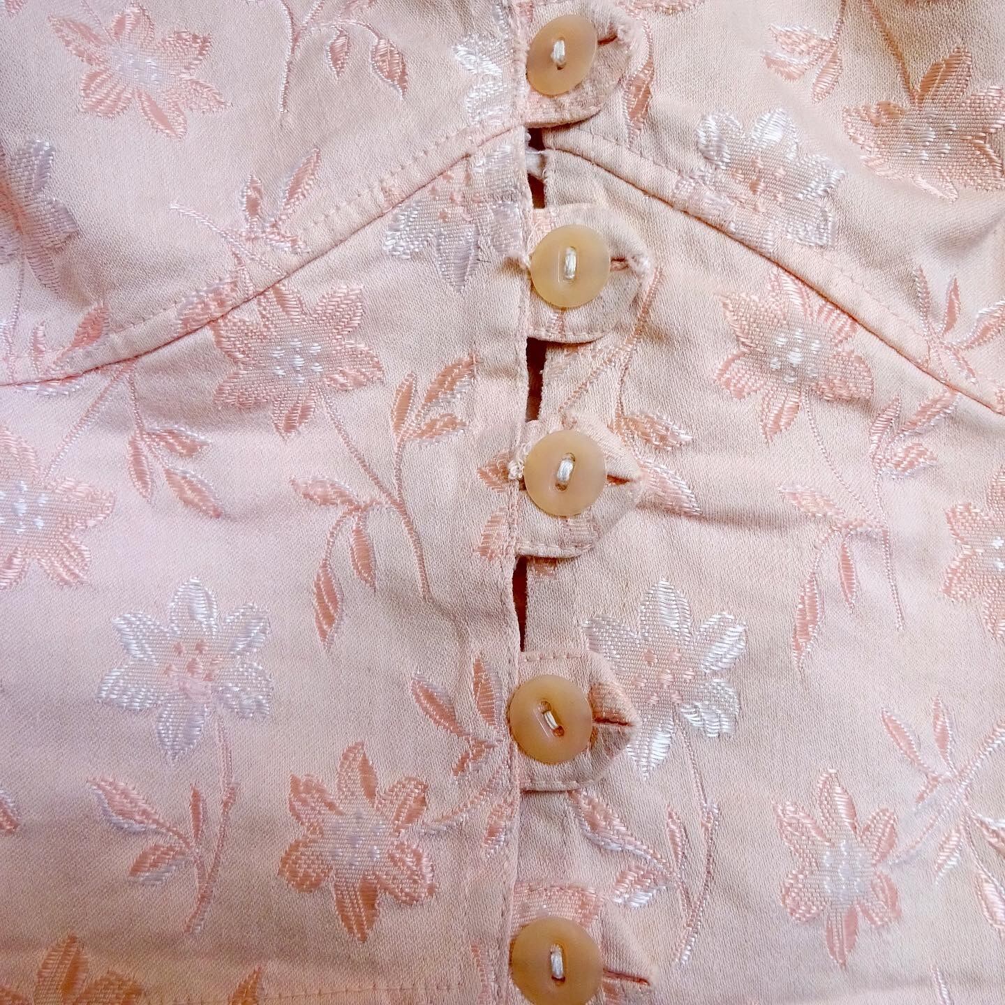 光沢のある糸で刺繍されたお花や、薄くて可愛い艶やかなボタン