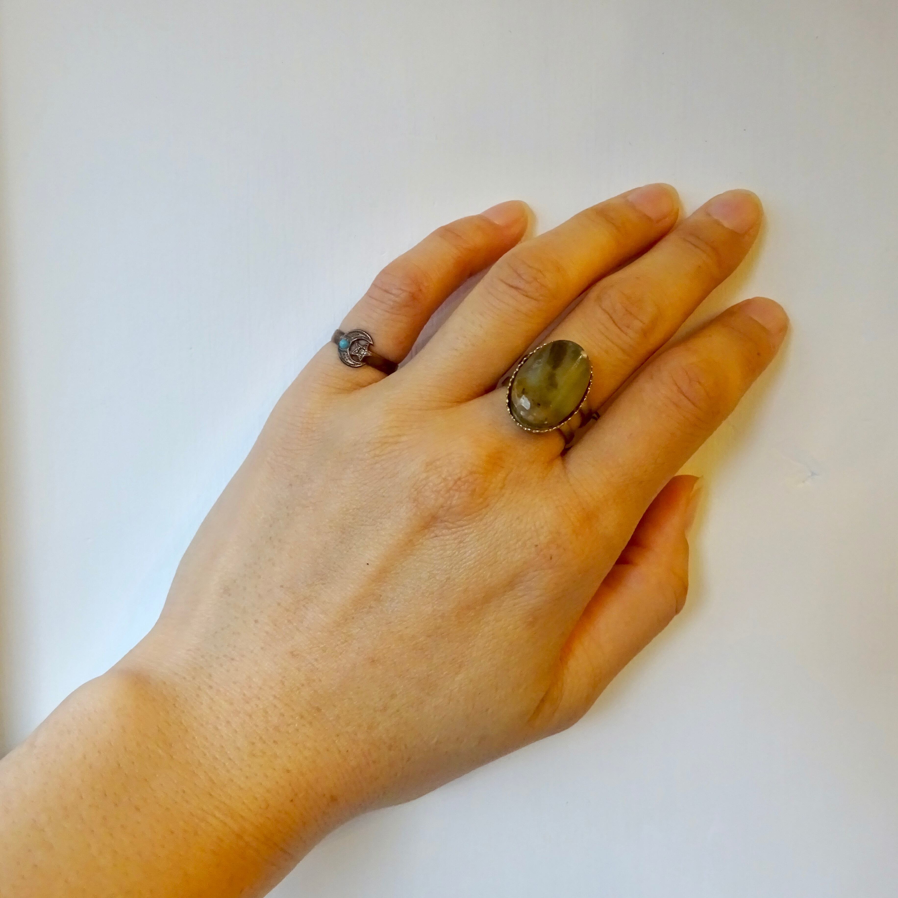 奥ゆかしい佇まいにターコイズカラーがパッと映える、存在感のあるリング