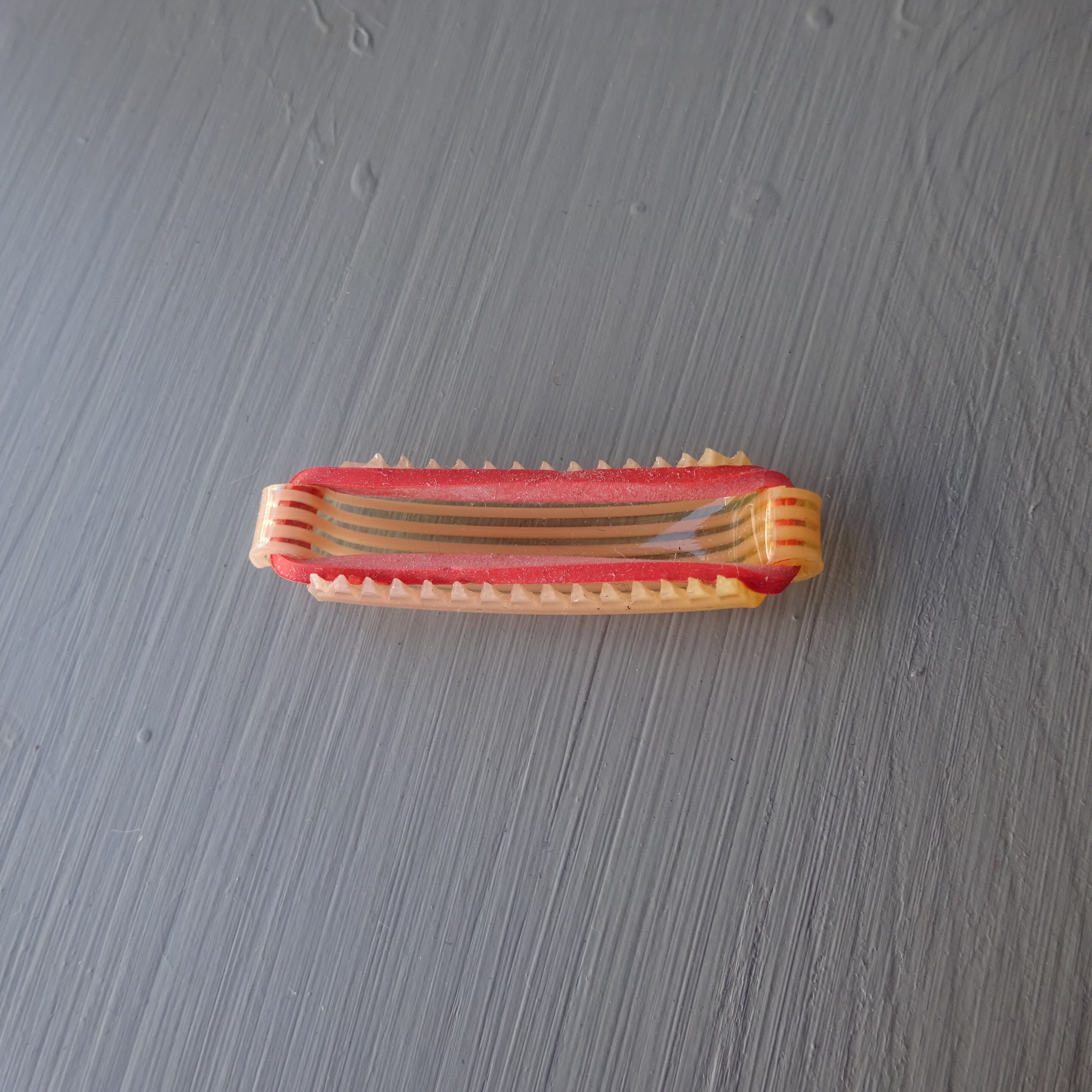 透明なプラスチックに柔らかい色合いのオレンジストライプが健康的な印象