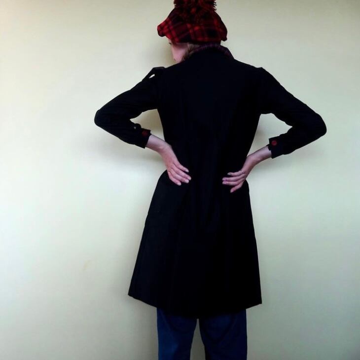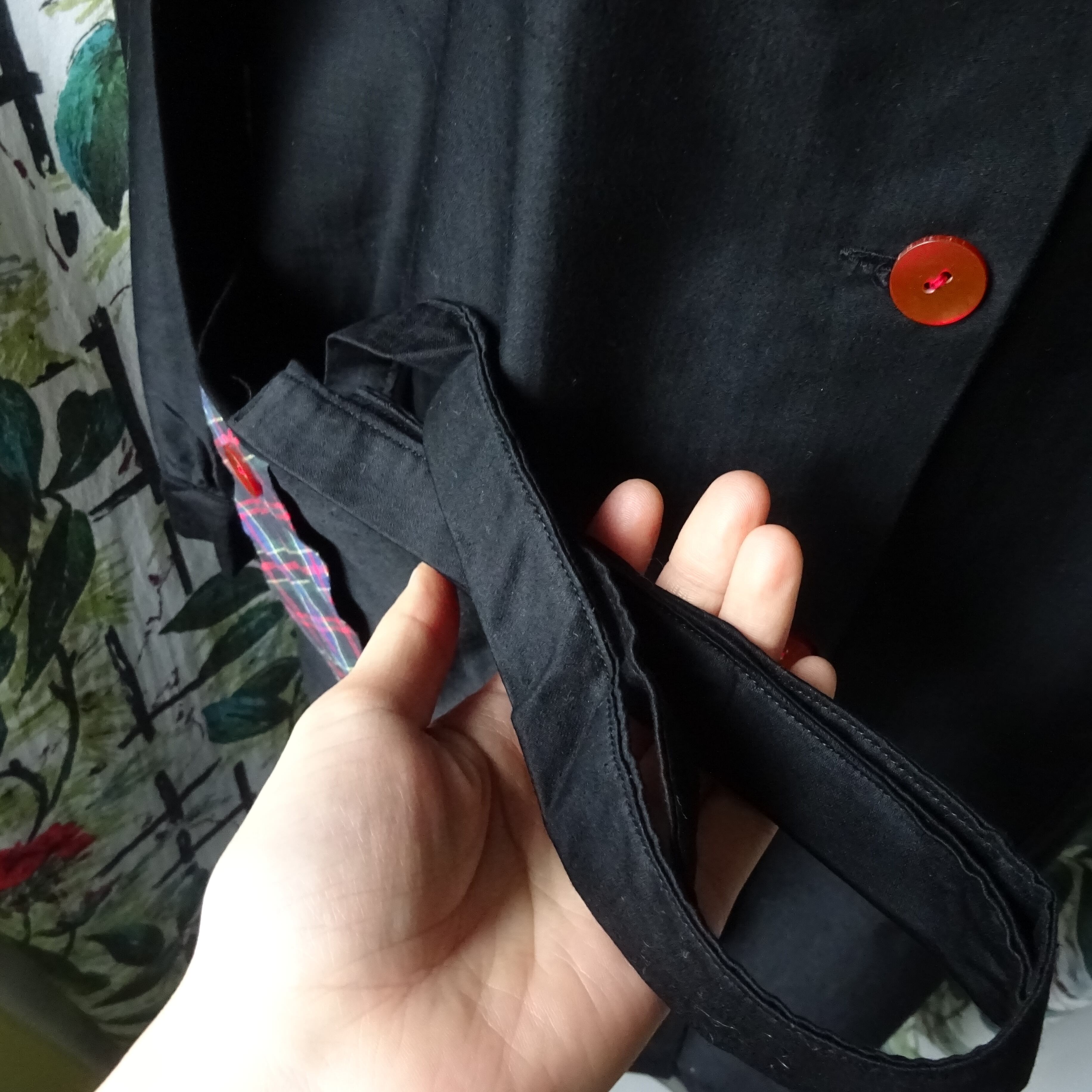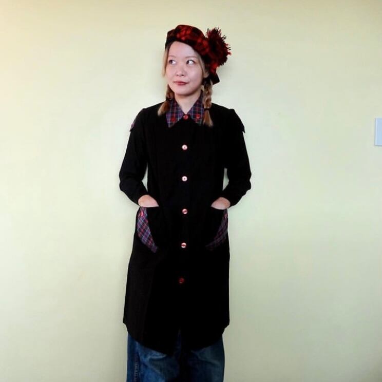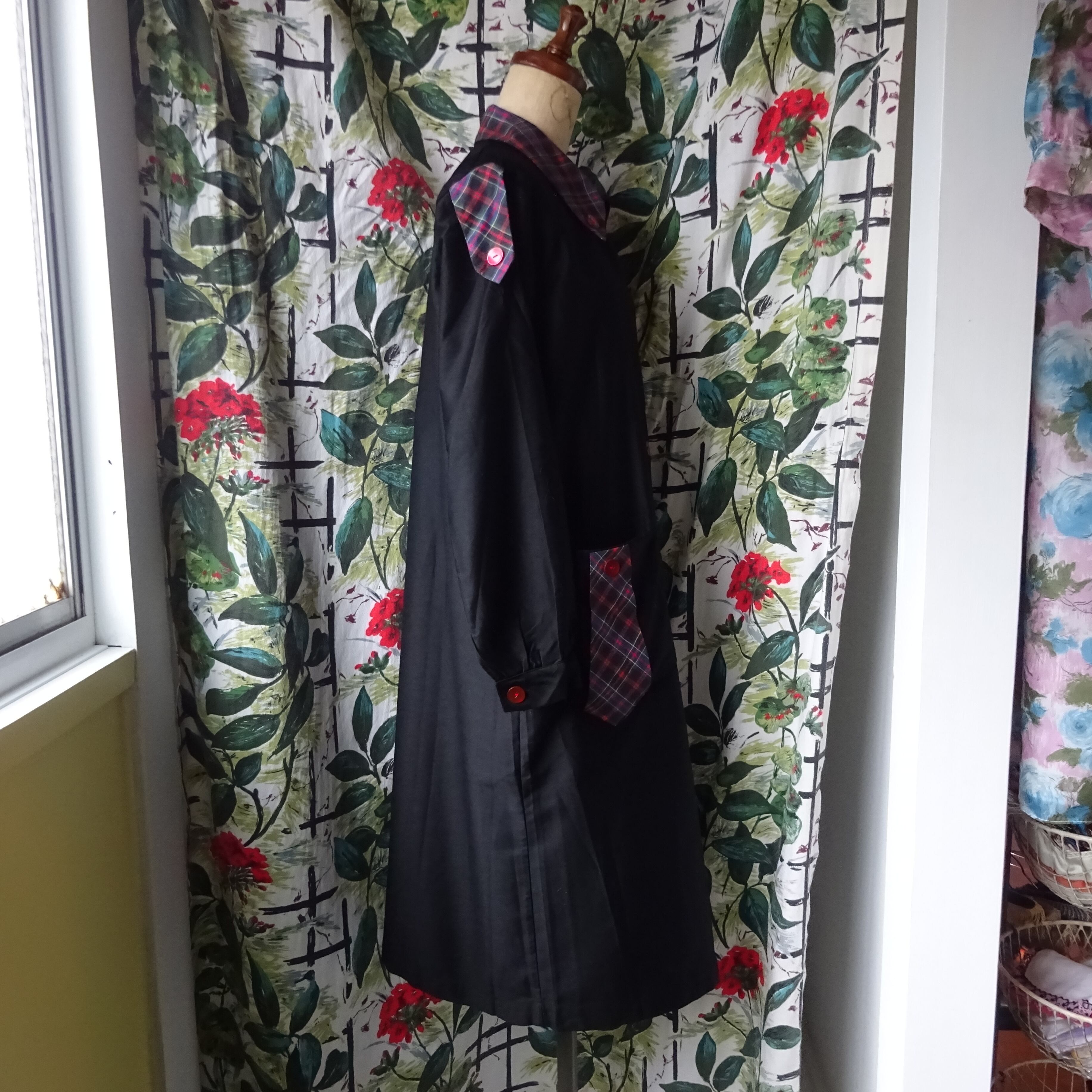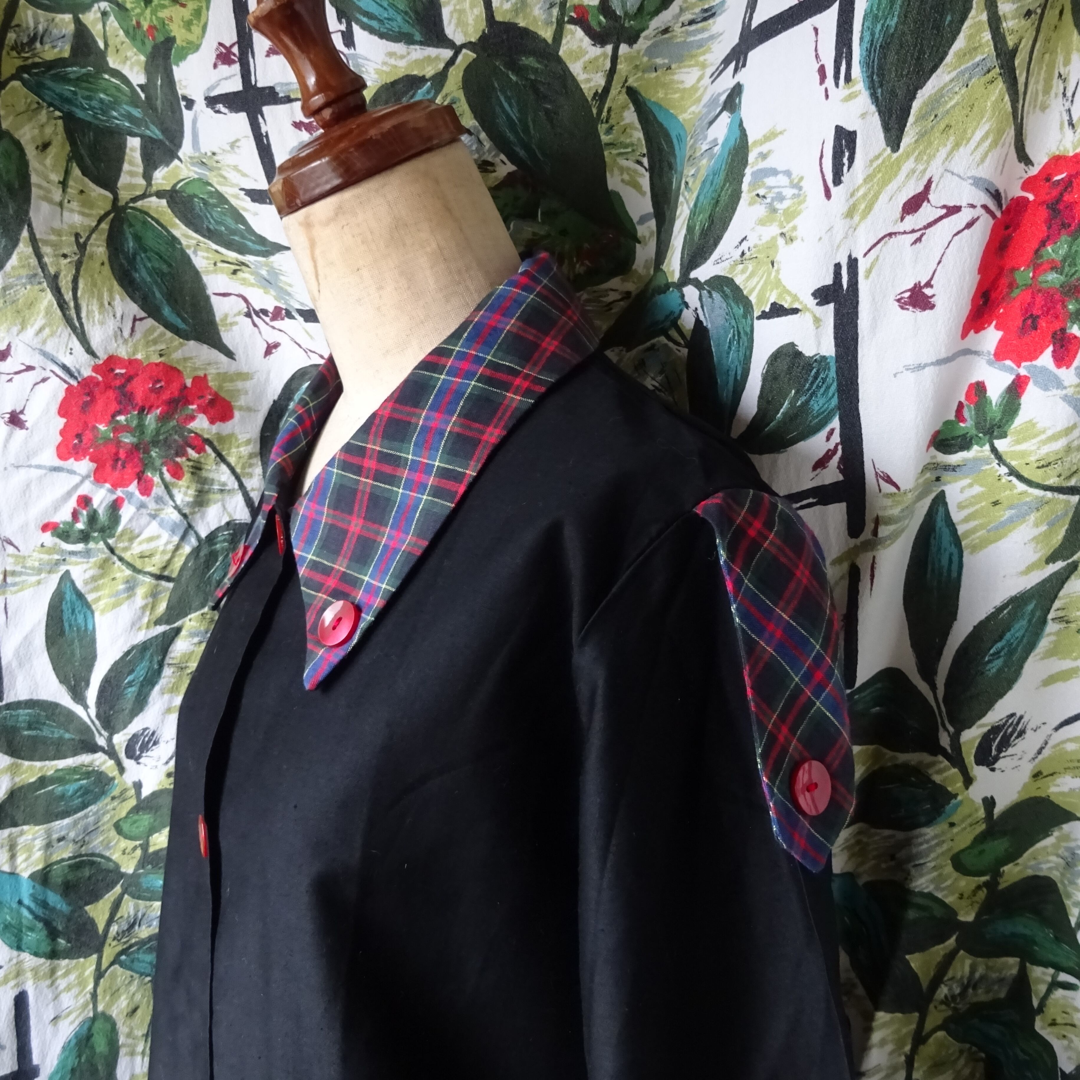 ヨーロッパでは絵描きさんや家事全般をする時に着用するアトリエコート、なので、素朴なデザインが多いのですが、こちらはチェックが効いたファッショナブルなデザインになってます。