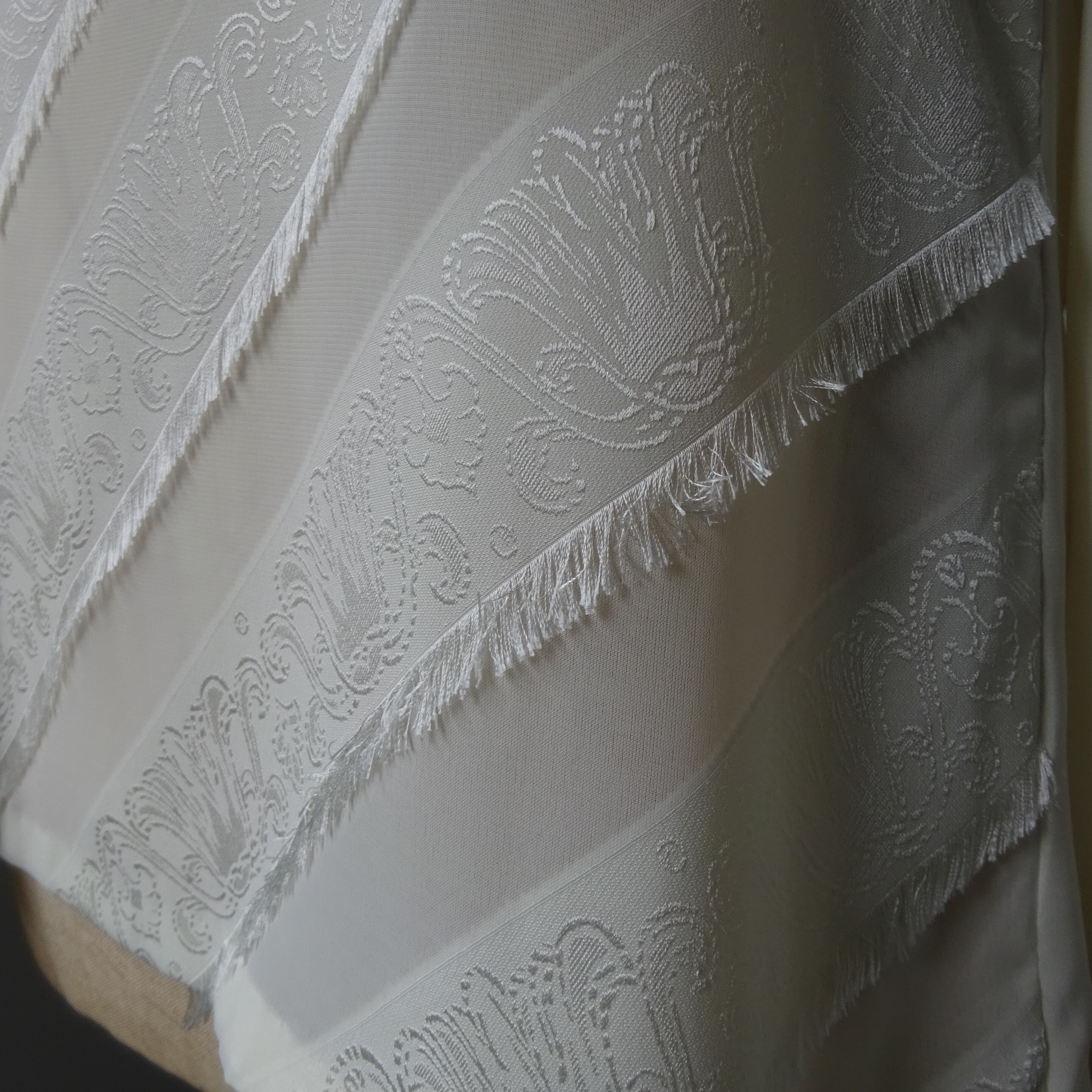 透け感と光沢、フリンジの組み合わせが絶妙なバランスで、このデザインでしか出せない世界観があります。