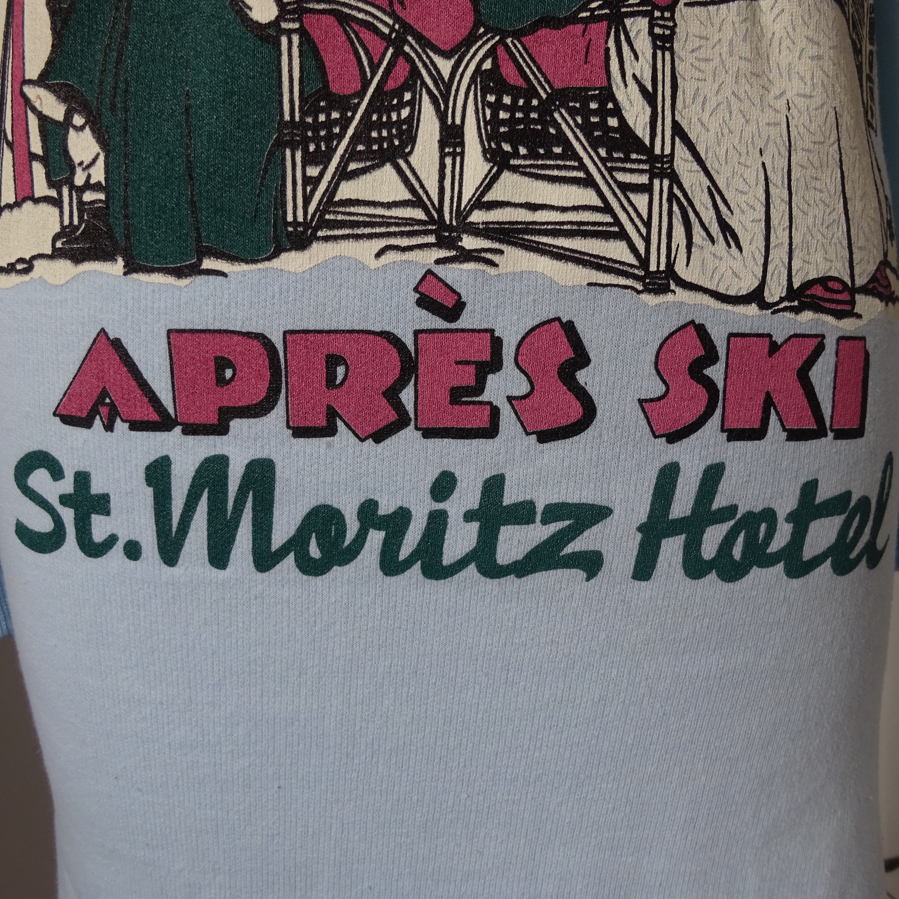 Après ski St.Moritz hotel 訳すと、スキーの後はサンモリッツホテルへ という意味