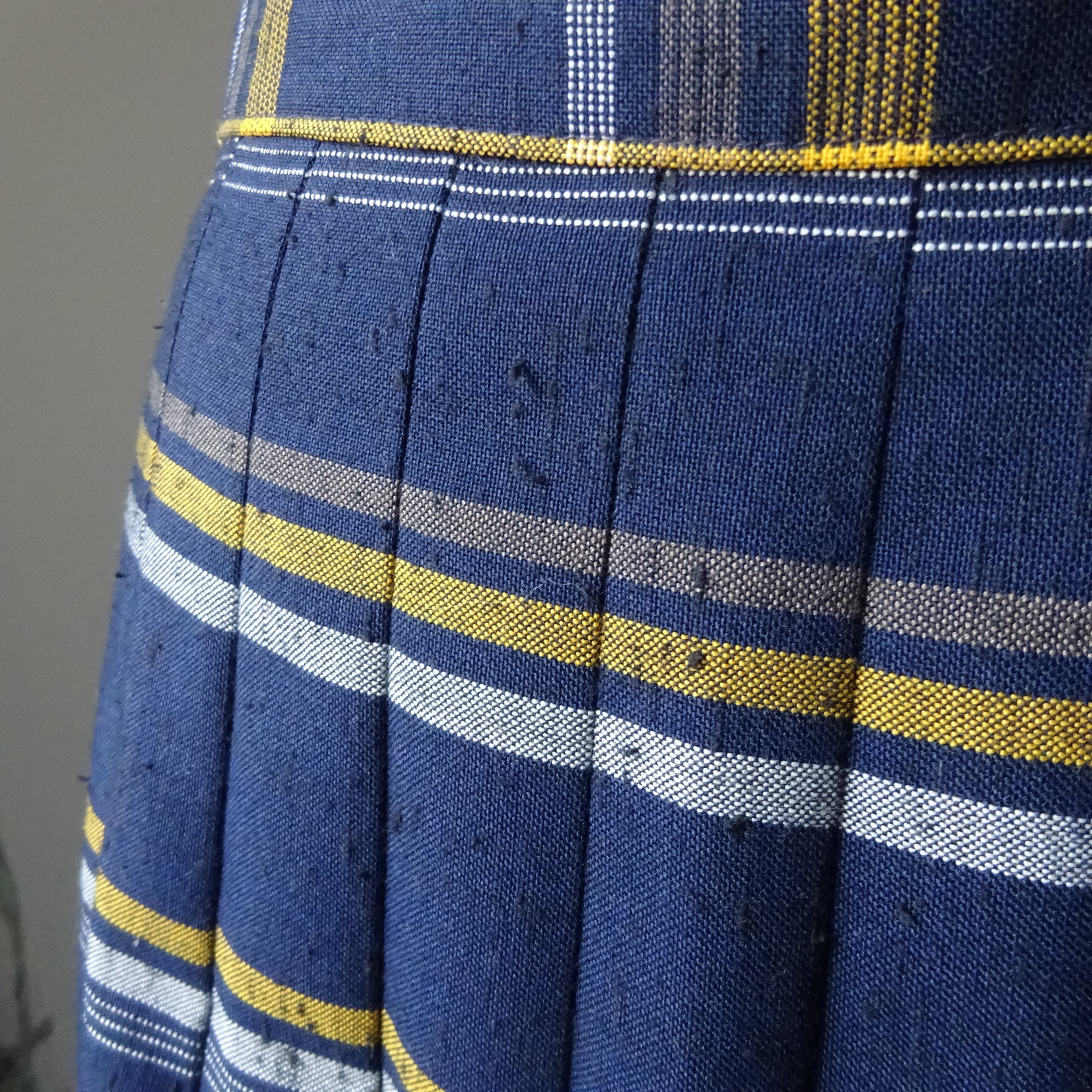 上品な色合いと、静止してるとボーダーに見えますが、動きが出るときちんとタータンチェックになるプリーツの入り方がとても素敵です。
