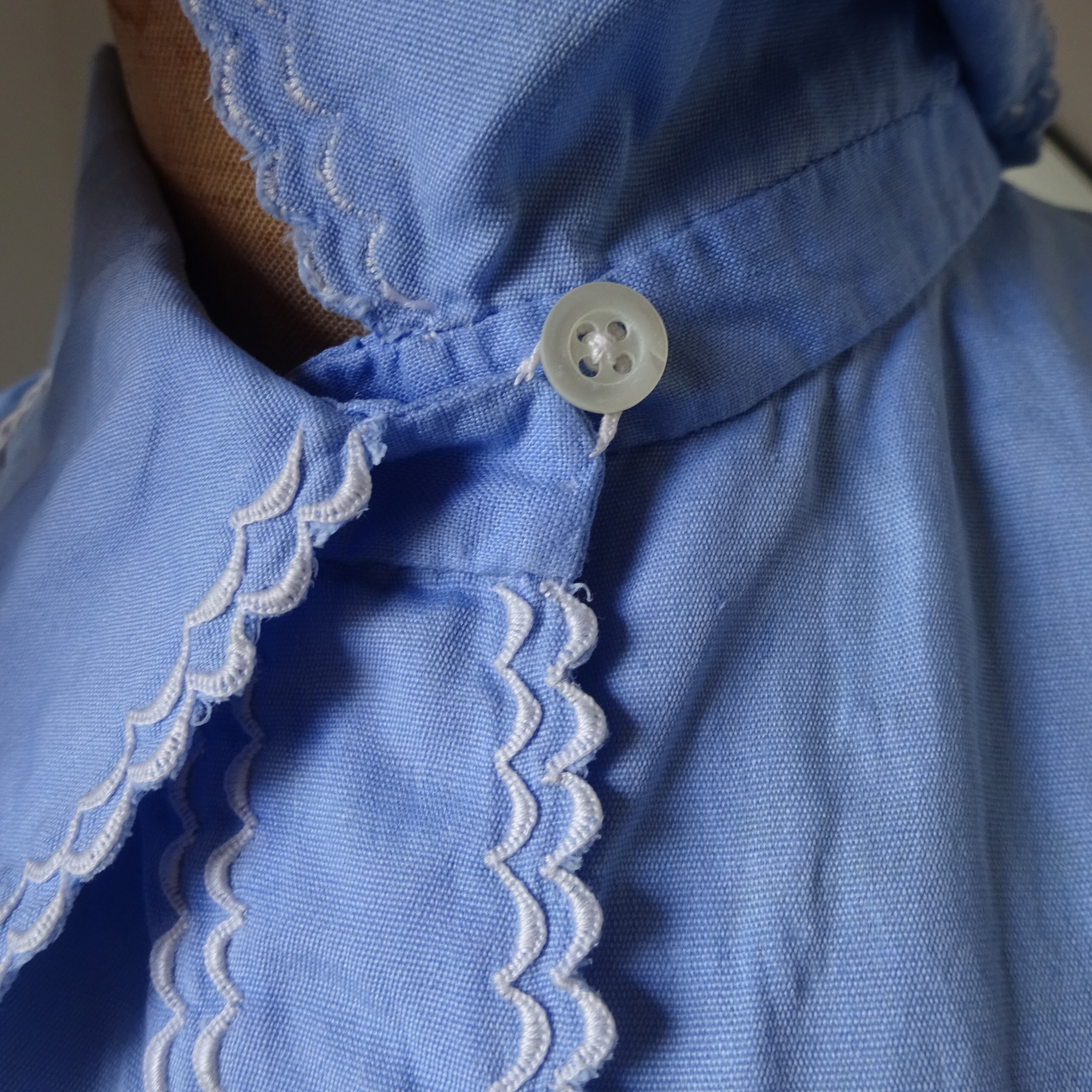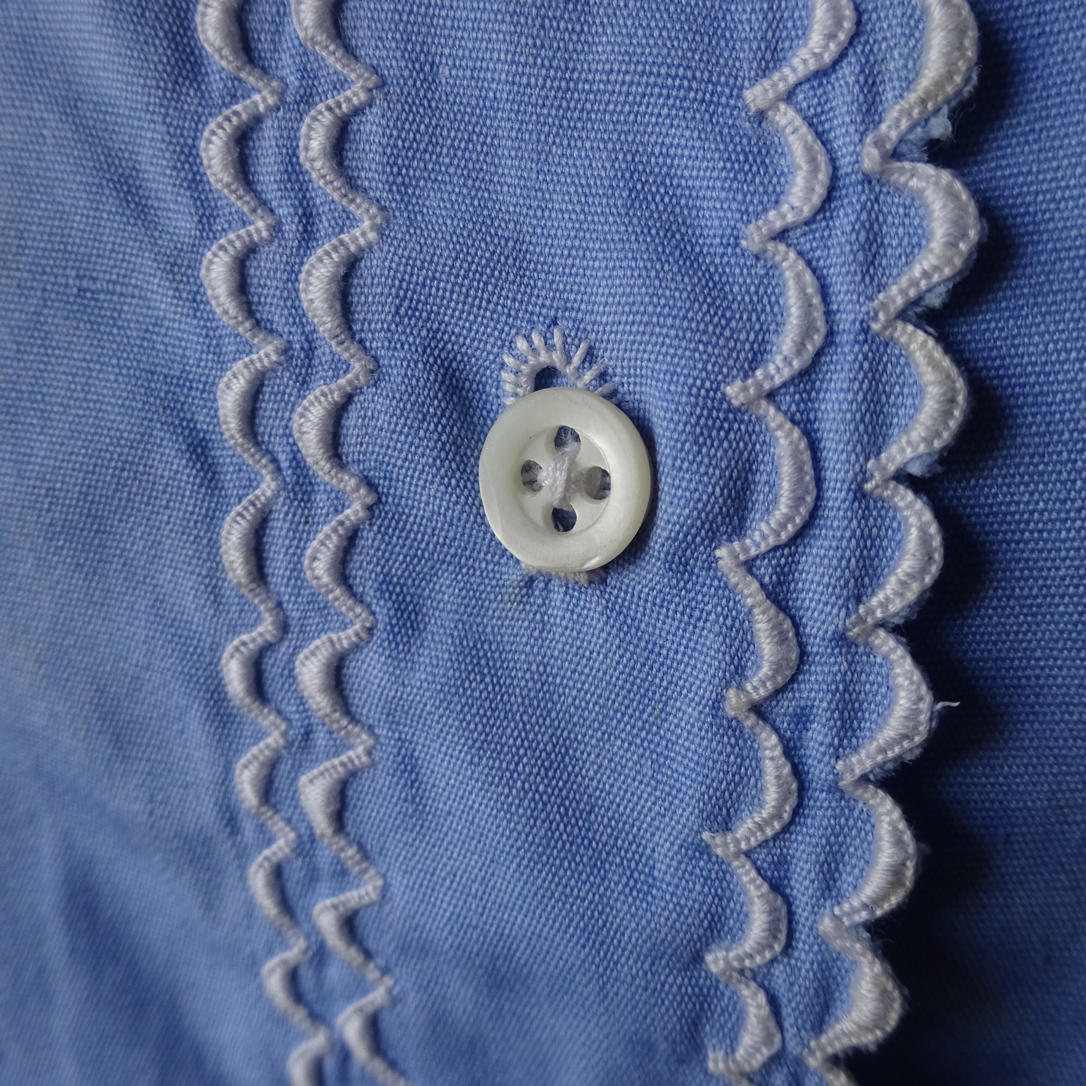 ヴィンテージならではの絶妙な水色と、所々手縫いで仕付けられたとても素敵なシャツです。