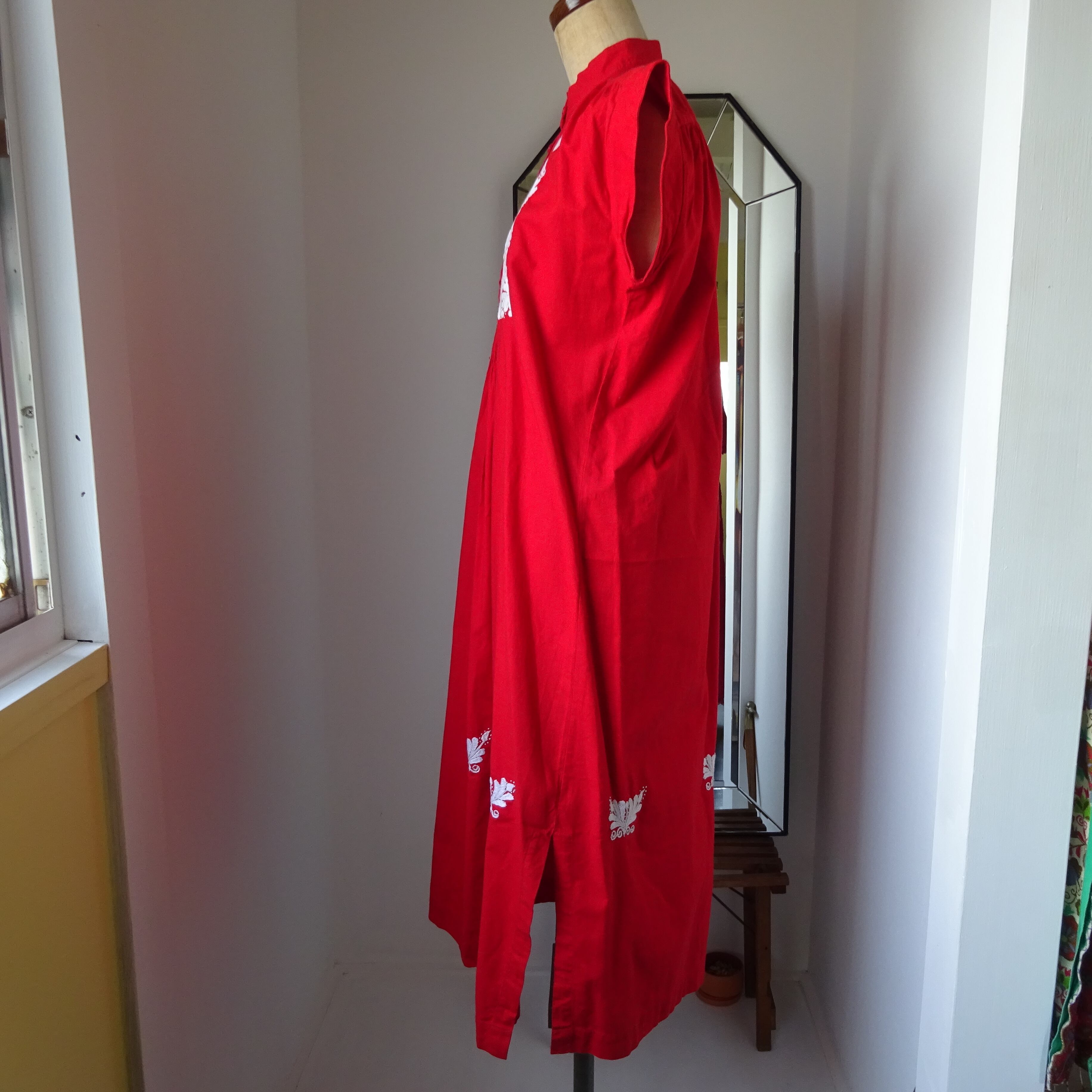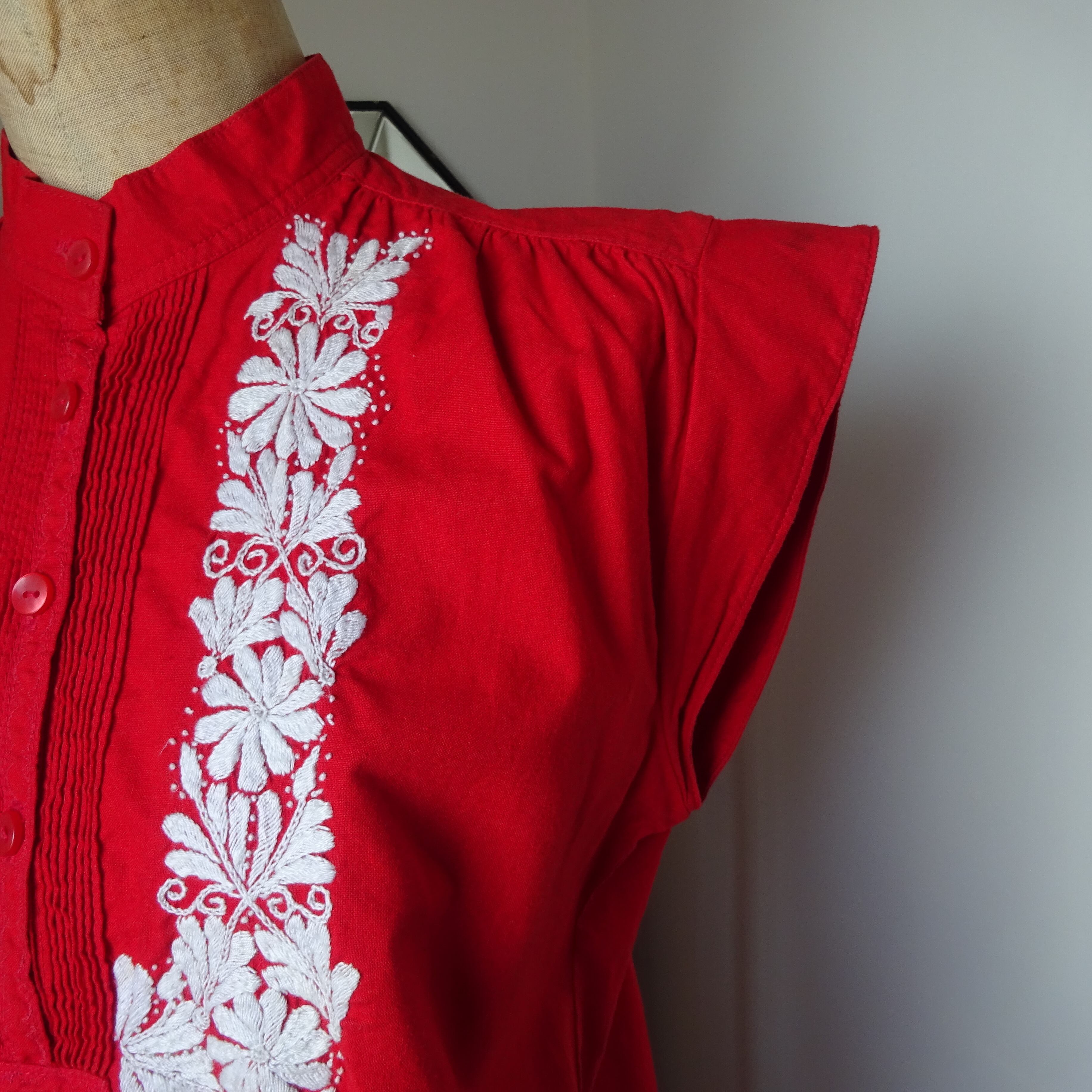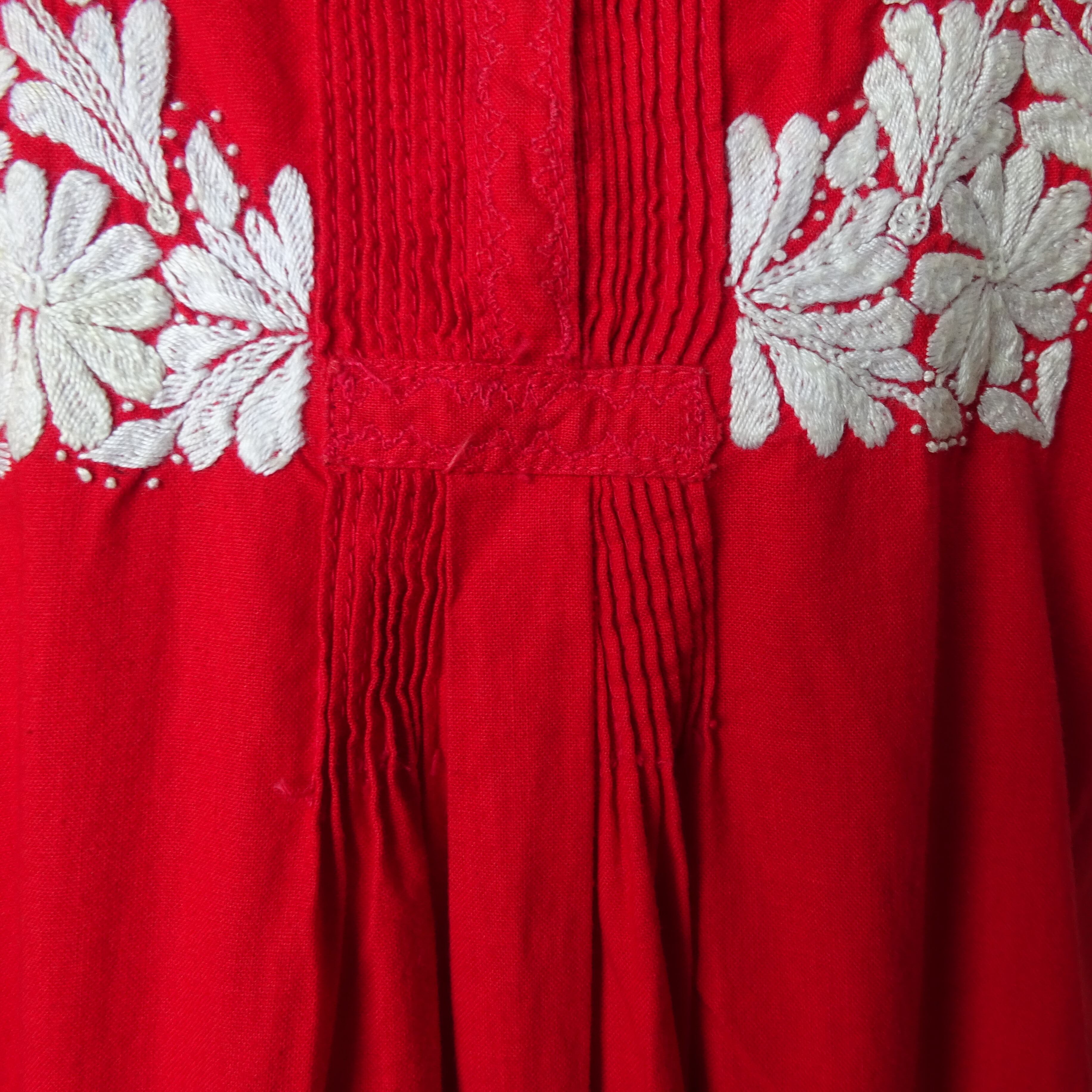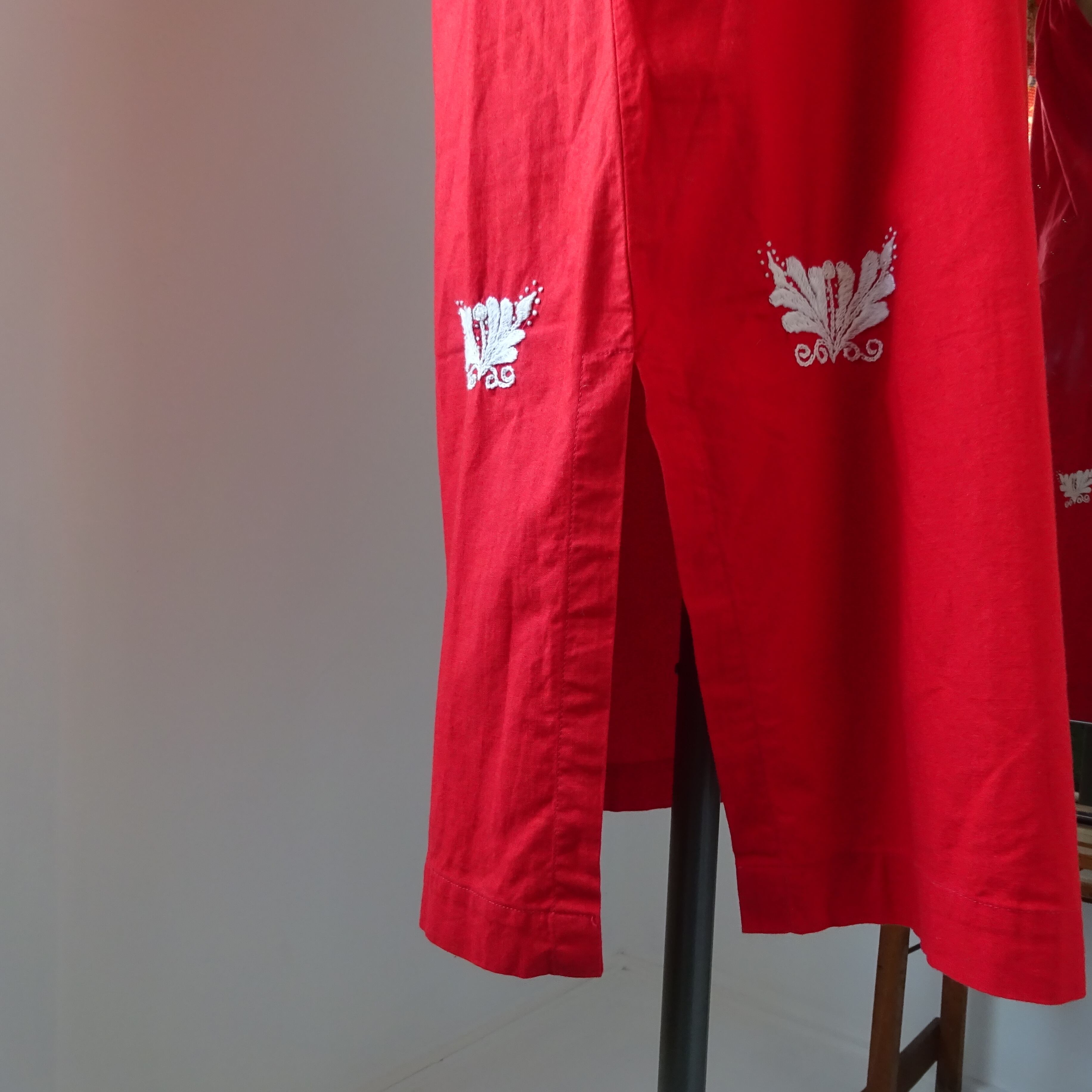 とても鮮やかなパッと目を惹く赤、丁寧に手刺繍された花柄。