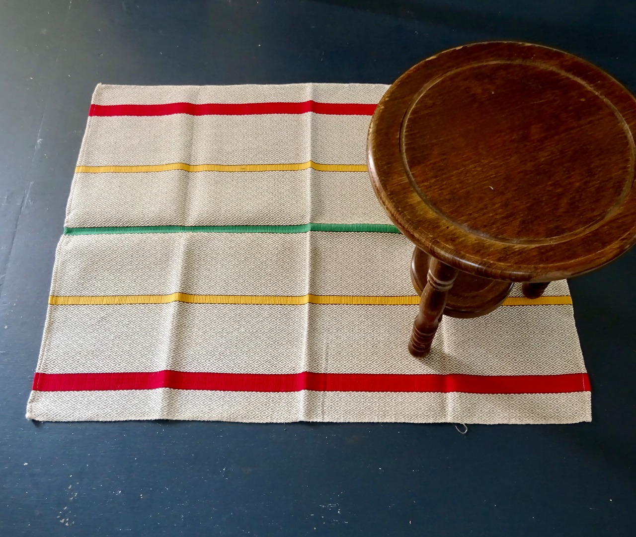 表記がないので不明ですが恐らく麻とコットンの混合で、ランチョンマットやマルチに使える丈夫な布です。