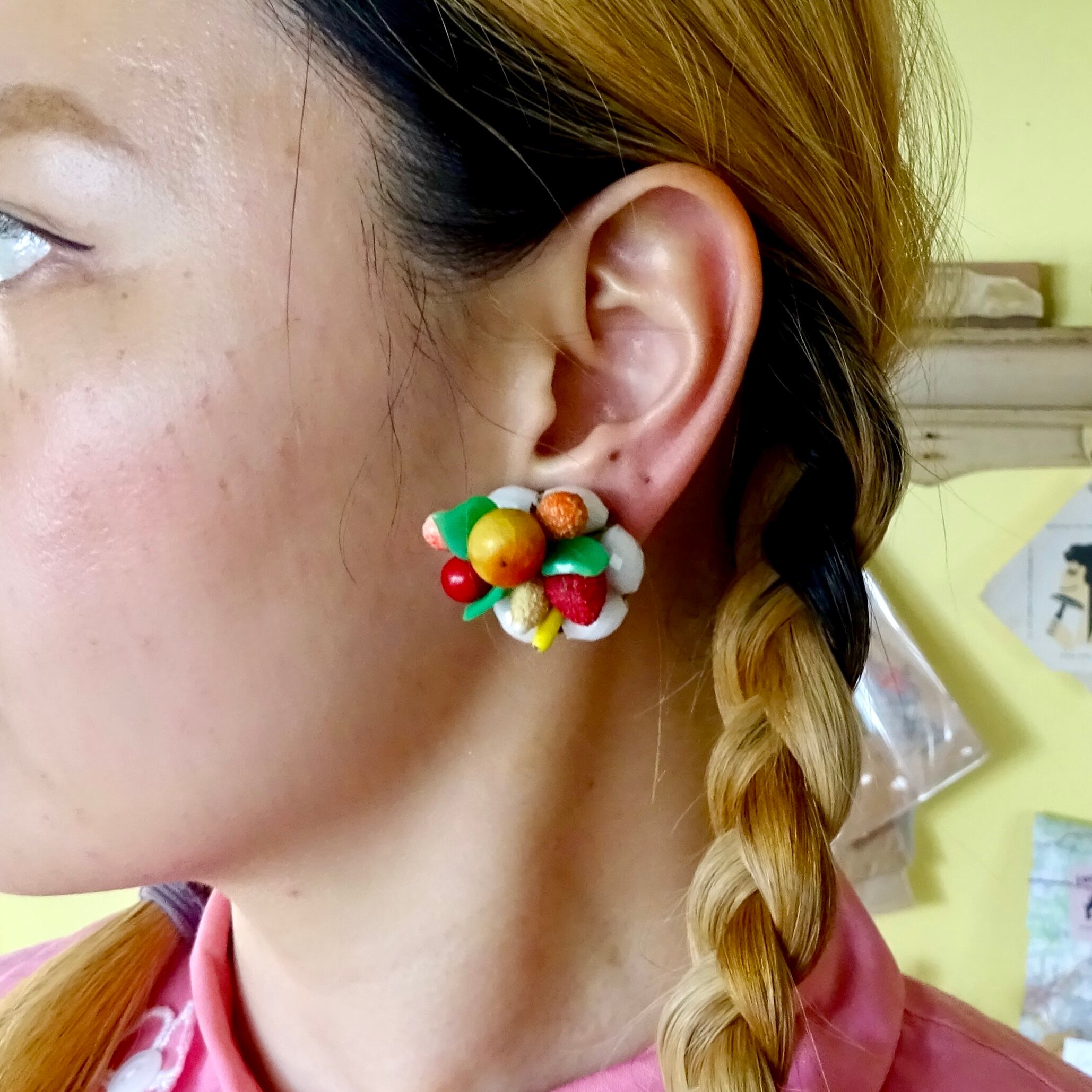 色鮮やかなフルーツがびっしり付いたイヤリング