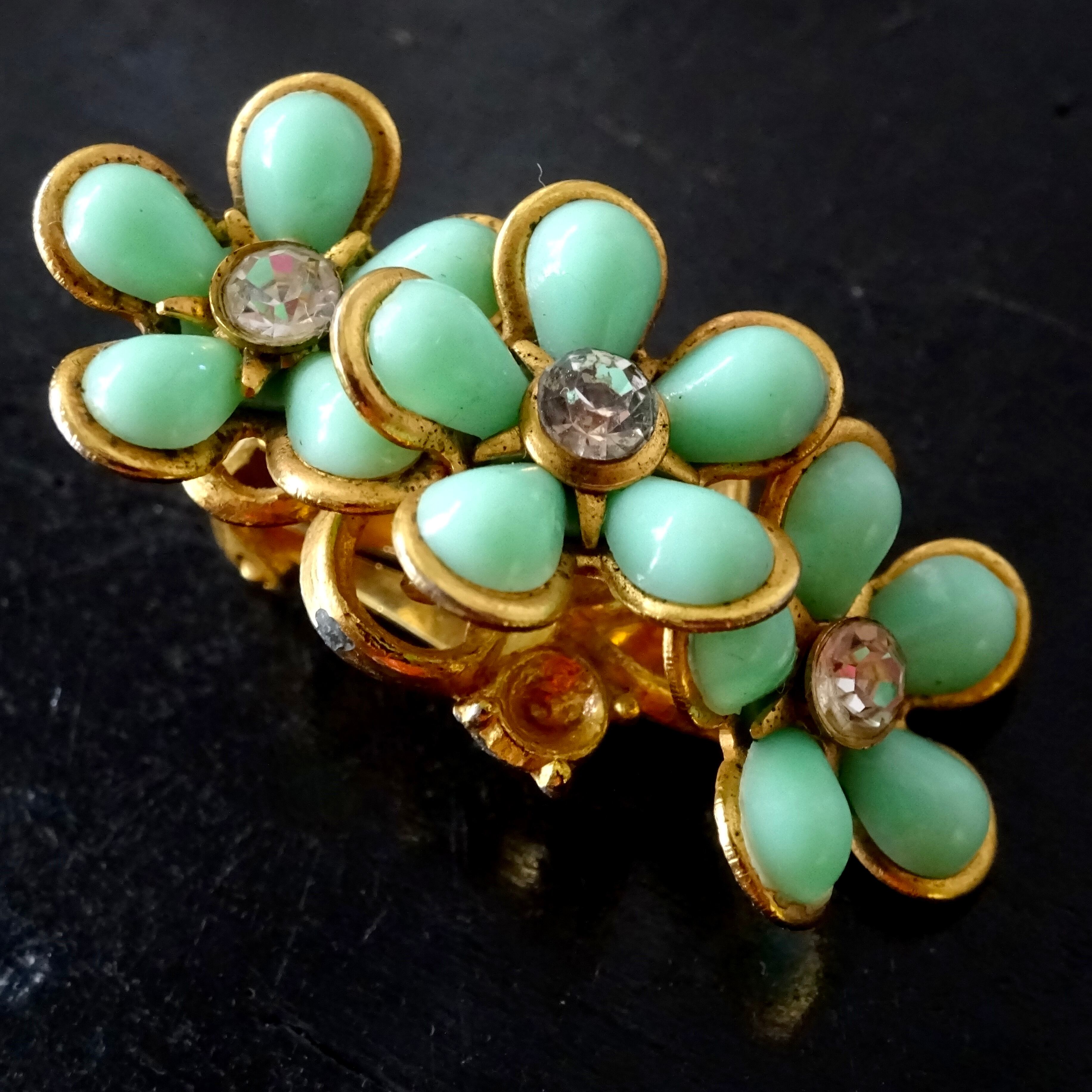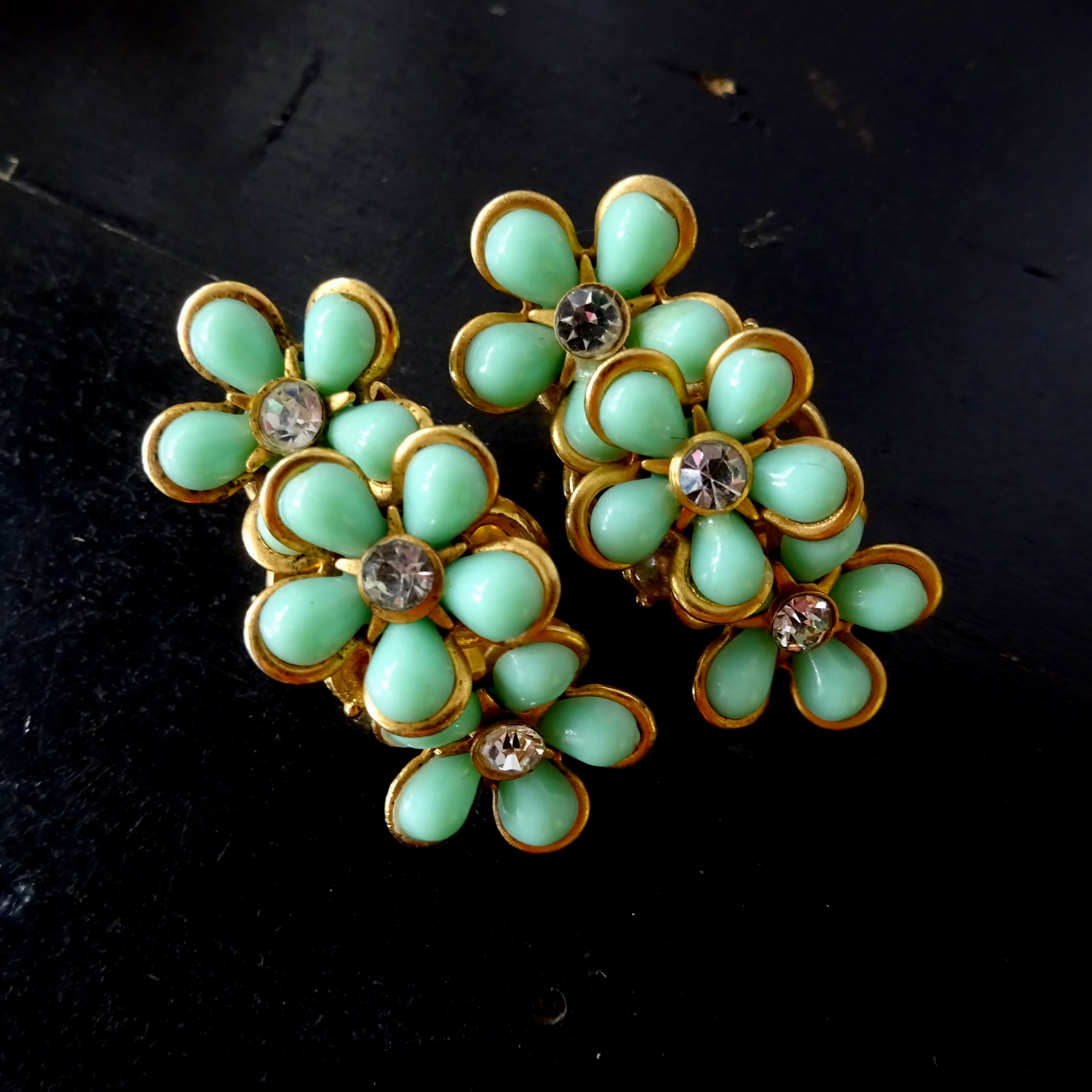 ミントグリーンのぷっくりしたお花がぎゅっと並んだ大振りのイヤリング