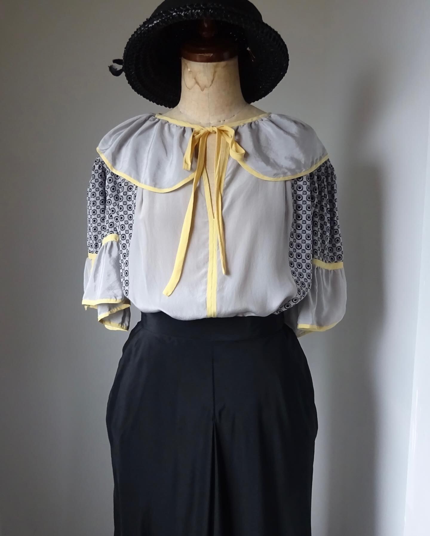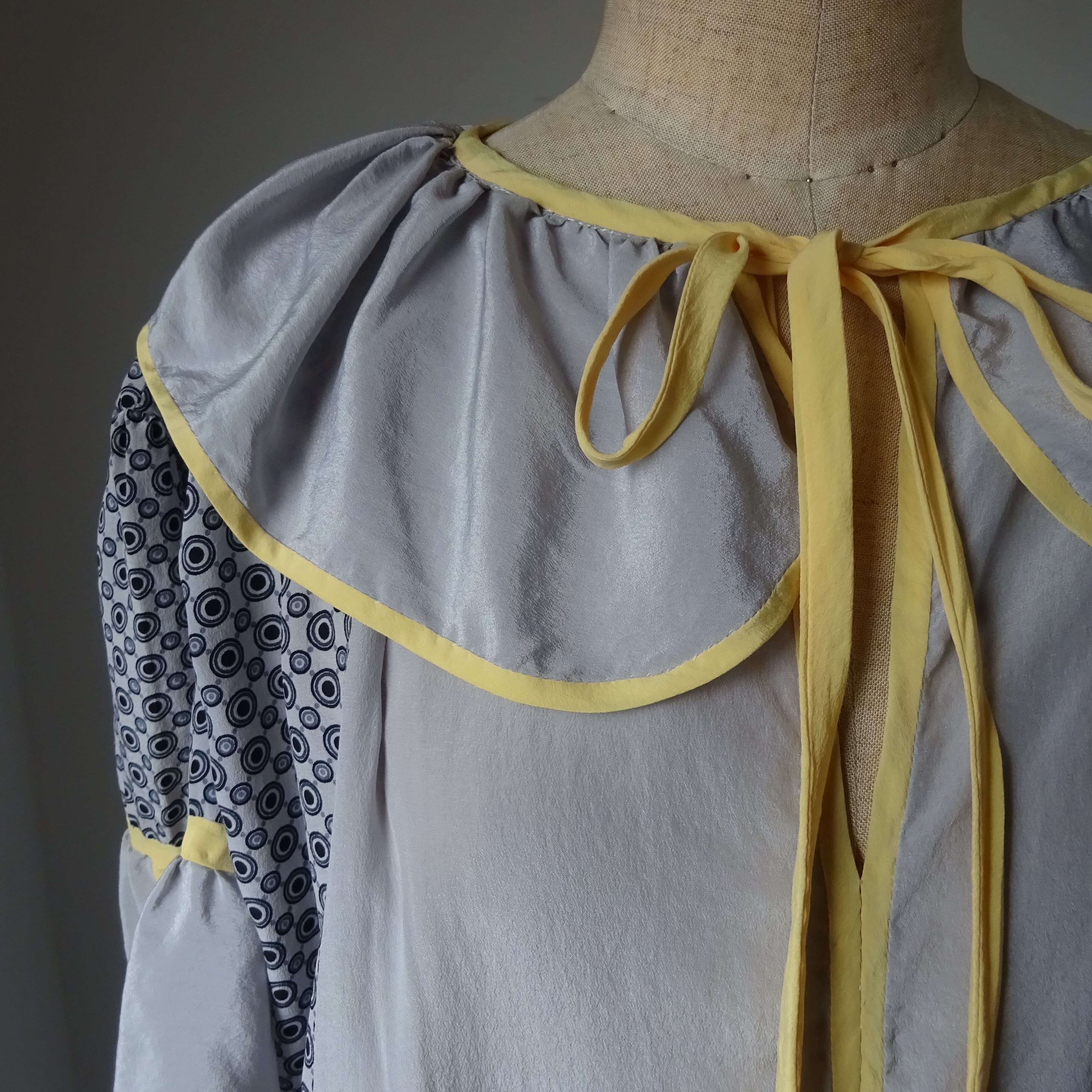 年代は不明ですが、丁寧な手仕事が見られるヴィンテージのシルクシャツ