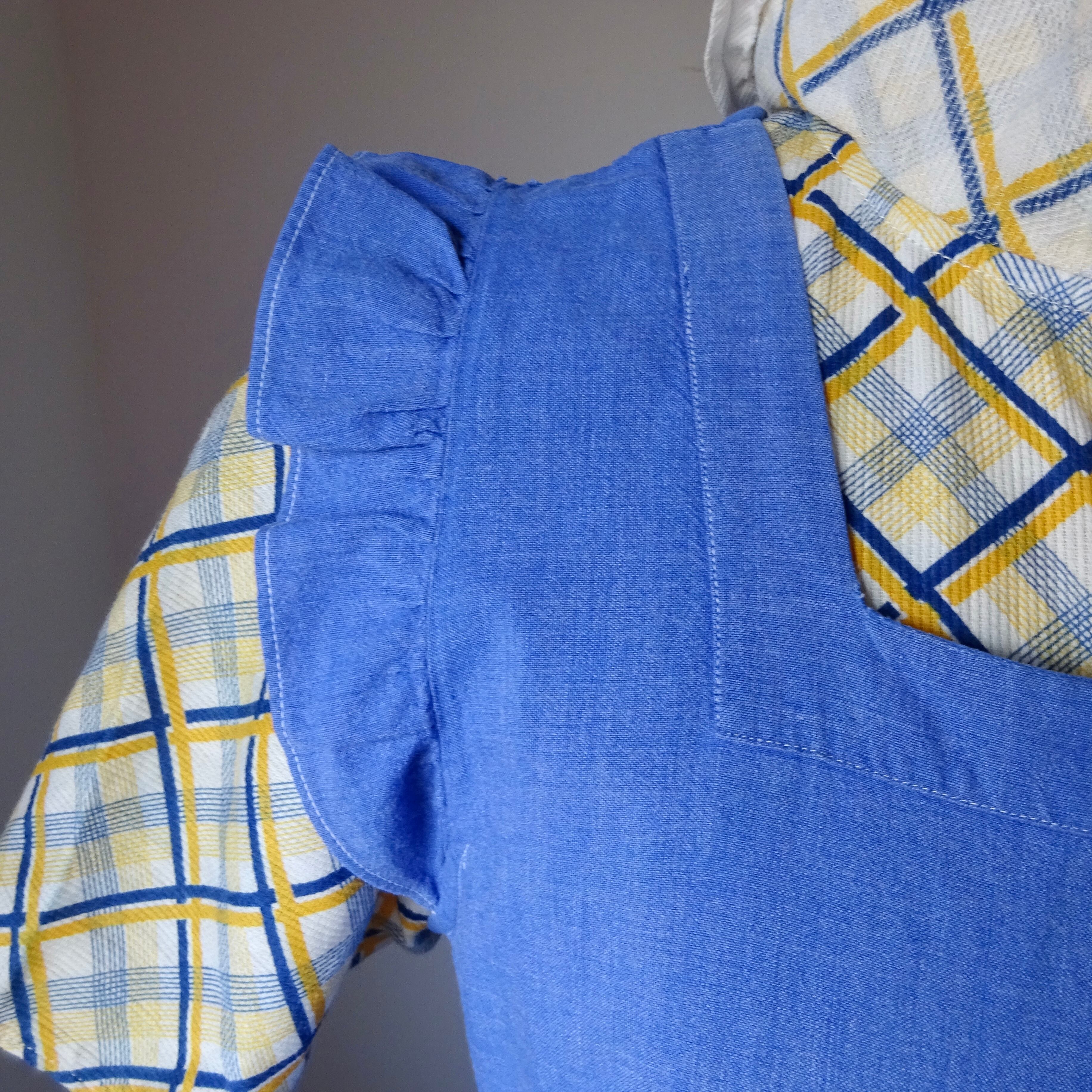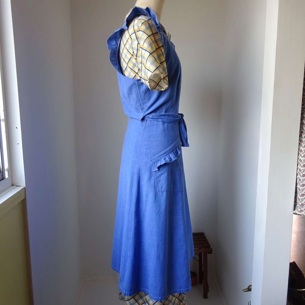エプロンにしては凝ったパターンで、まるでワンピースを着ているような一着。