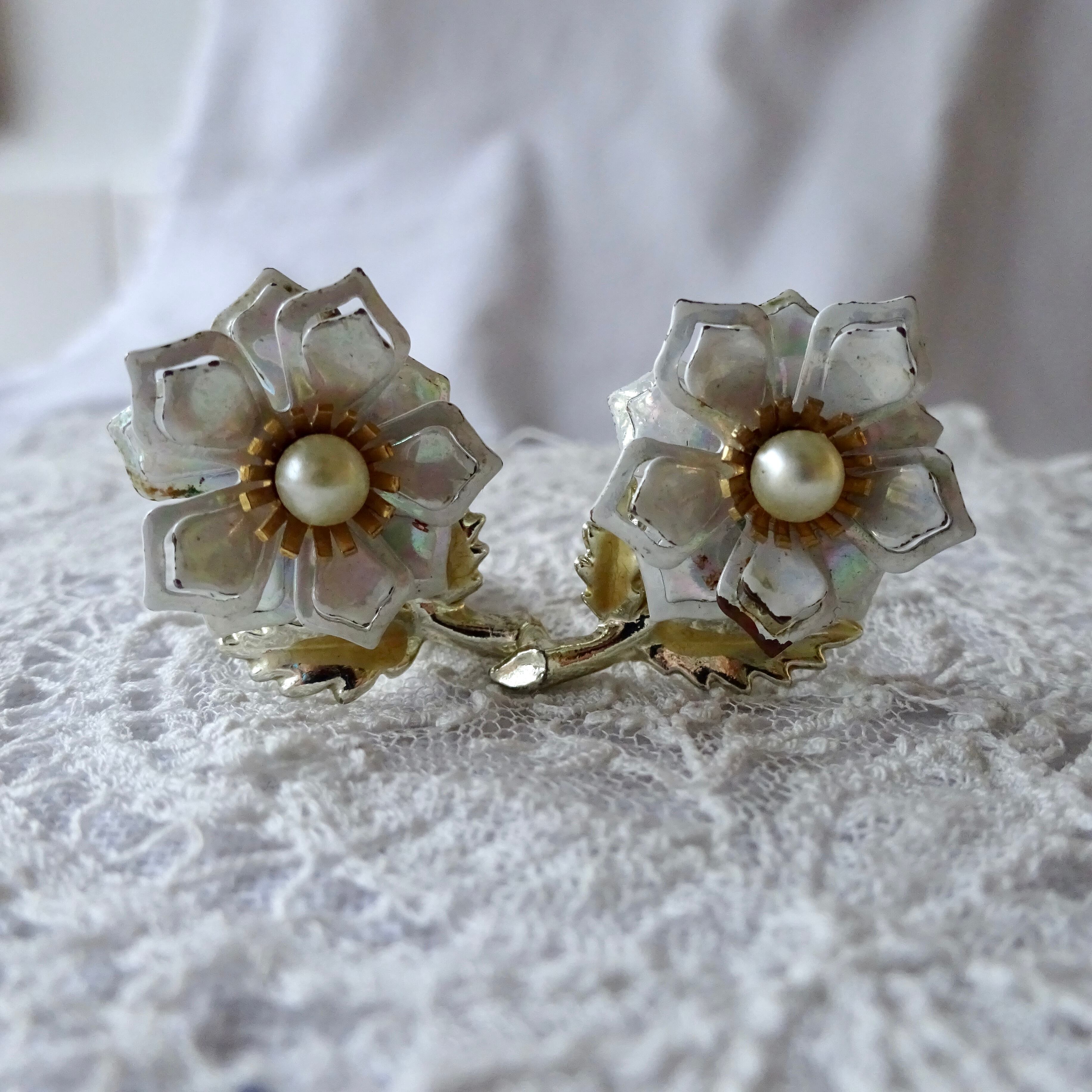 少しピンク掛かったオーロラカラーに光る涼しげなイヤリング
