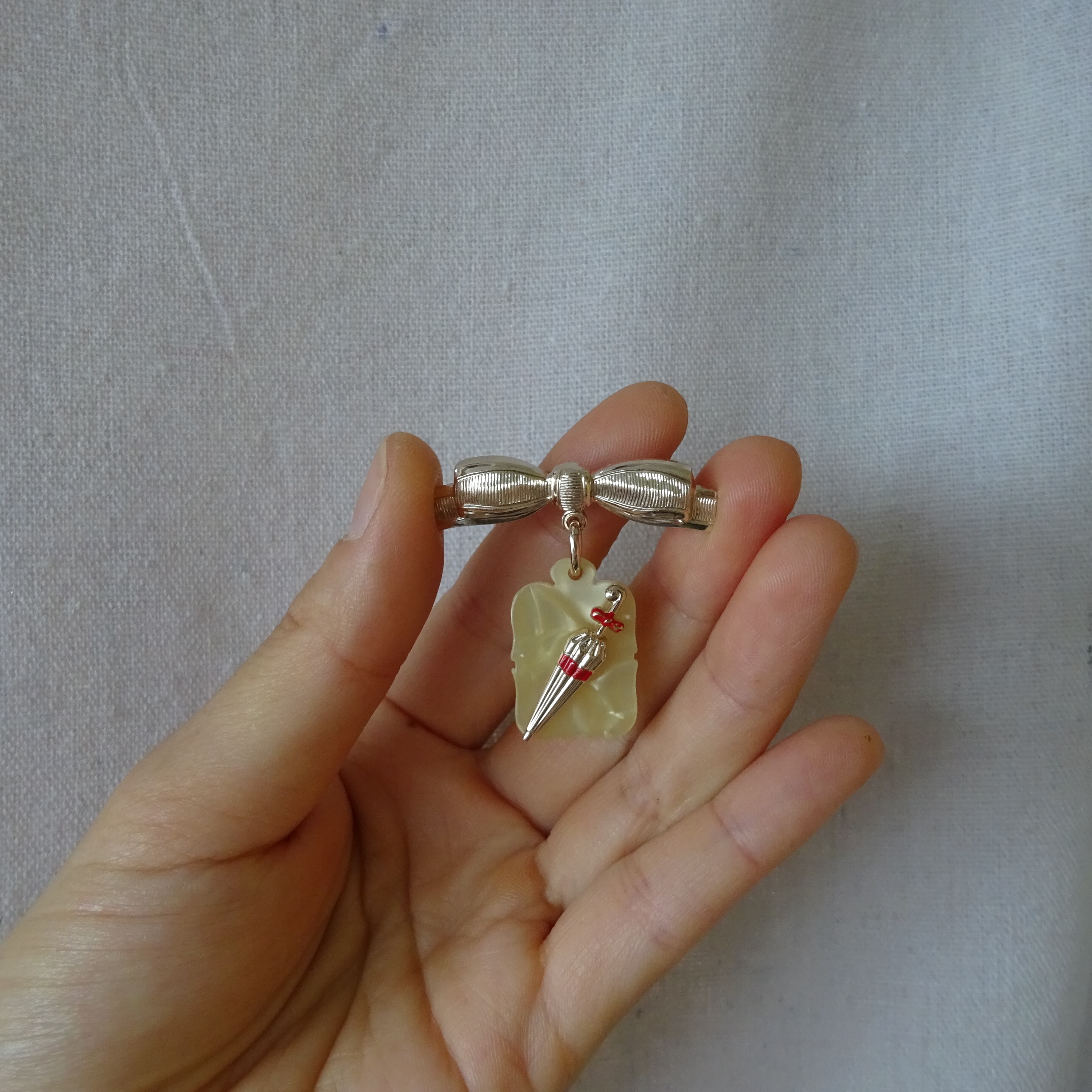ルーサイトと留め具以外はプラスチックですが、チープかとキッチュな雰囲気が堪らないデザイン