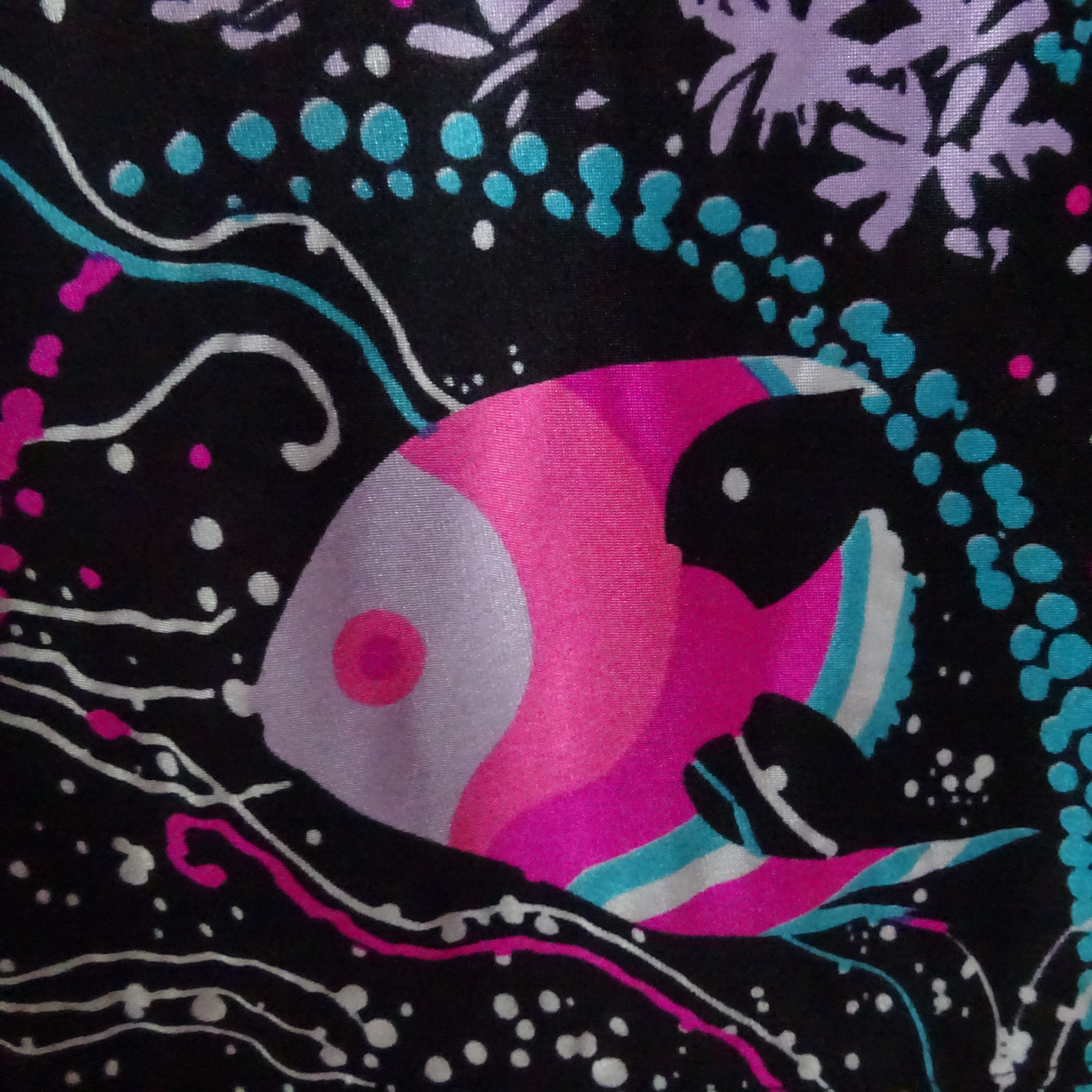 ポップなお魚と海藻やお花がとても華やかで、目を奪われる一枚。