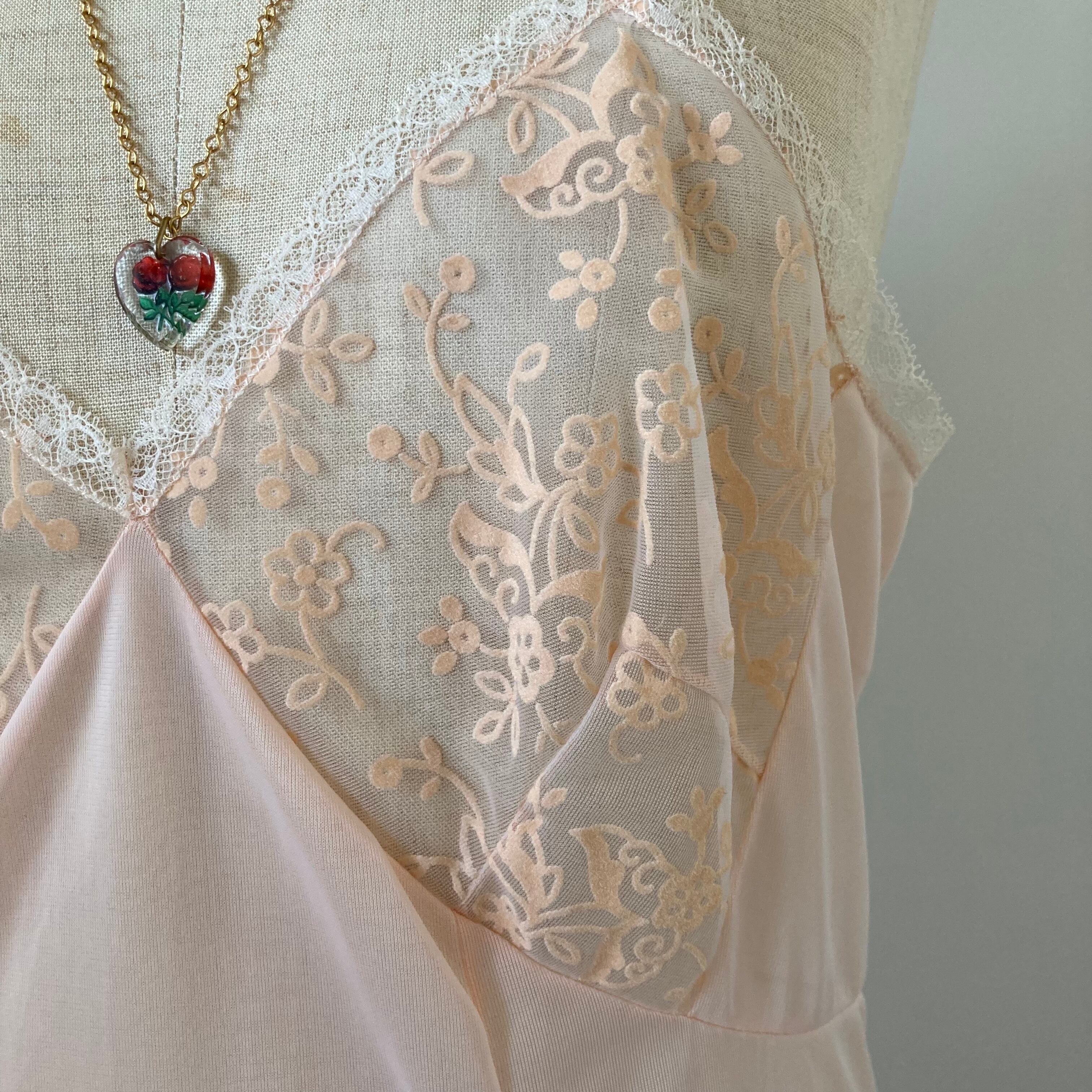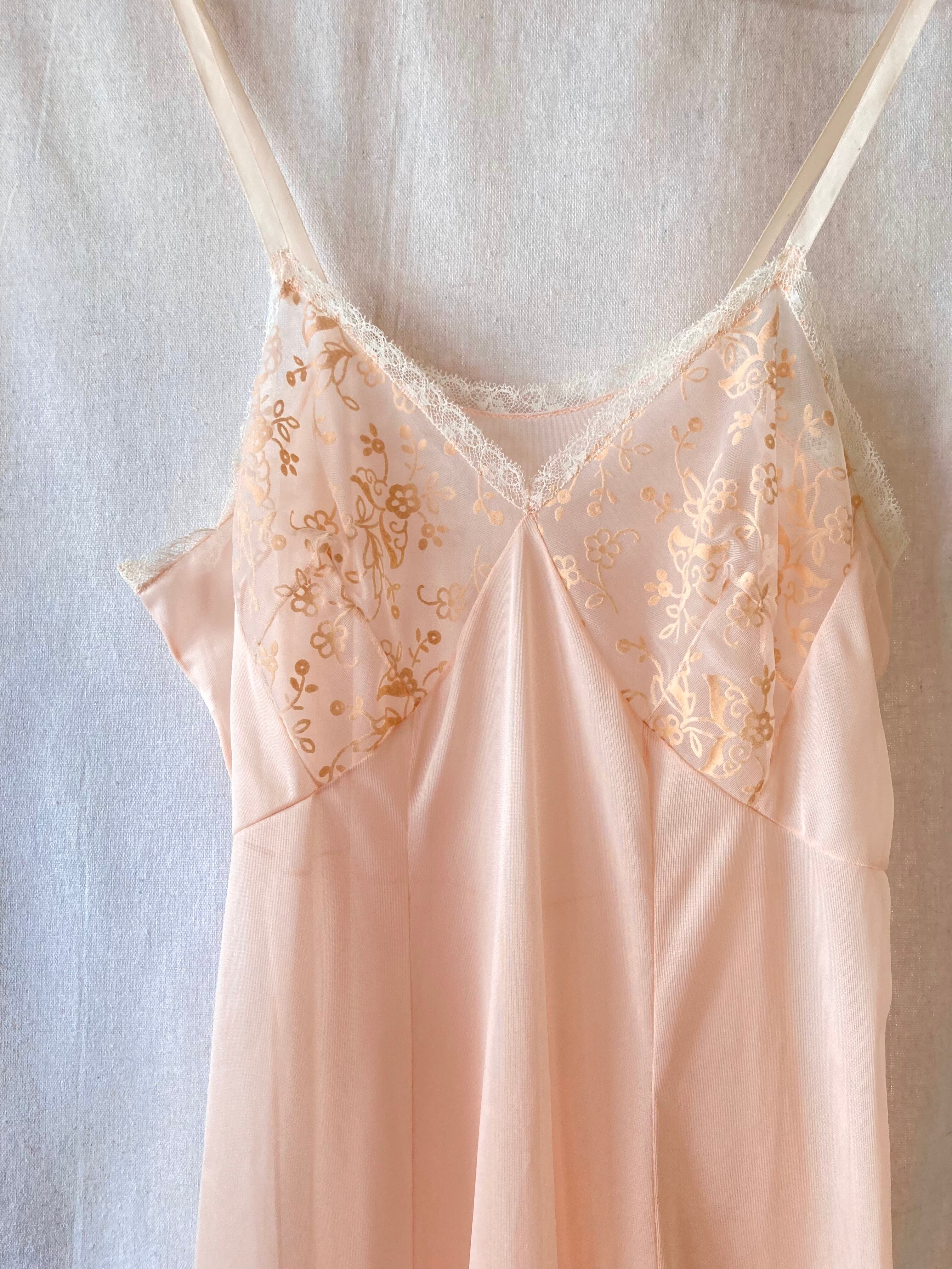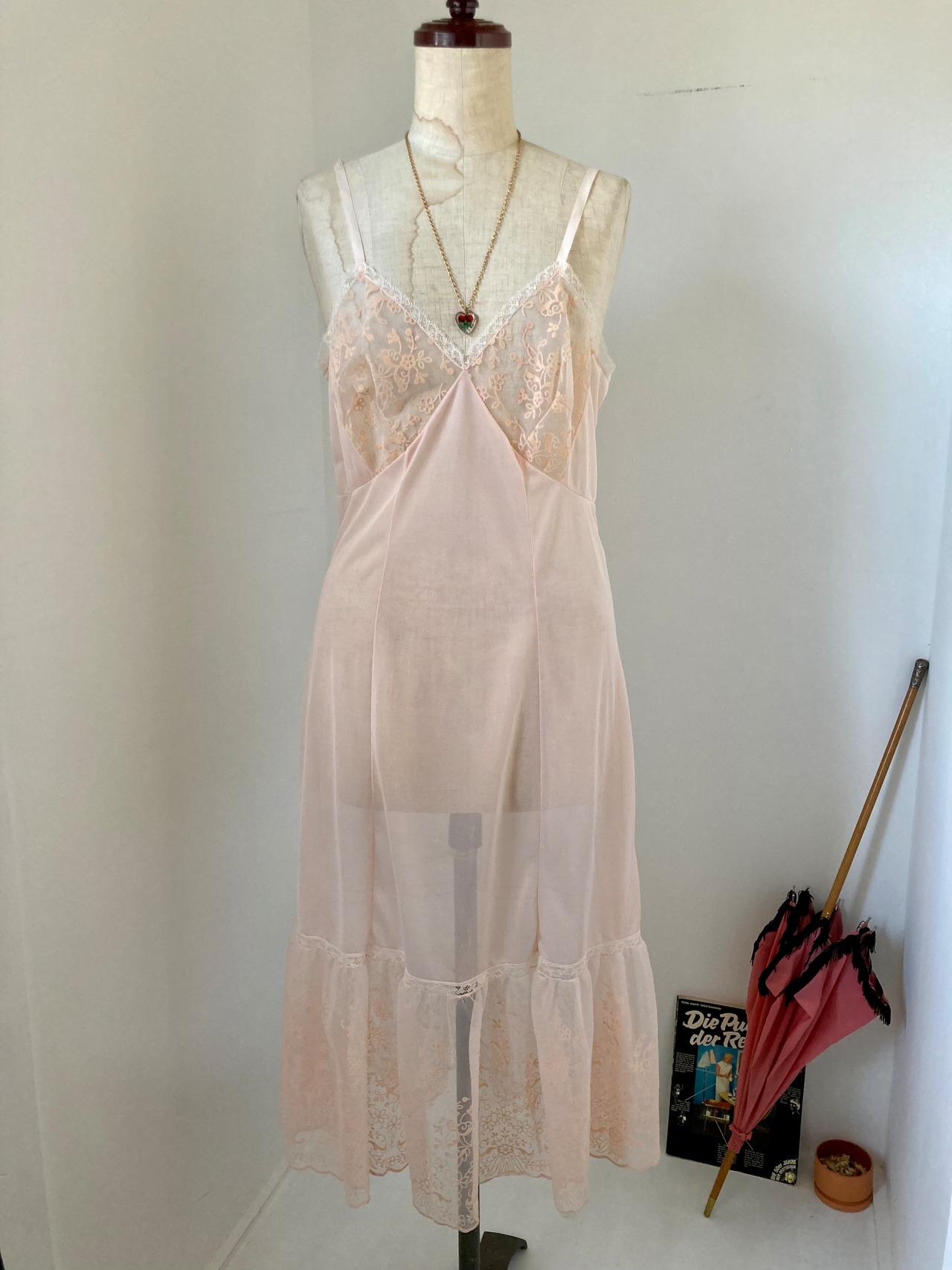 ペールトーンのコーラルピンクがとても可愛らしいビンテージのランジェリードレス