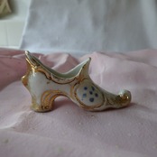 アンティークのパンプスデザイン、恐らくピンクッションの土台かと思われる、陶器の靴です。