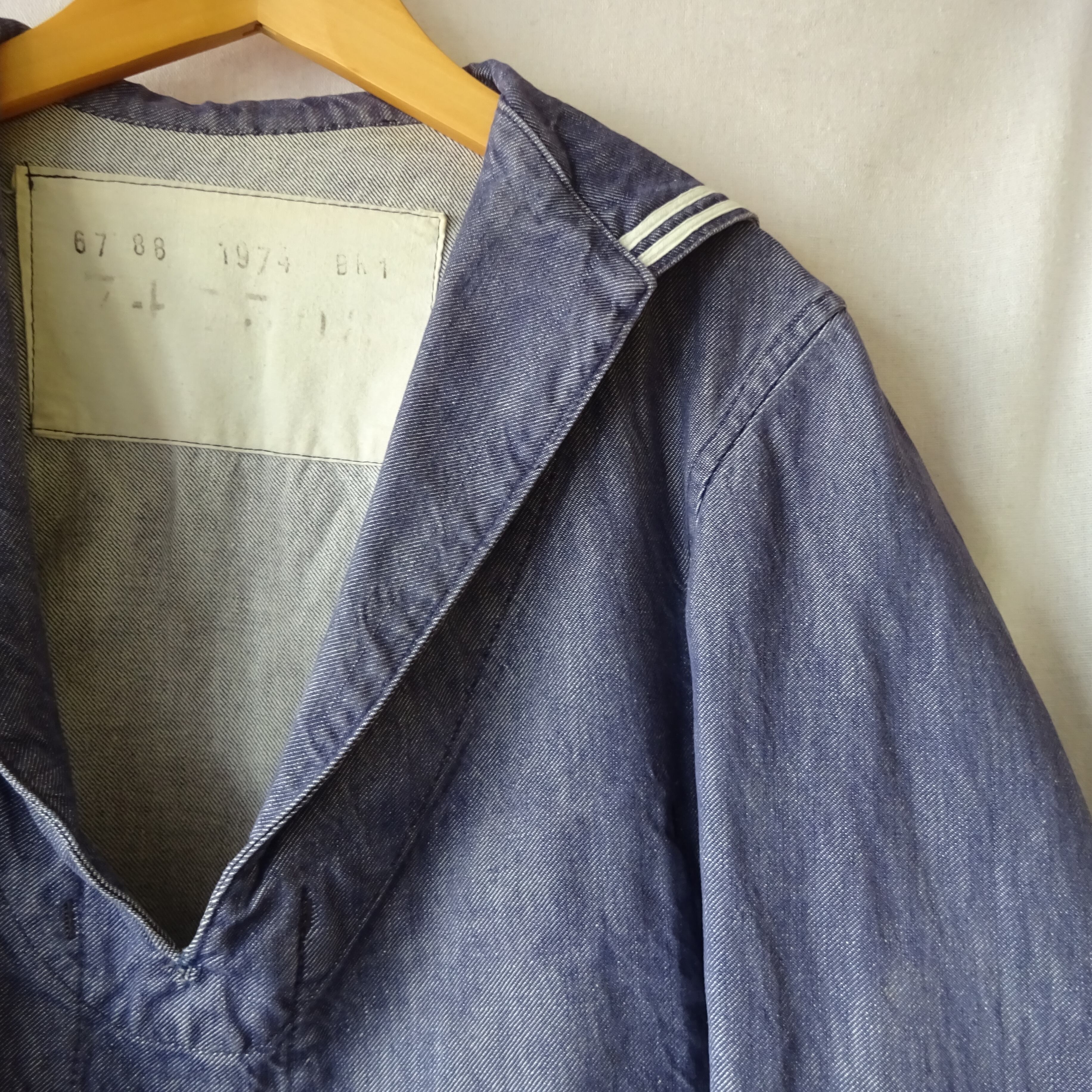 デニム素材で、女性なら軽めのアウターのようにも使える一枚です。