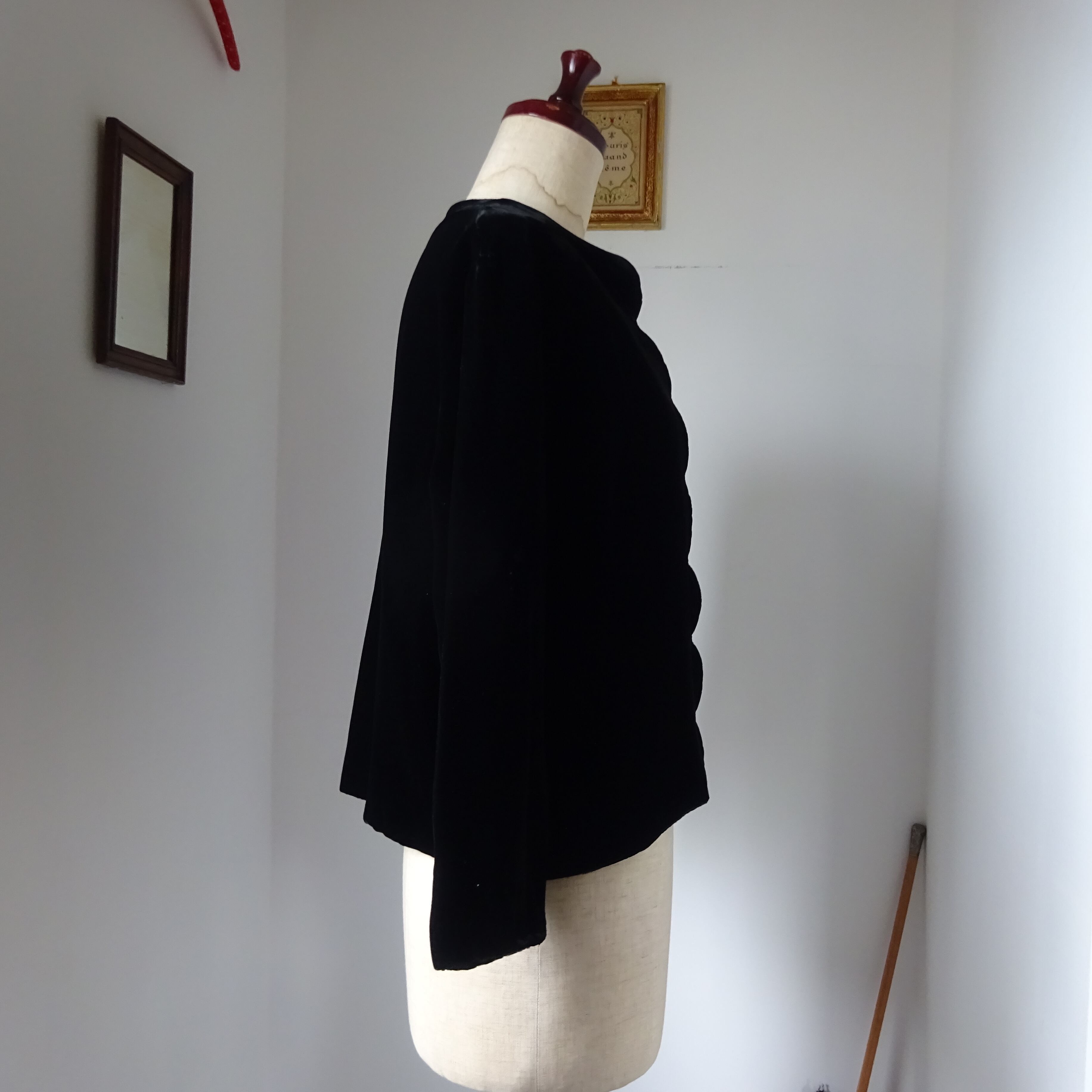写真では伝わりにくいですが、とても滑らかで気持ちの良いビンテージならではの上質なベロアを使ったジャケットです。