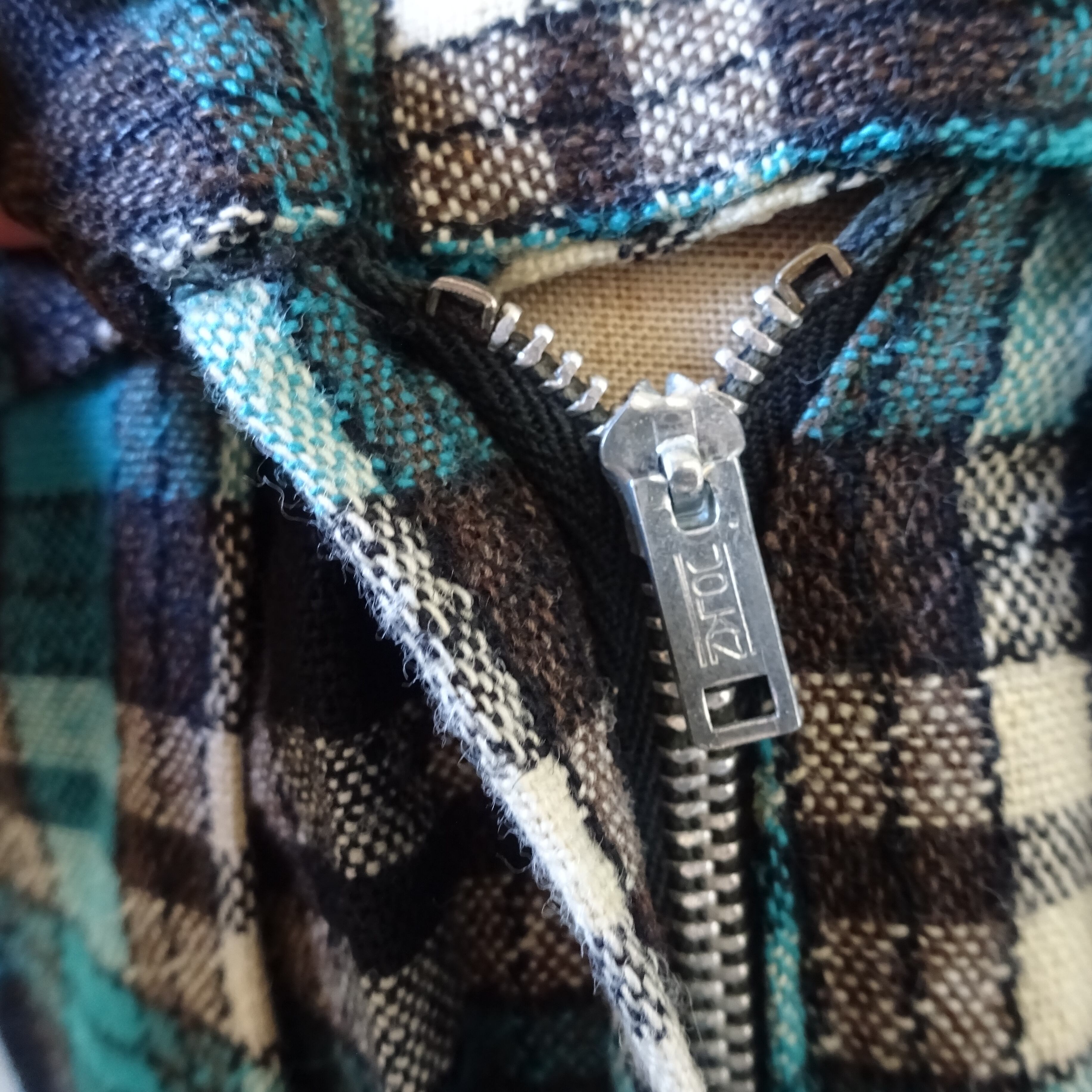 珍しいターコイズブルー×ブラウンのとてもいい雰囲気のチェックスカート