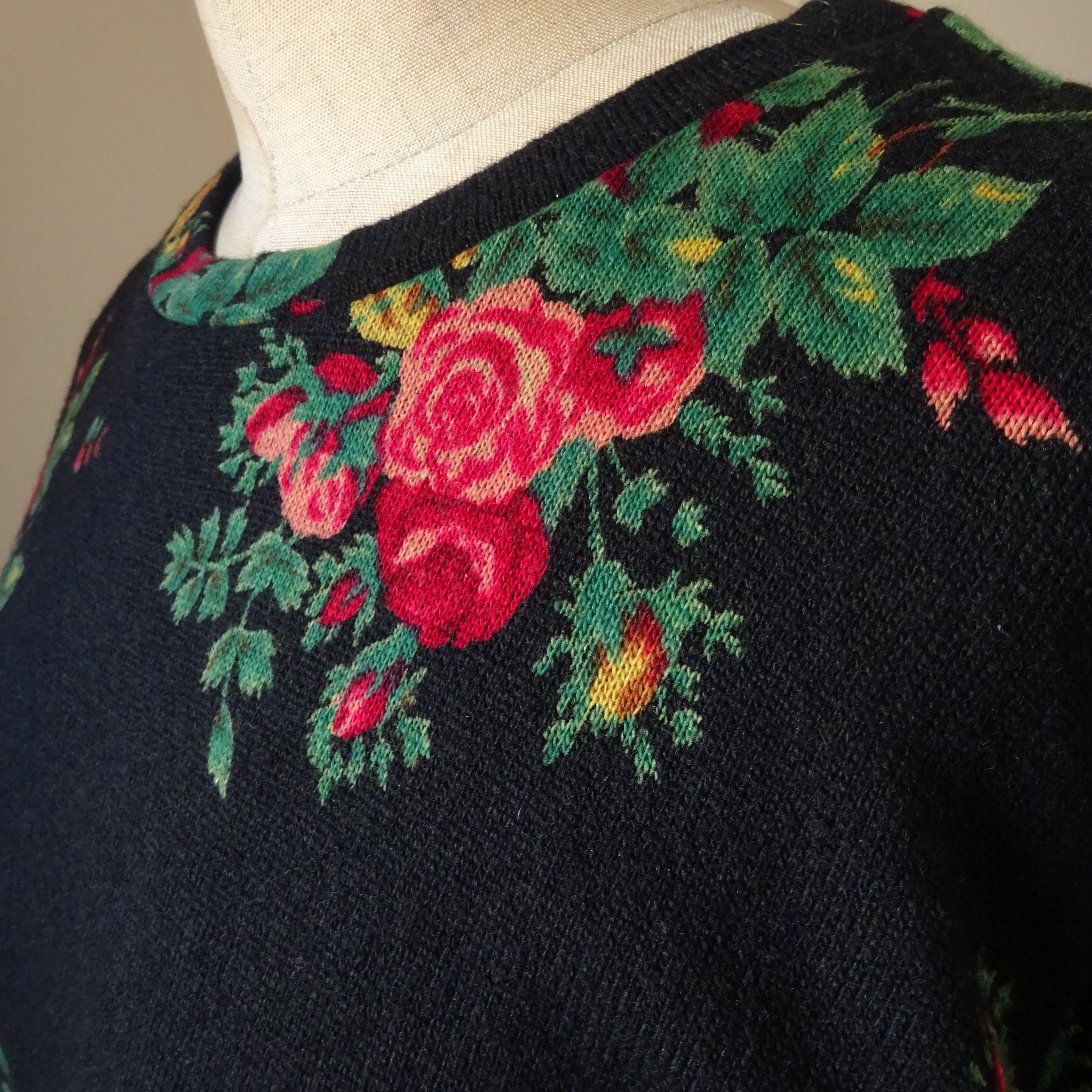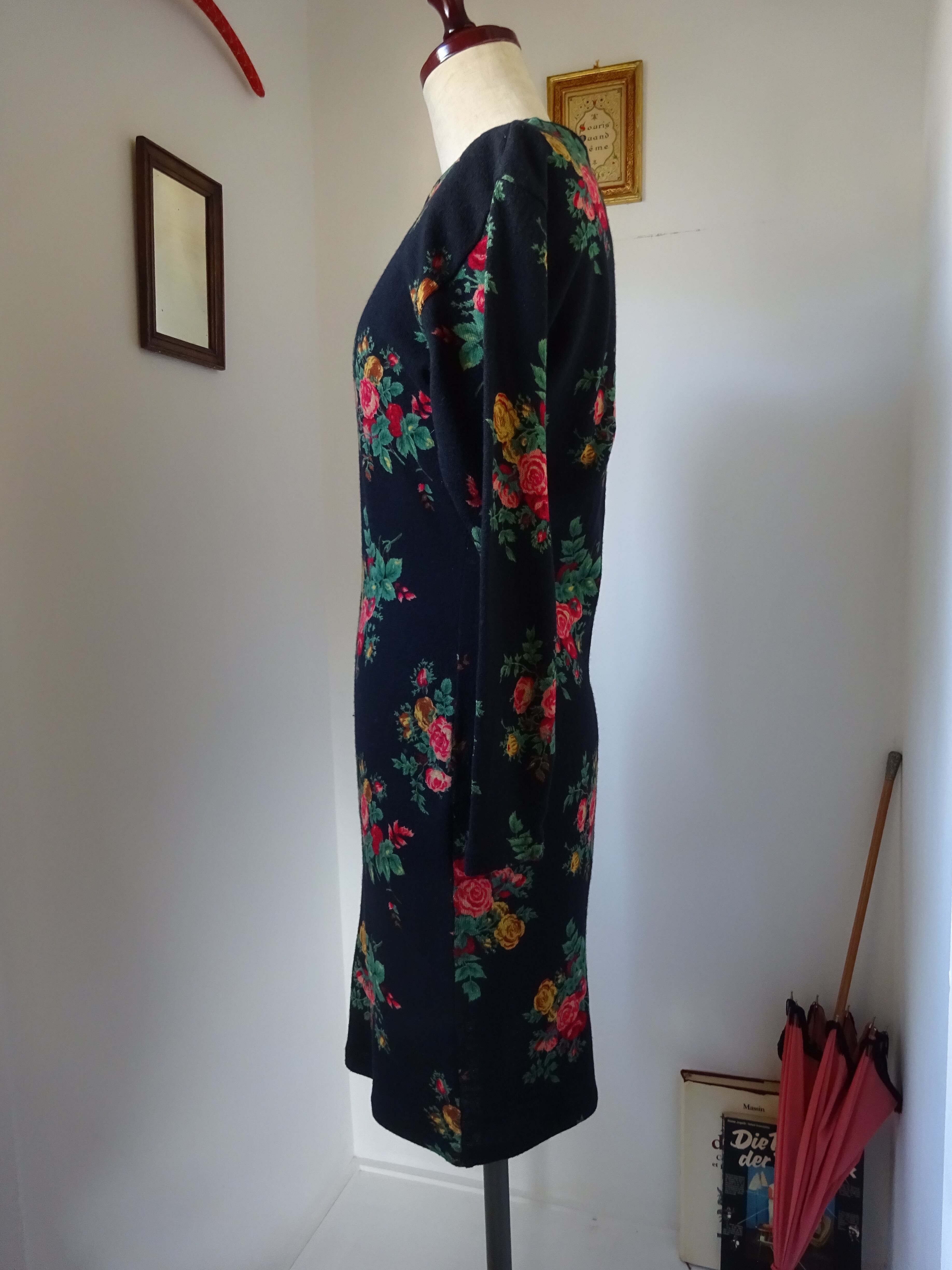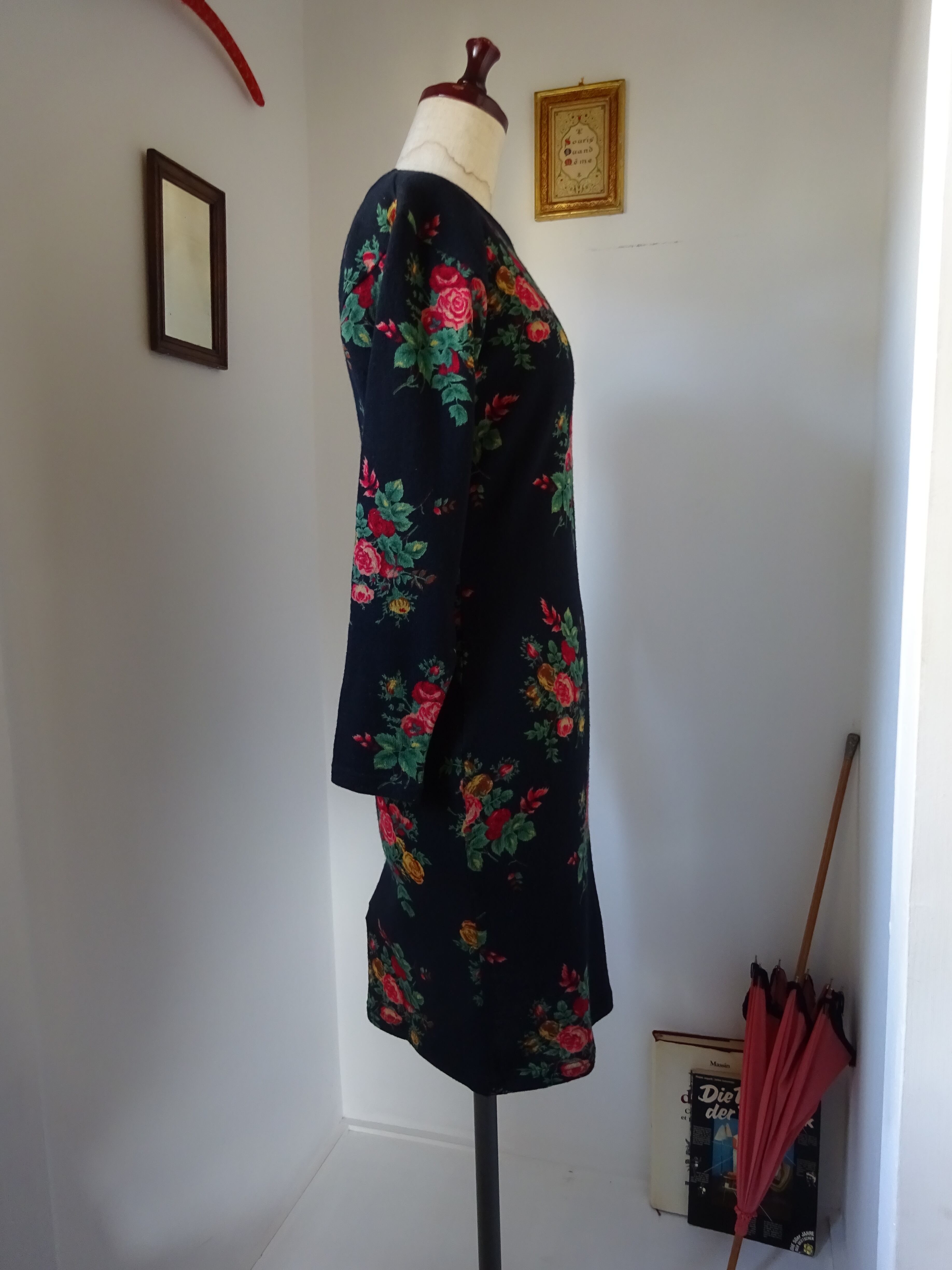 薔薇のプリントが施された、潔い柄の上品なドレス