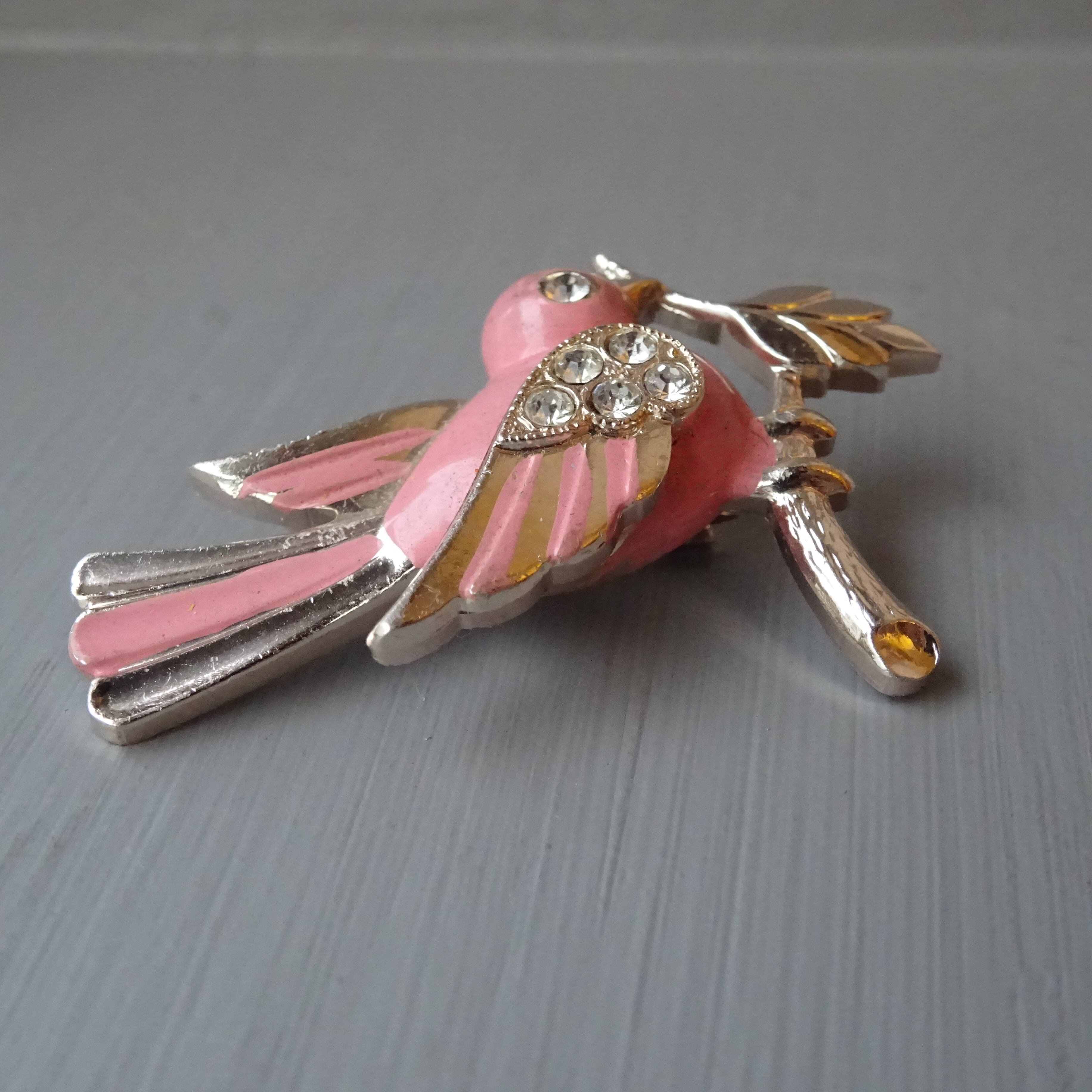 ピンクの小鳥モチーフ、小さめのブローチです。