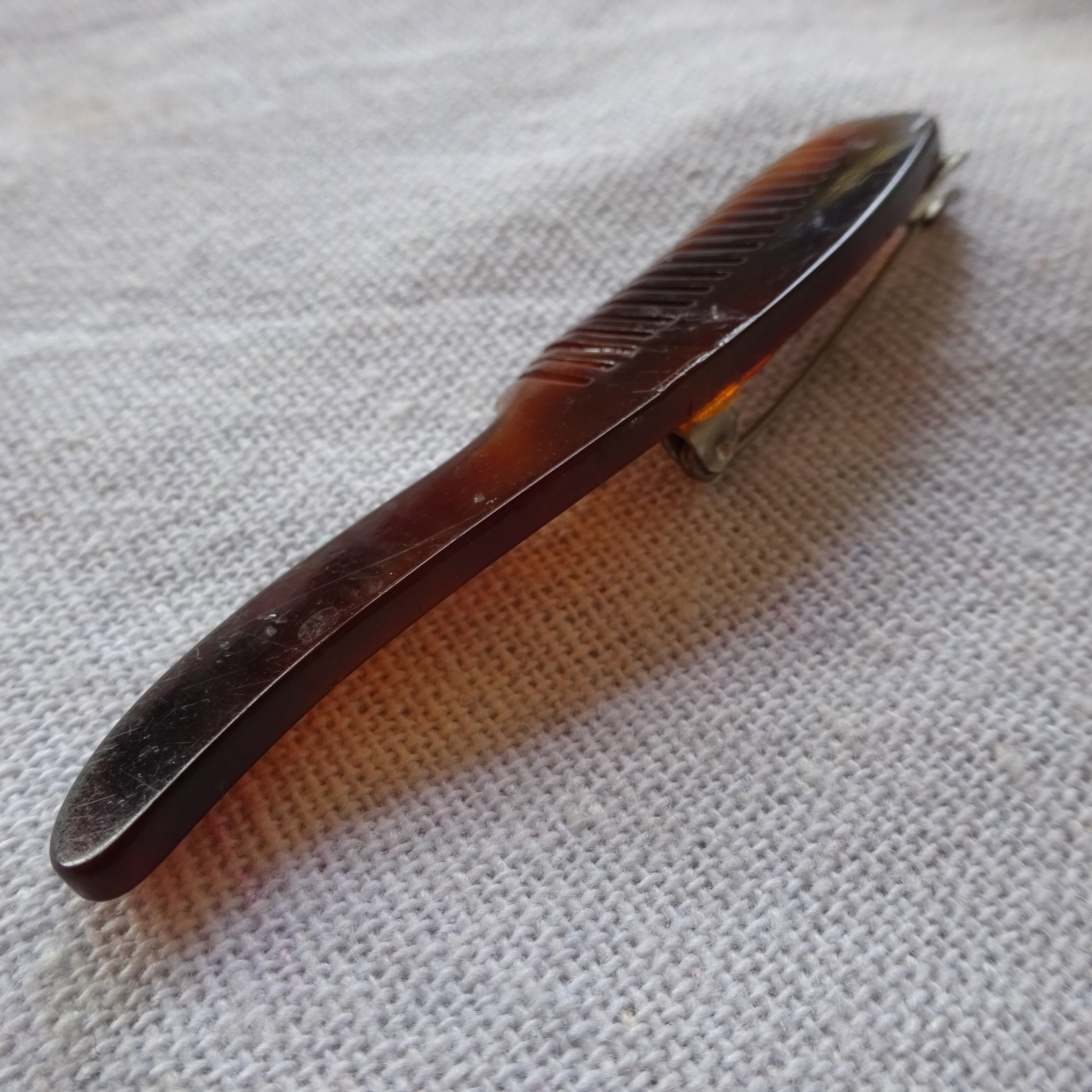 おもちゃのように見えてなかなかしっかりした古い樹脂の櫛モチーフがとてもいい雰囲気です。