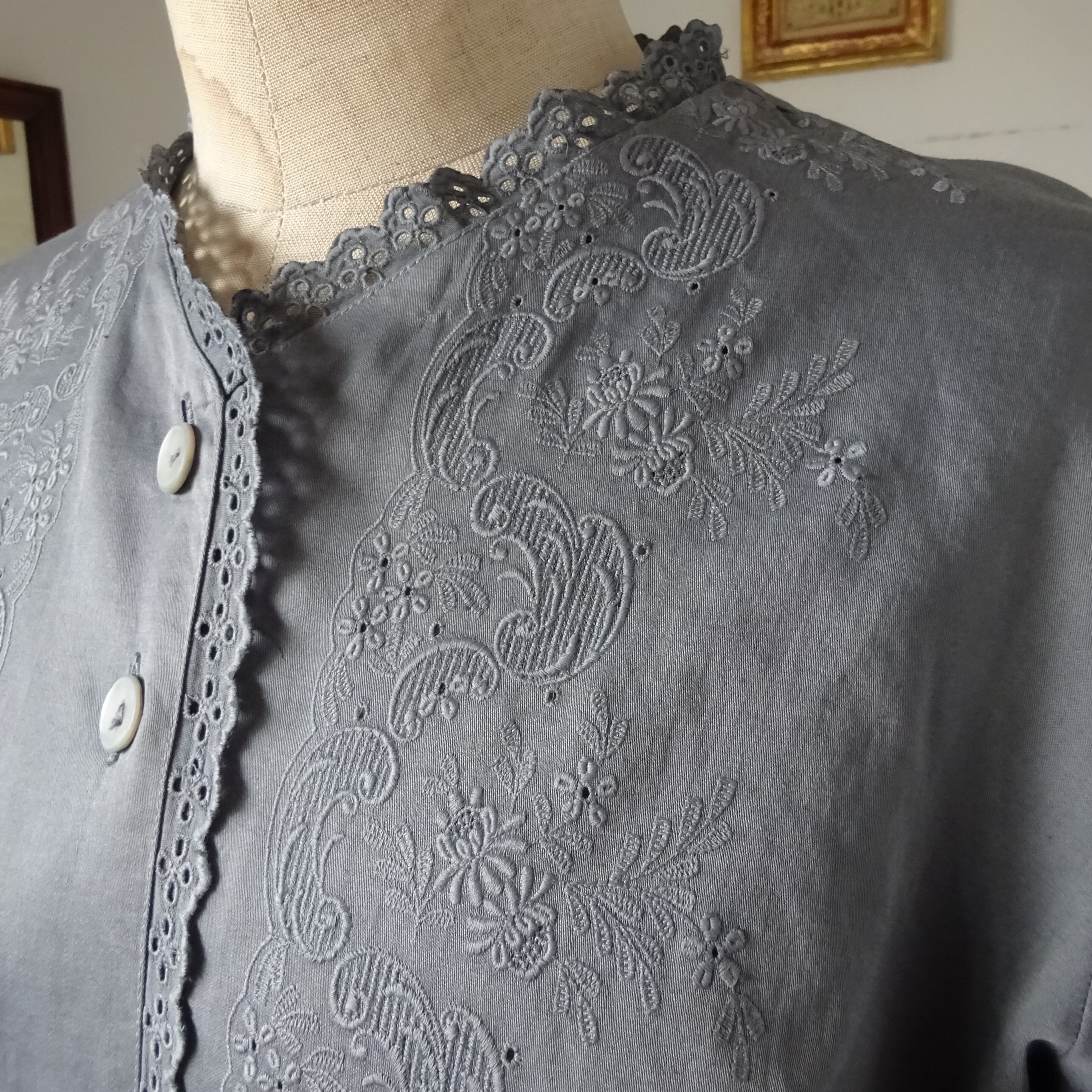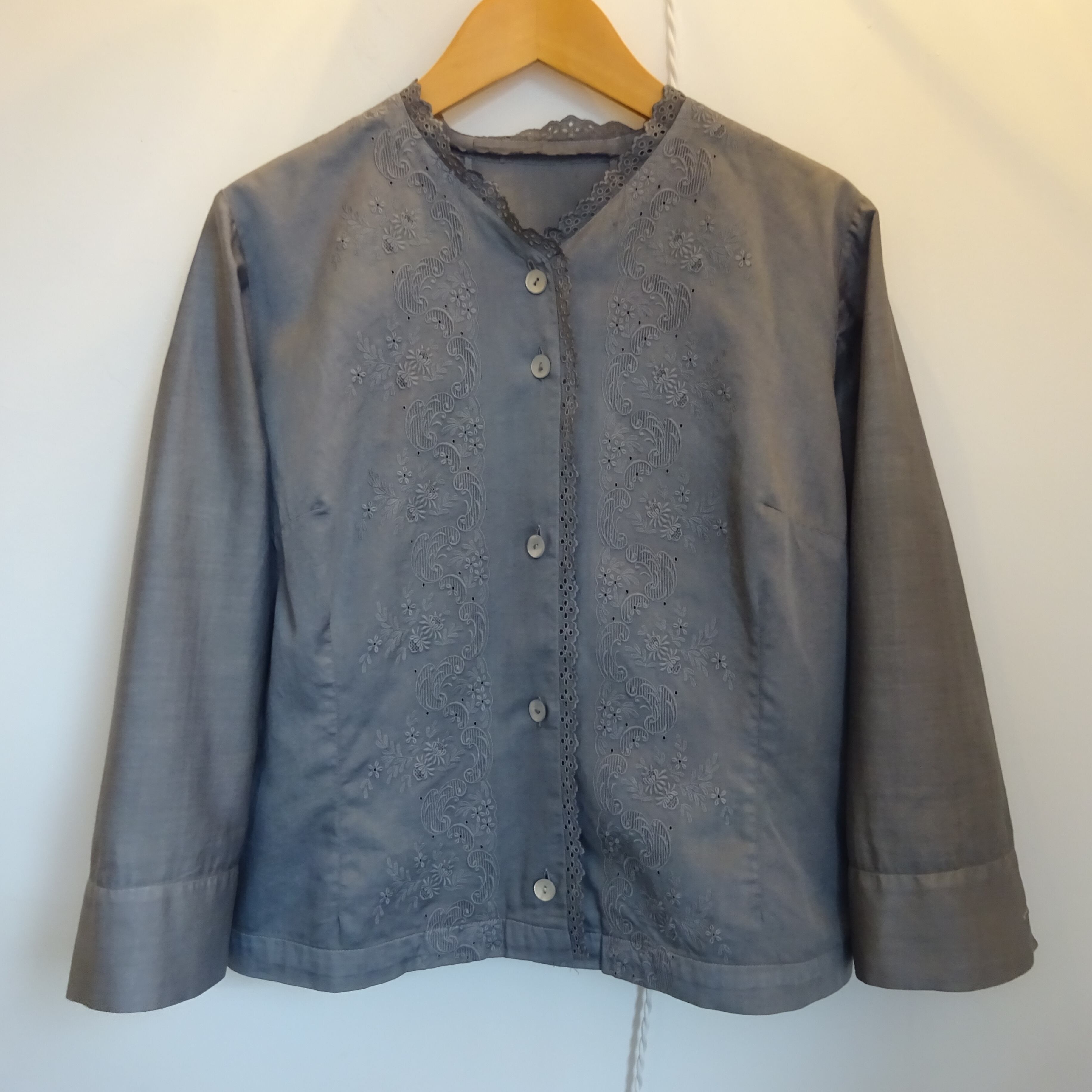 シルクのようなとても上質な、目が詰まったコットンに繊細な刺繍が施されたブラウス